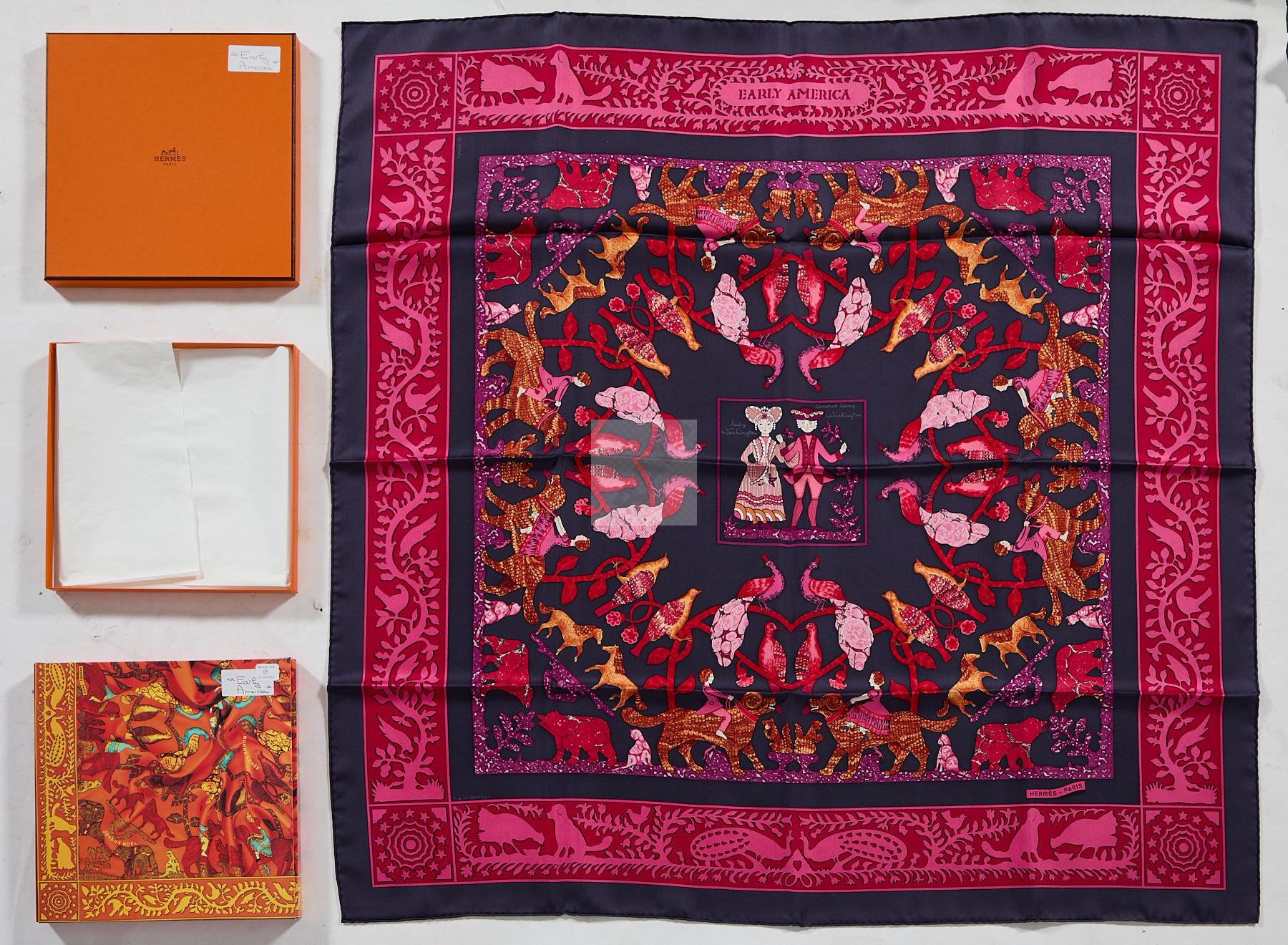 Lot n°9 - 9 HERMES, Paris, "Early America", Carré de soie 90x90 cm Dans sa