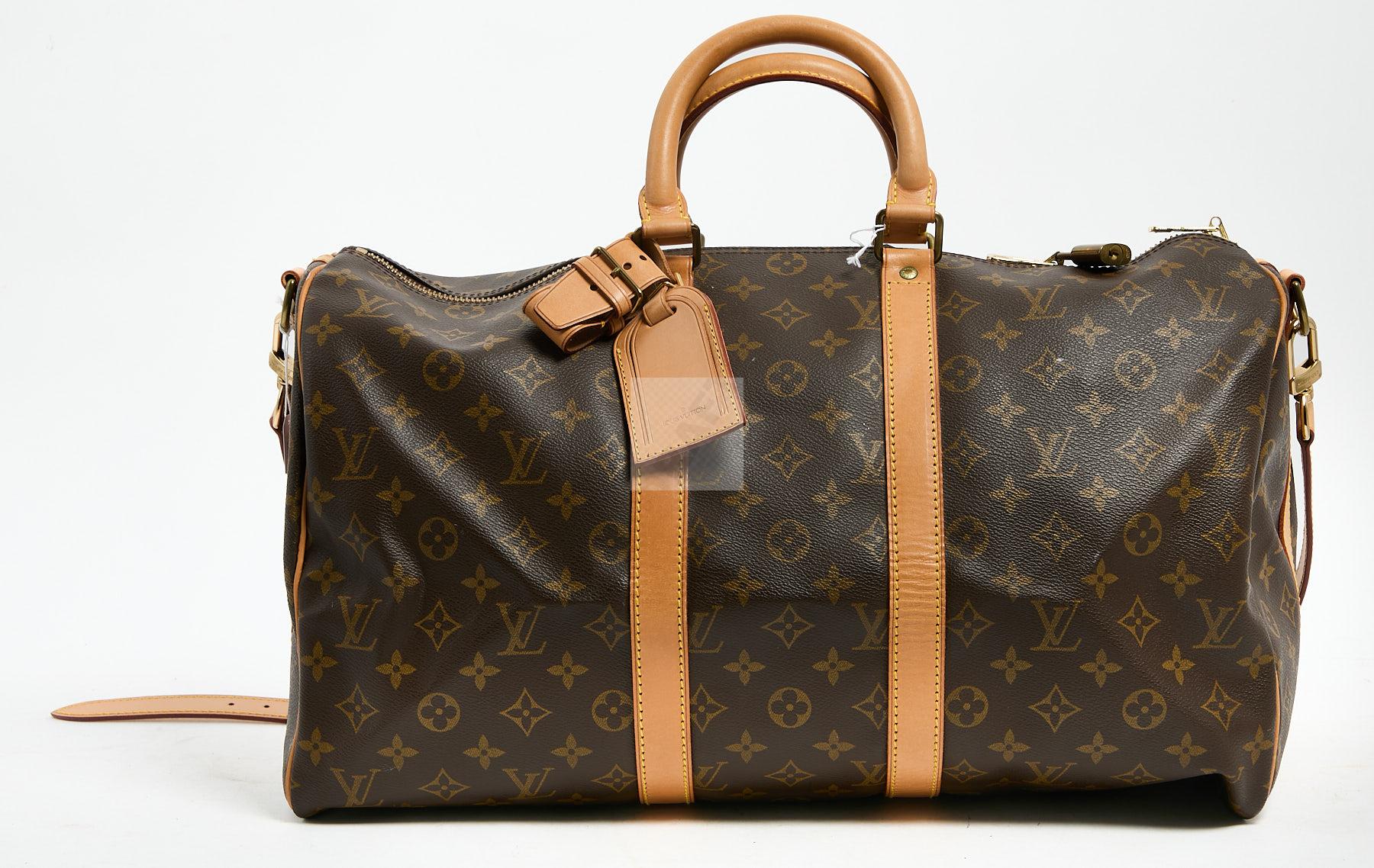 Lot n°42 - 42 Louis VUITTON. Sac de voyage, modèle KEEPALL., toile monogramme et cuir natur