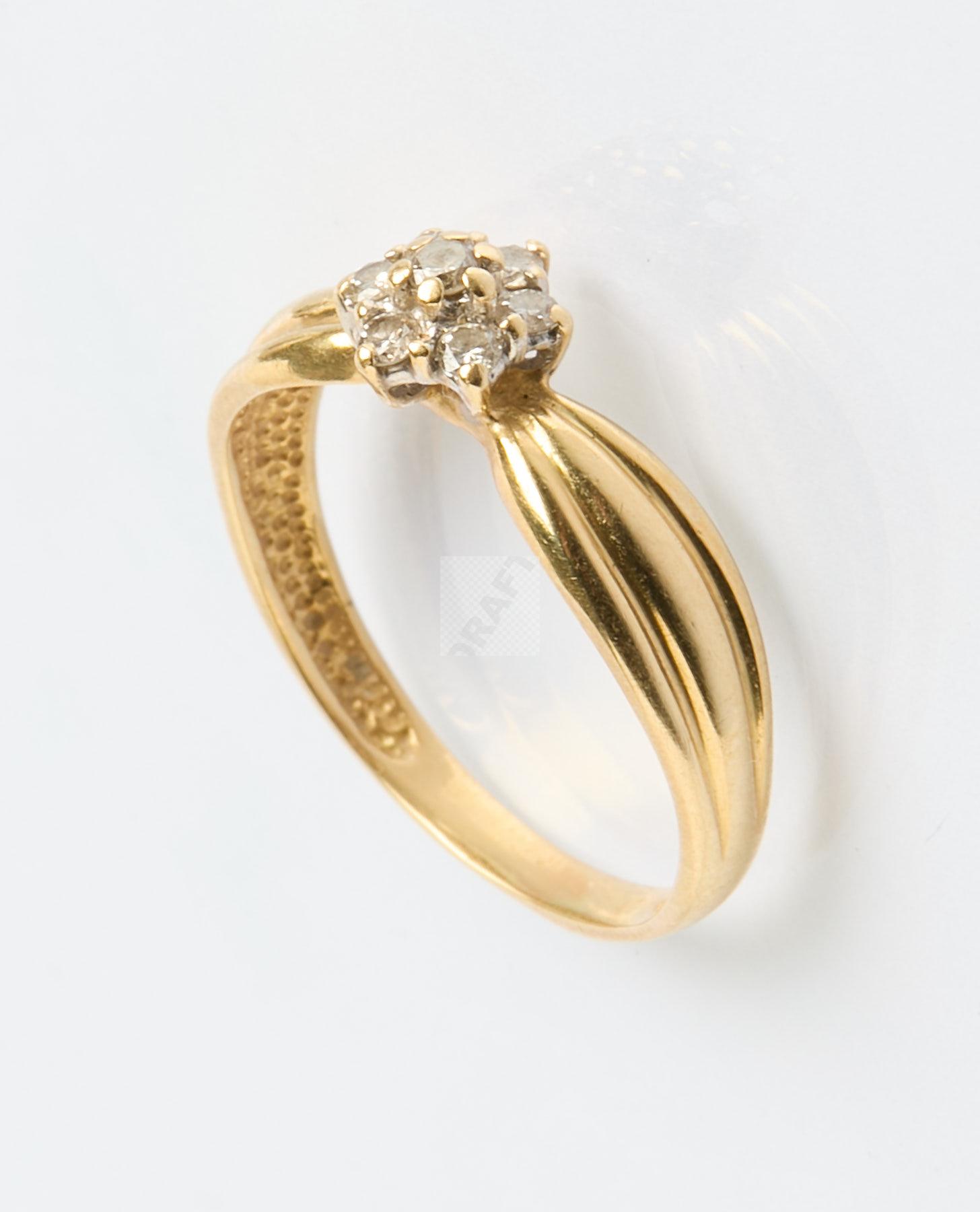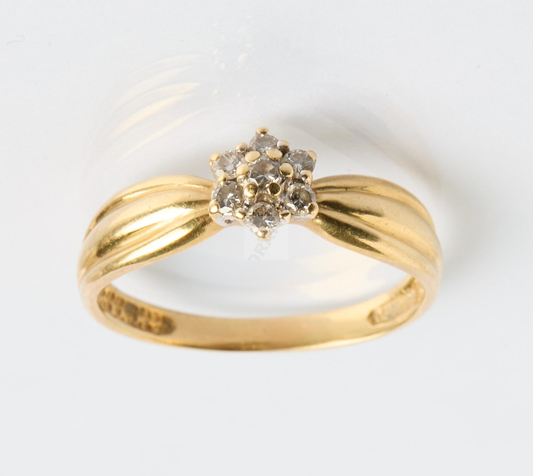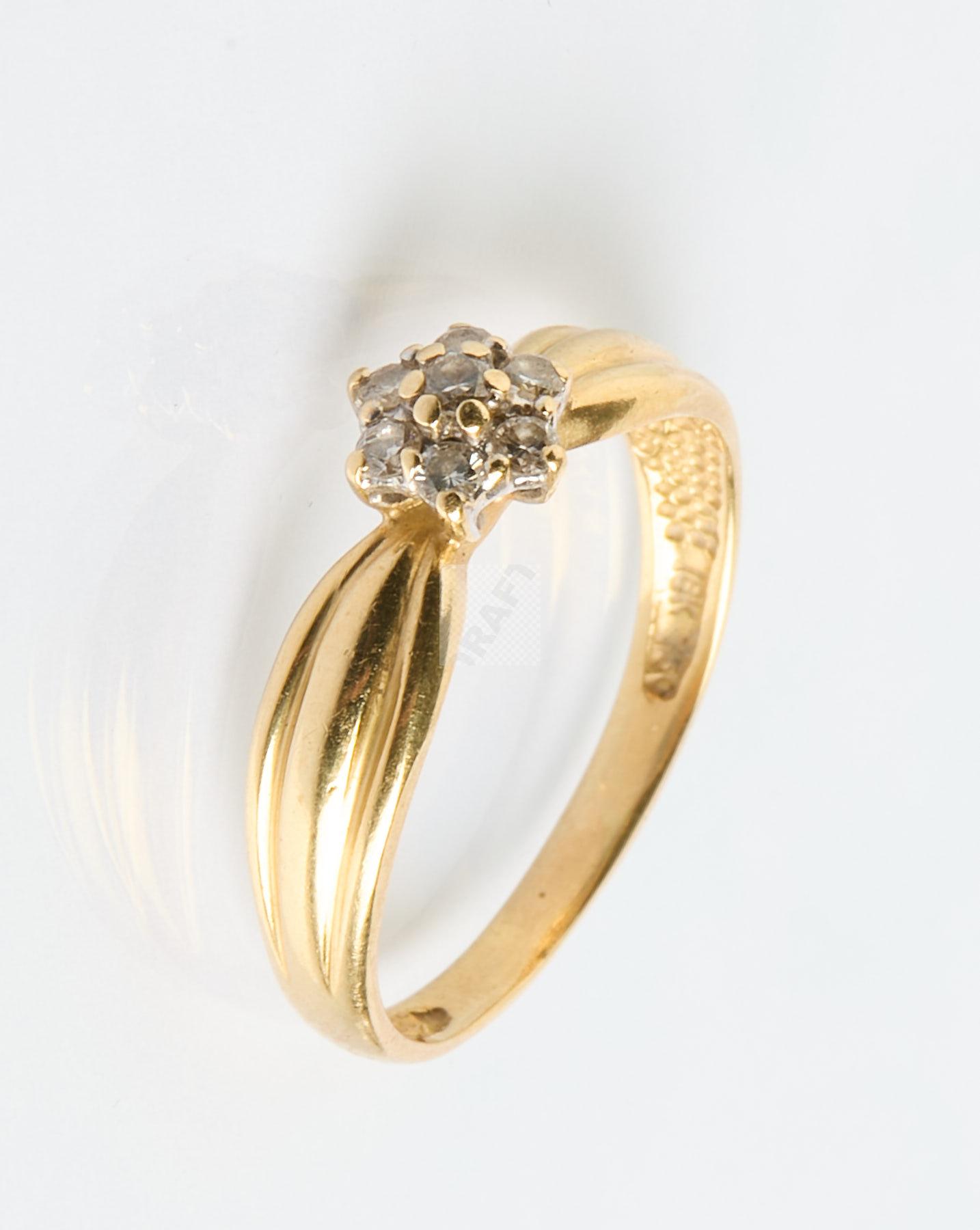 Lot n°66 - 66 Bague en or jaune 750 ‰ pavée en marguerite de petits diamants brillantés, to