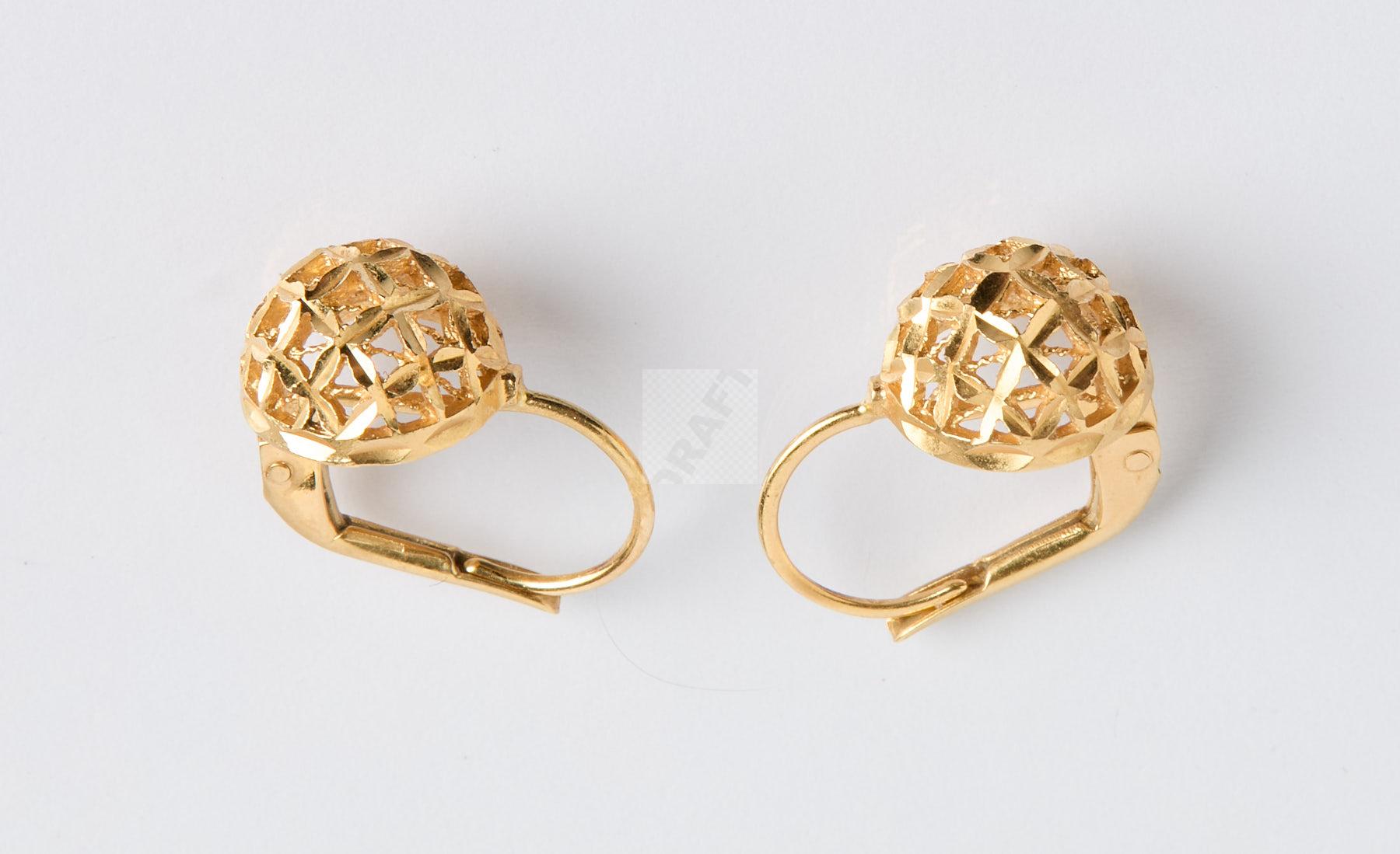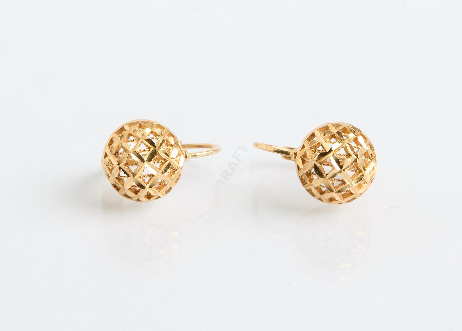 69 Paire de boucles d’oreilles à demi-boules en or jaune 750 ‰ filigrané, poids 3,54 g