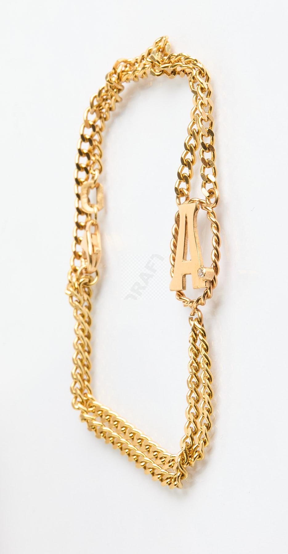 Lot n°72 - 72 Bracelet en or jaune 750 ‰ et pendentif A en or jaune et pierre blanche, chai