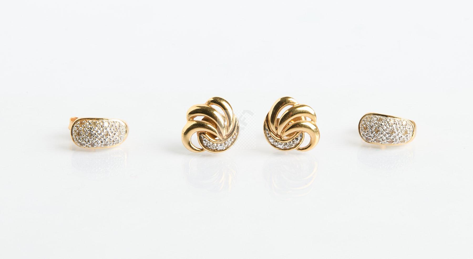 Lot n°76 - 76 Deux paires de boucles d’oreilles en or jaune 750 ‰ et pierres blanches, poid