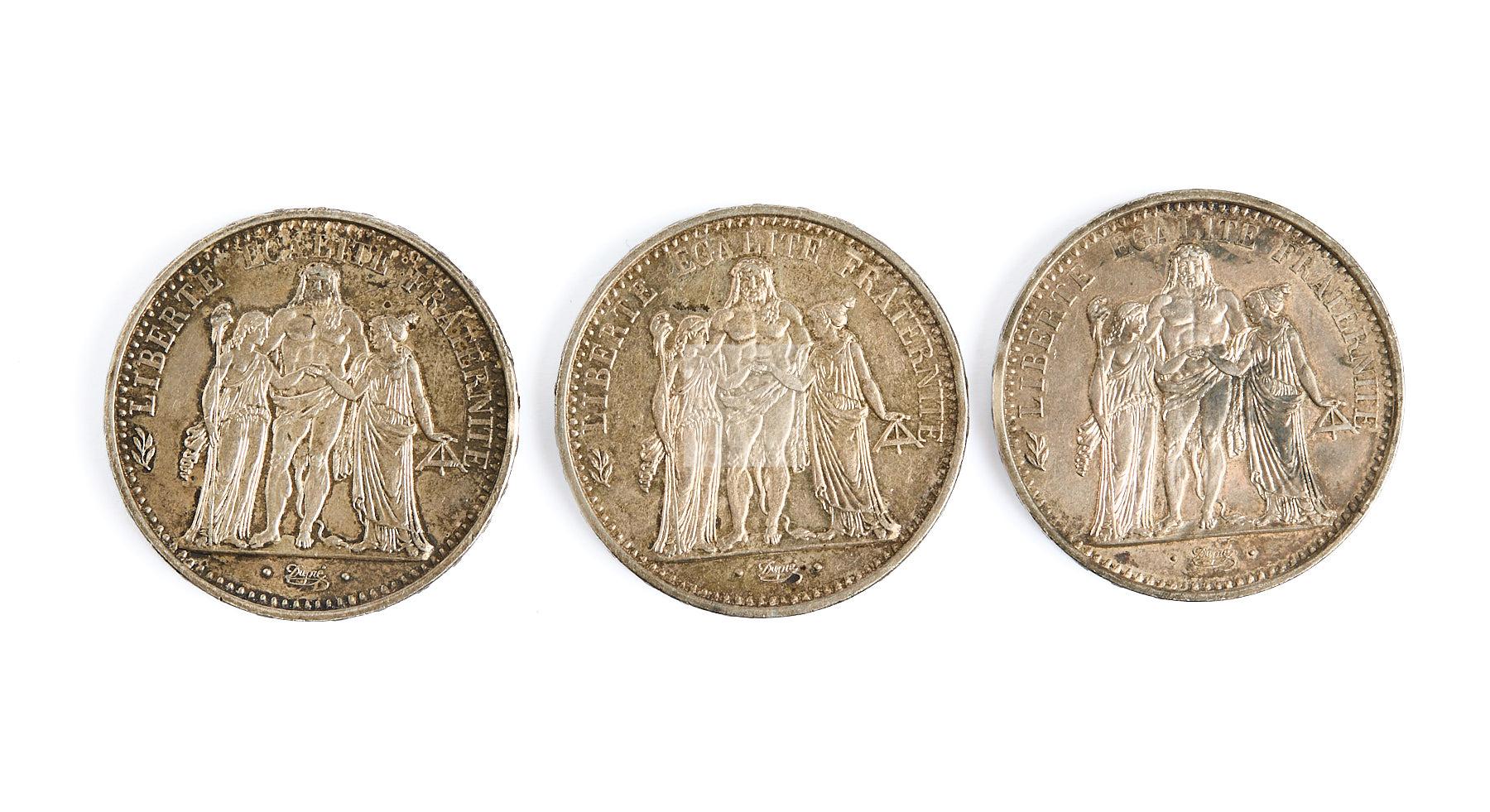 Lot n°99 - 99 10 F argent Hercule x 3 , poids 75 g
