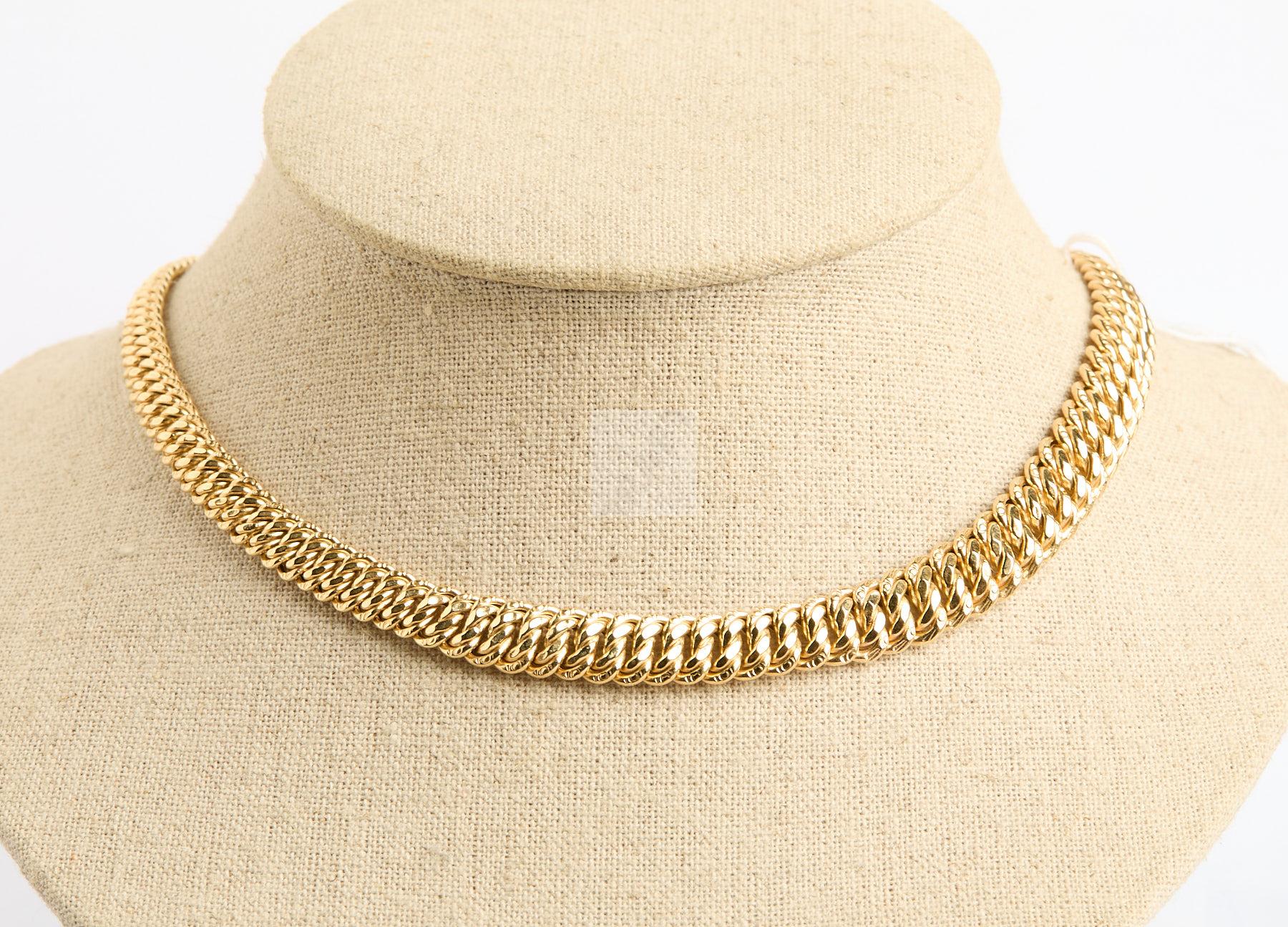 Lot n°120 - 120 Parure en or jaune 750/1000 à maille américaine en chute pour le collier com