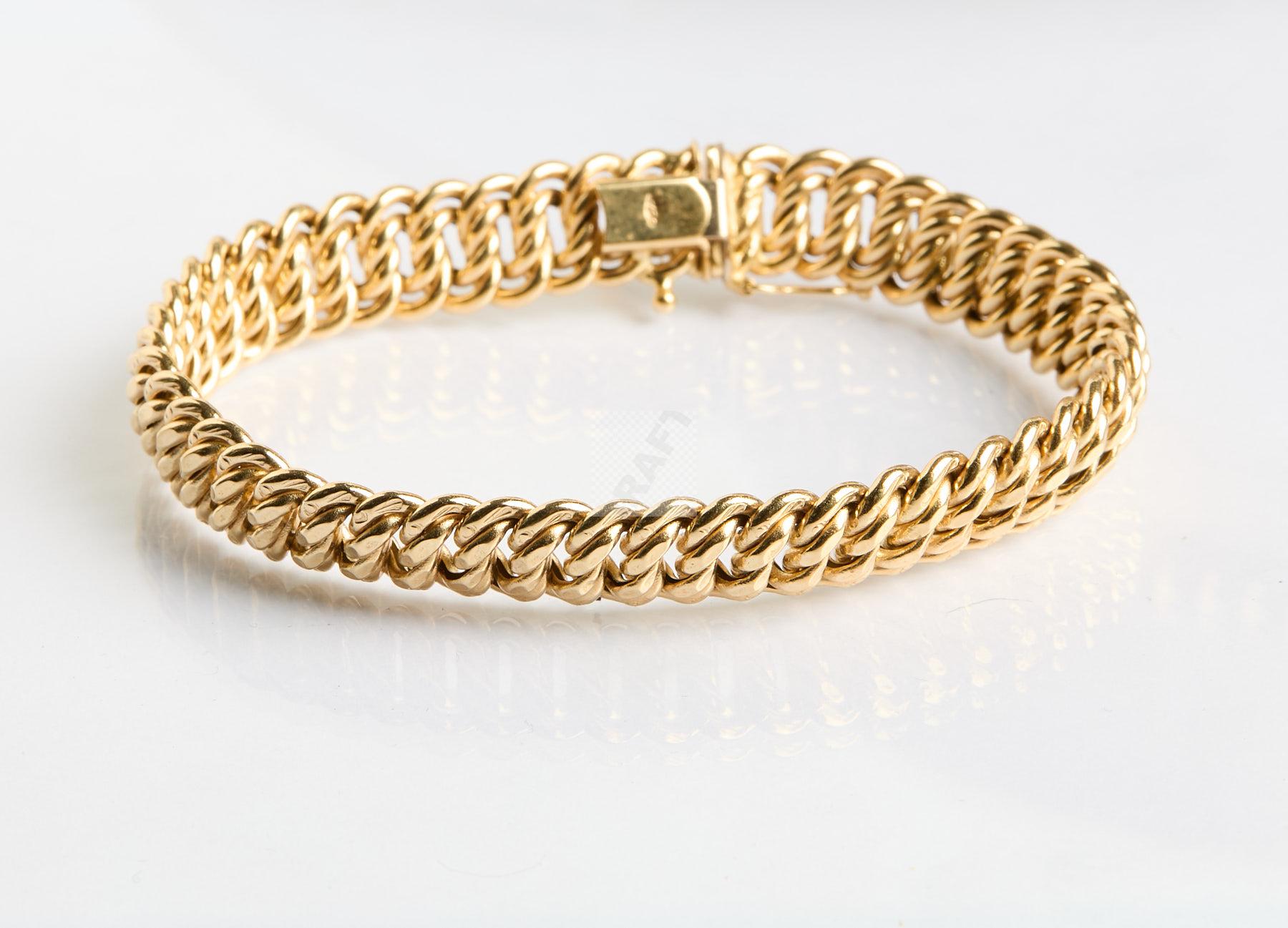 120 Parure en or jaune 750/1000 à maille américaine en chute pour le collier composée d’un collier et d’un bracelet.