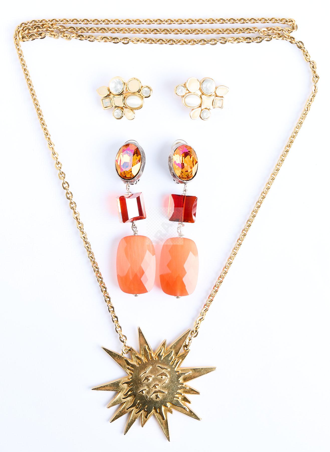 155 SALVADOR DALI (d’après) : Pendentif le Roi soleil, TARATATA: paire de boucles d’oreilles, POGGI : paire de boucles d’oreilles