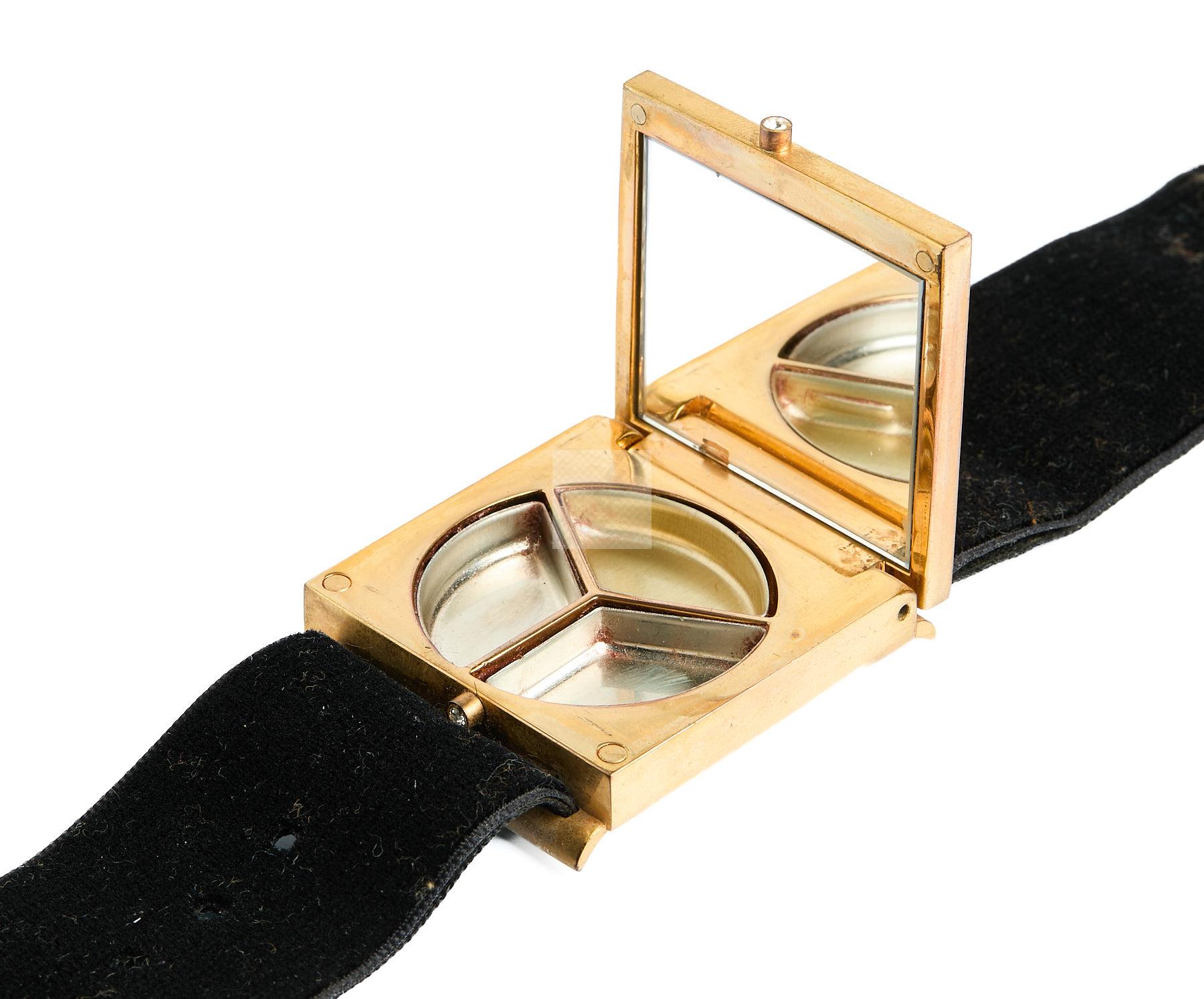 Lot n°158 - 158 YVES SAINT LAURENT: Bracelet « maquillage » en métal doré et velours longueur