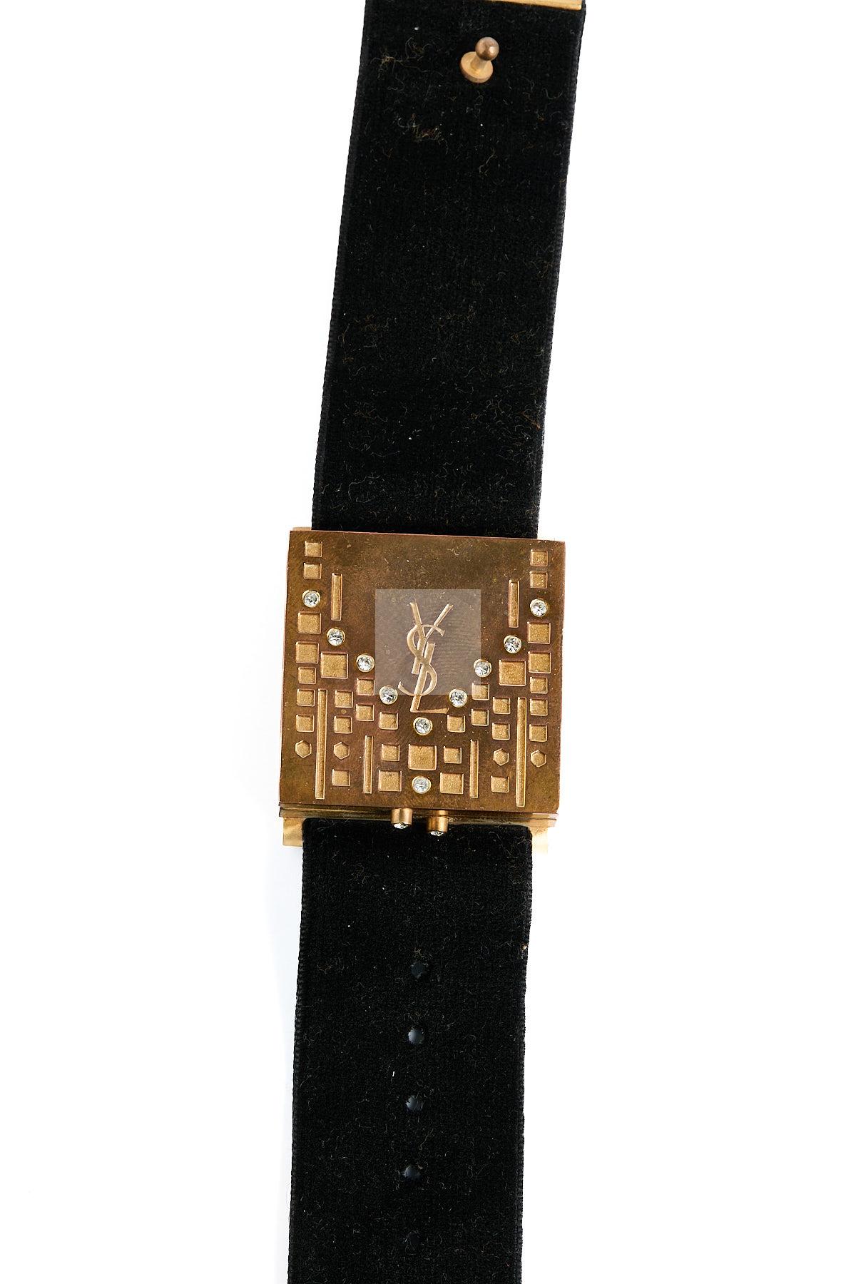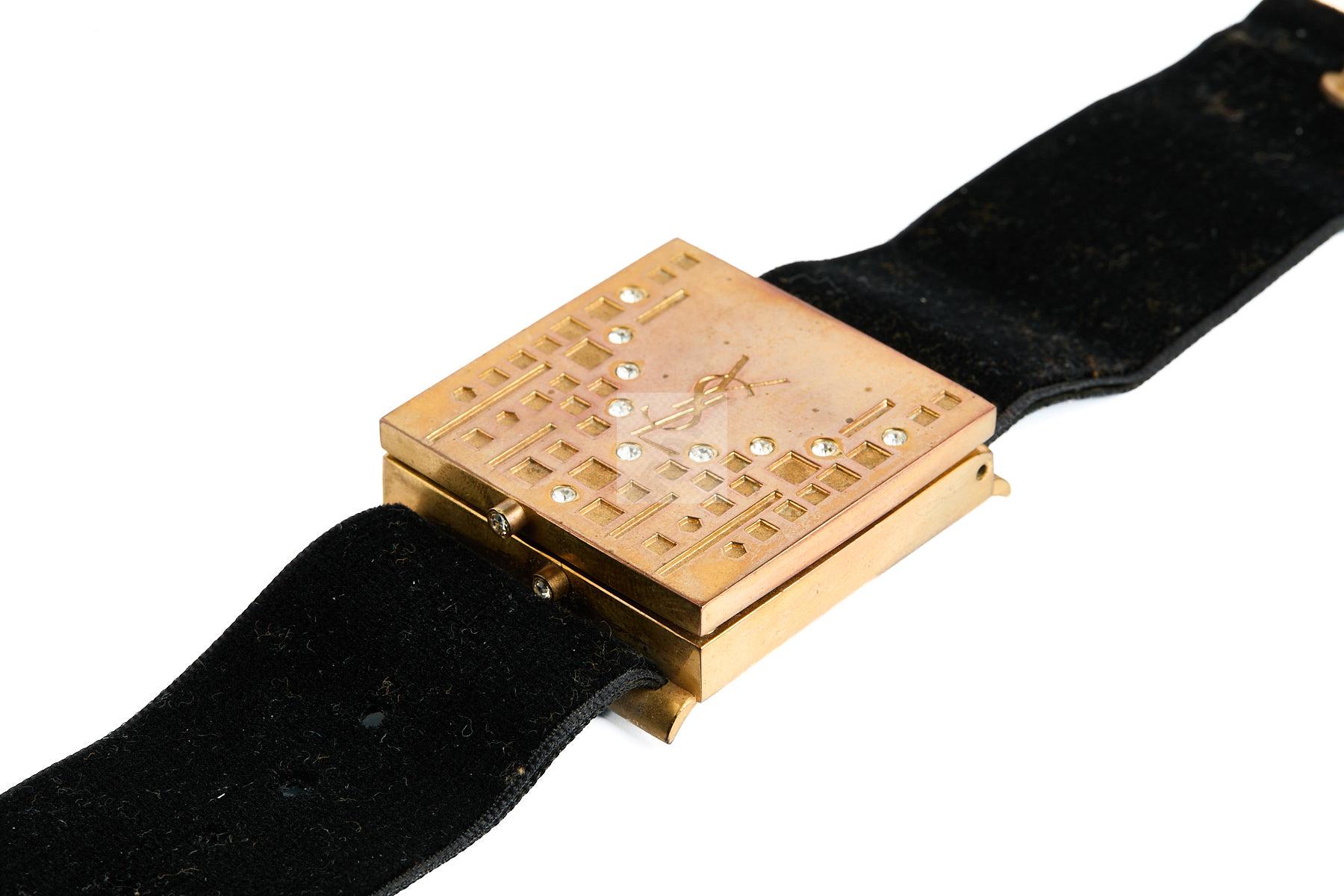 158 YVES SAINT LAURENT: Bracelet « maquillage » en métal doré et velours longueur 21 cm,