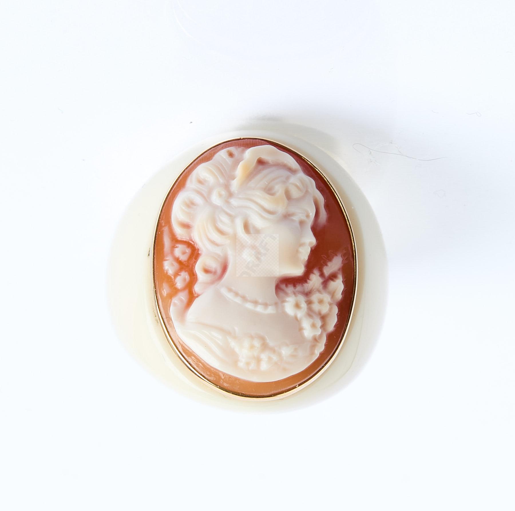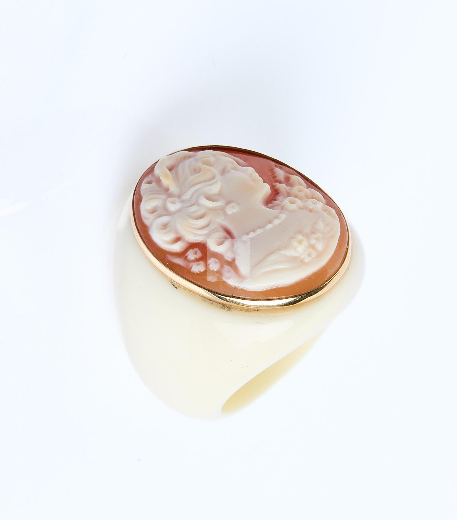 Lot n°163 - 163 Bague en bakélite couleur ivoire ornée d’un camée coquille représentant une