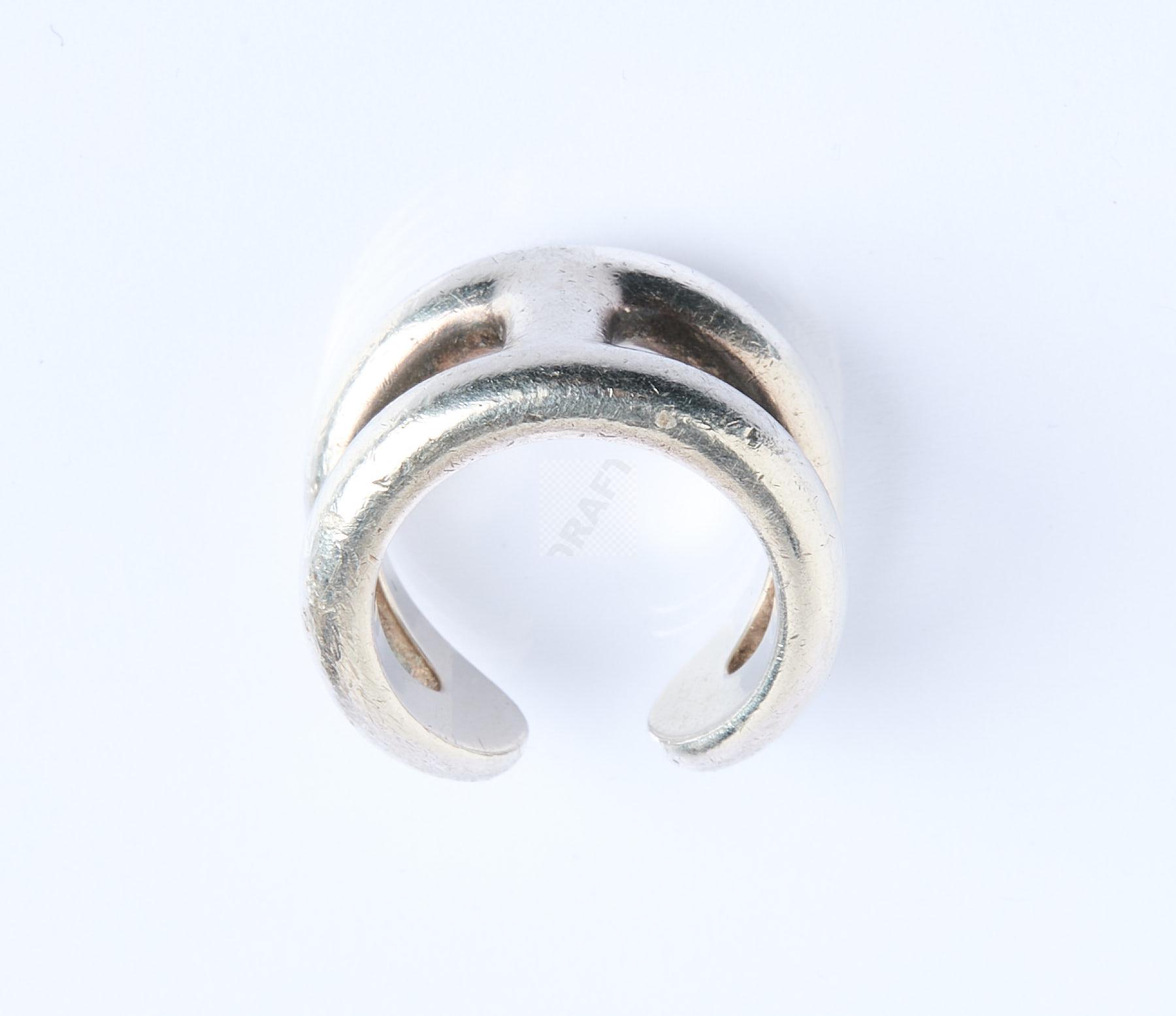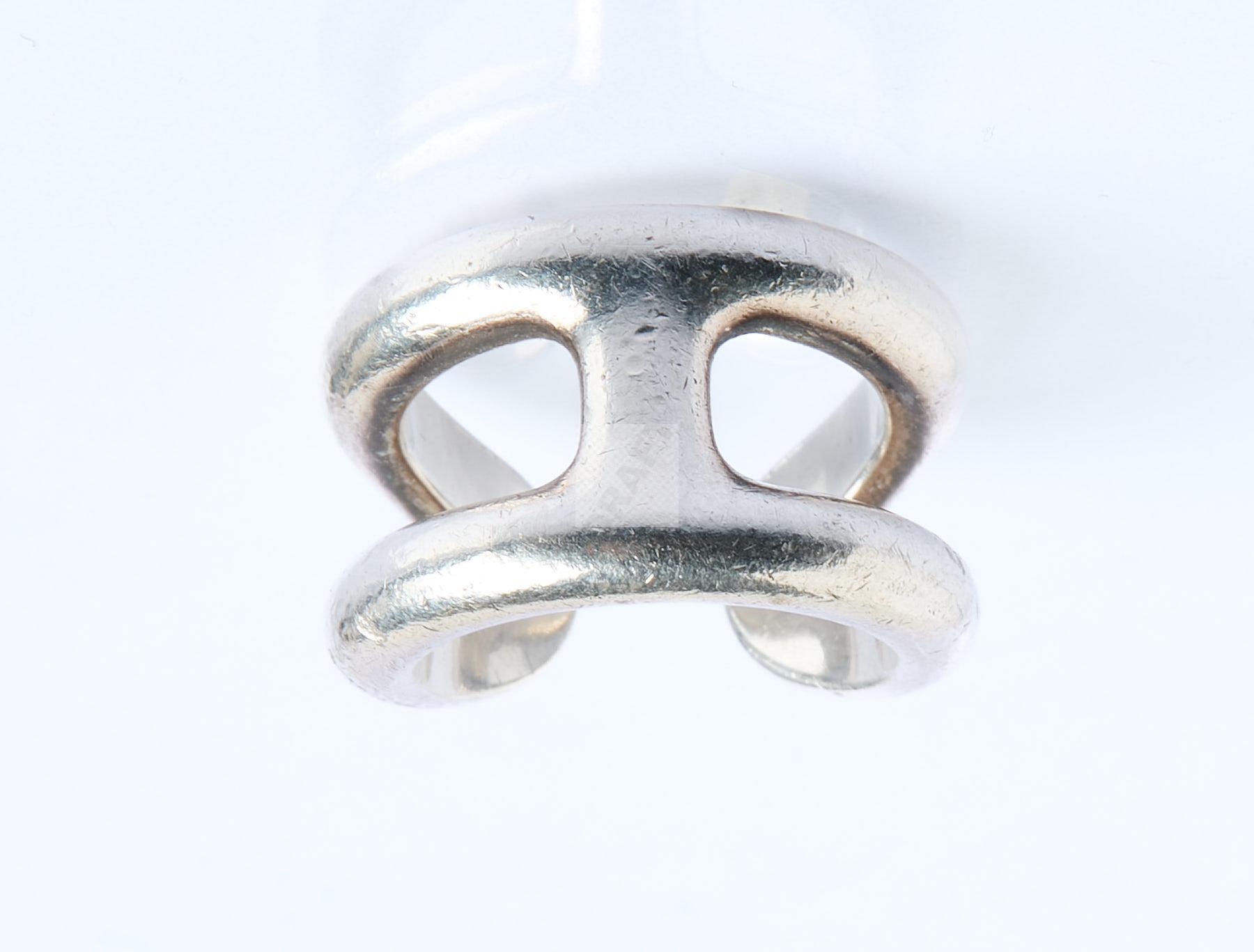 Lot n°169 - 169 HERMES : Bague H en argent , signée, tour de doigt 50, poids 11,8 g