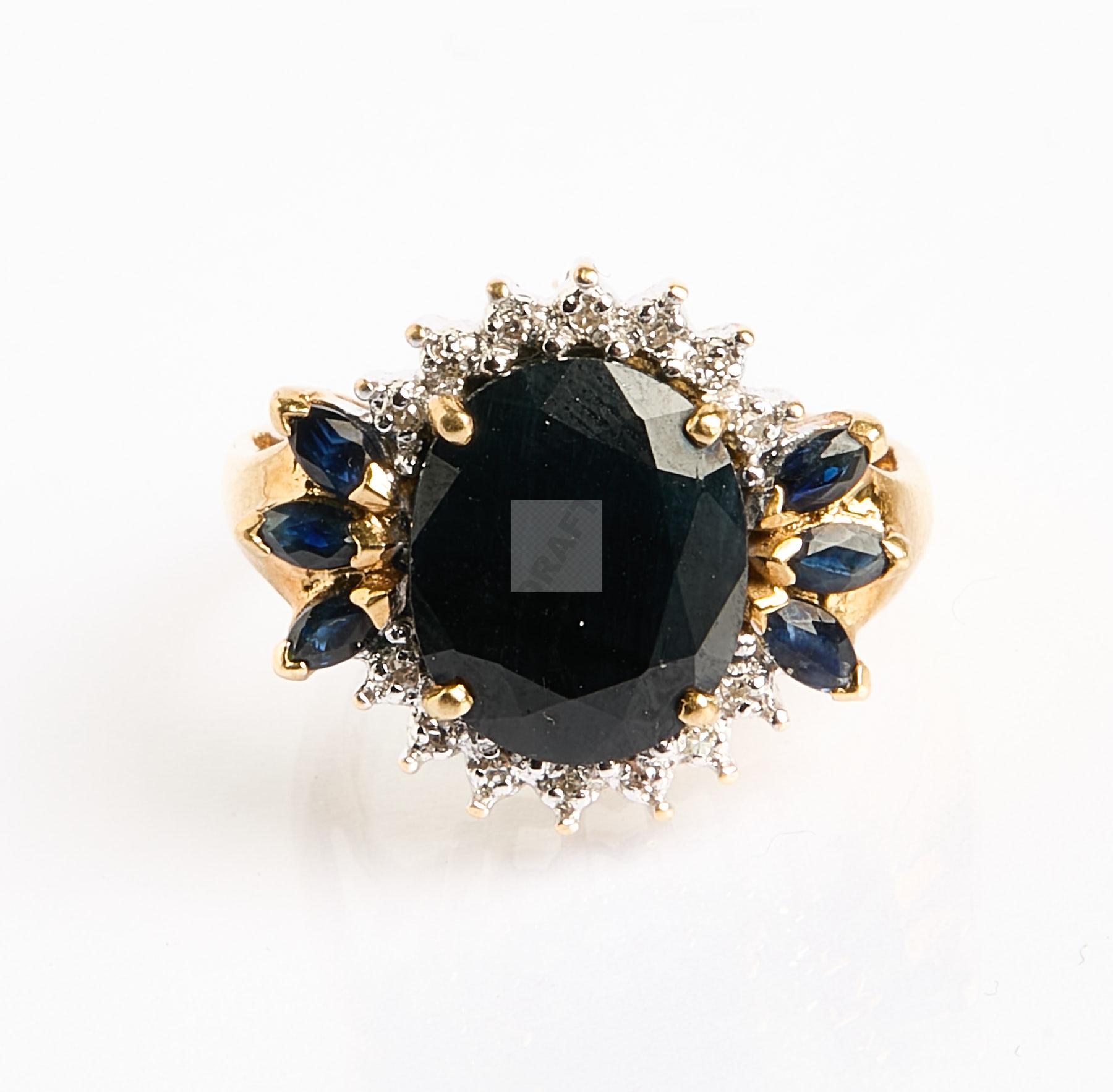 Lot n°218 - 218 Bague en or jaune 750 ‰ ornée d’un saphir australien de 3 ct environ entouré