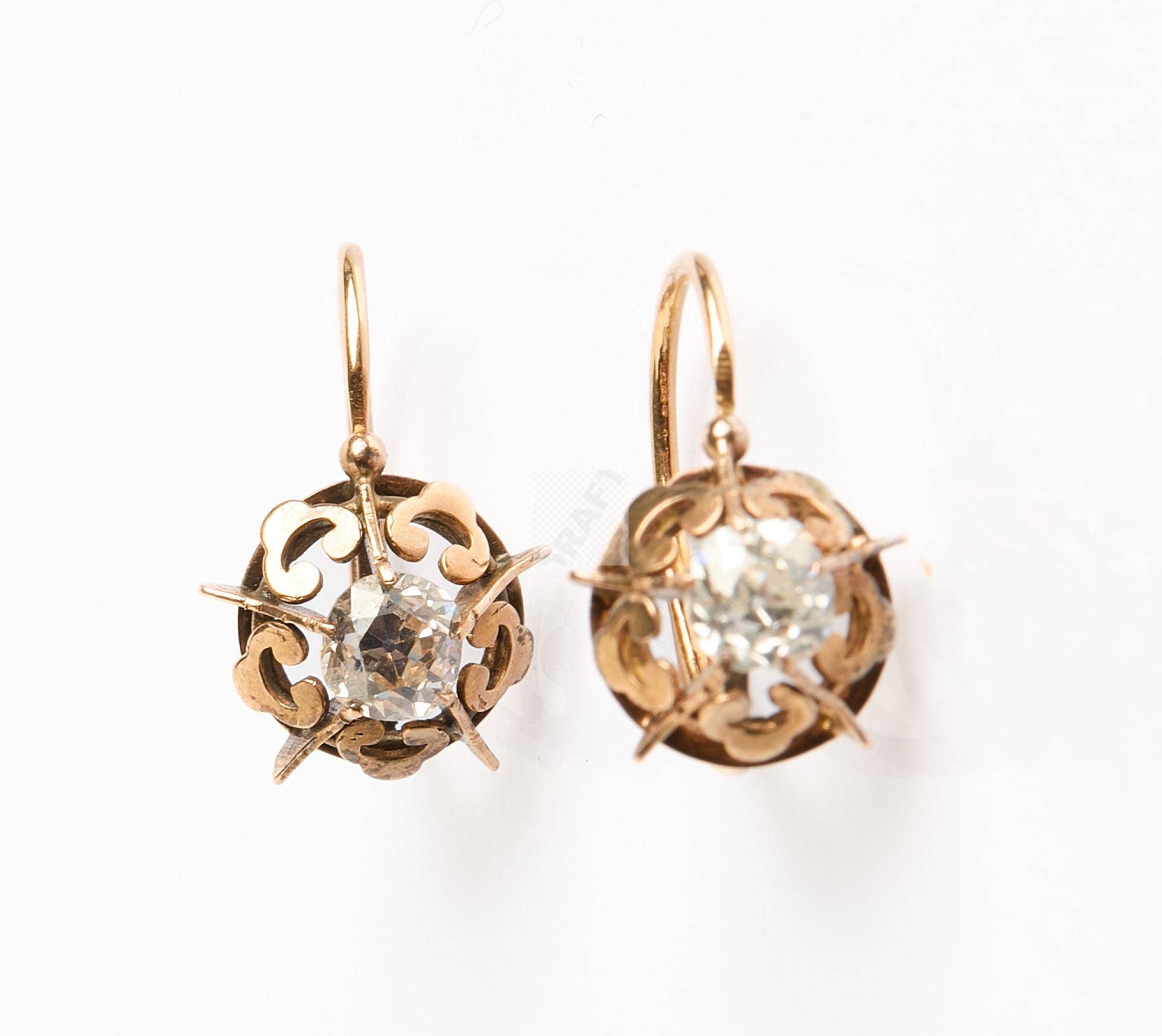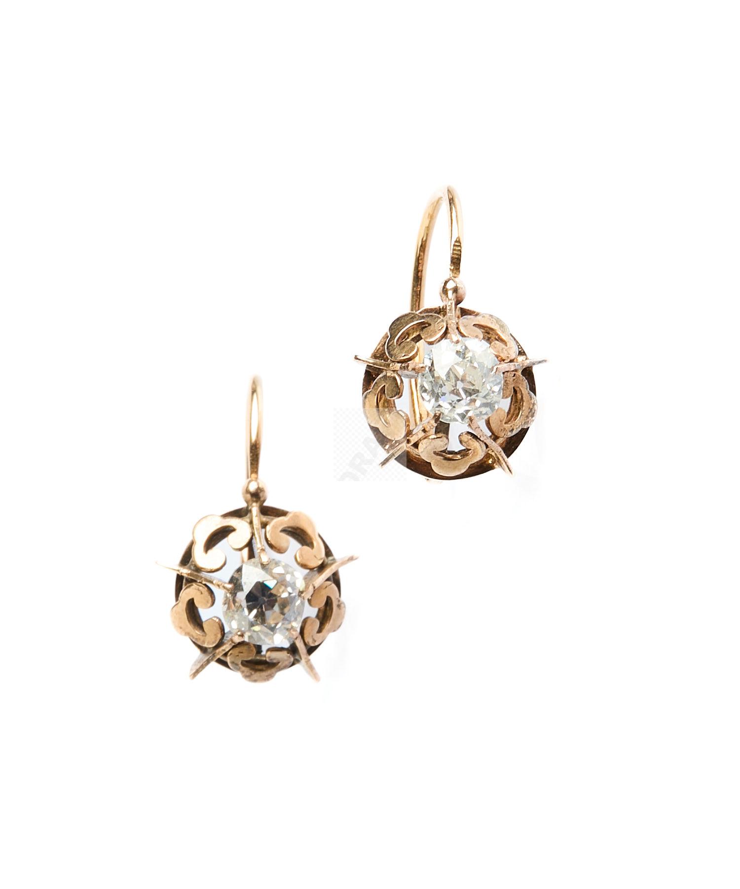 Lot n°221 - 221 Paire de dormeuses en or et diamants brillantés de taille ancienne totalisan
