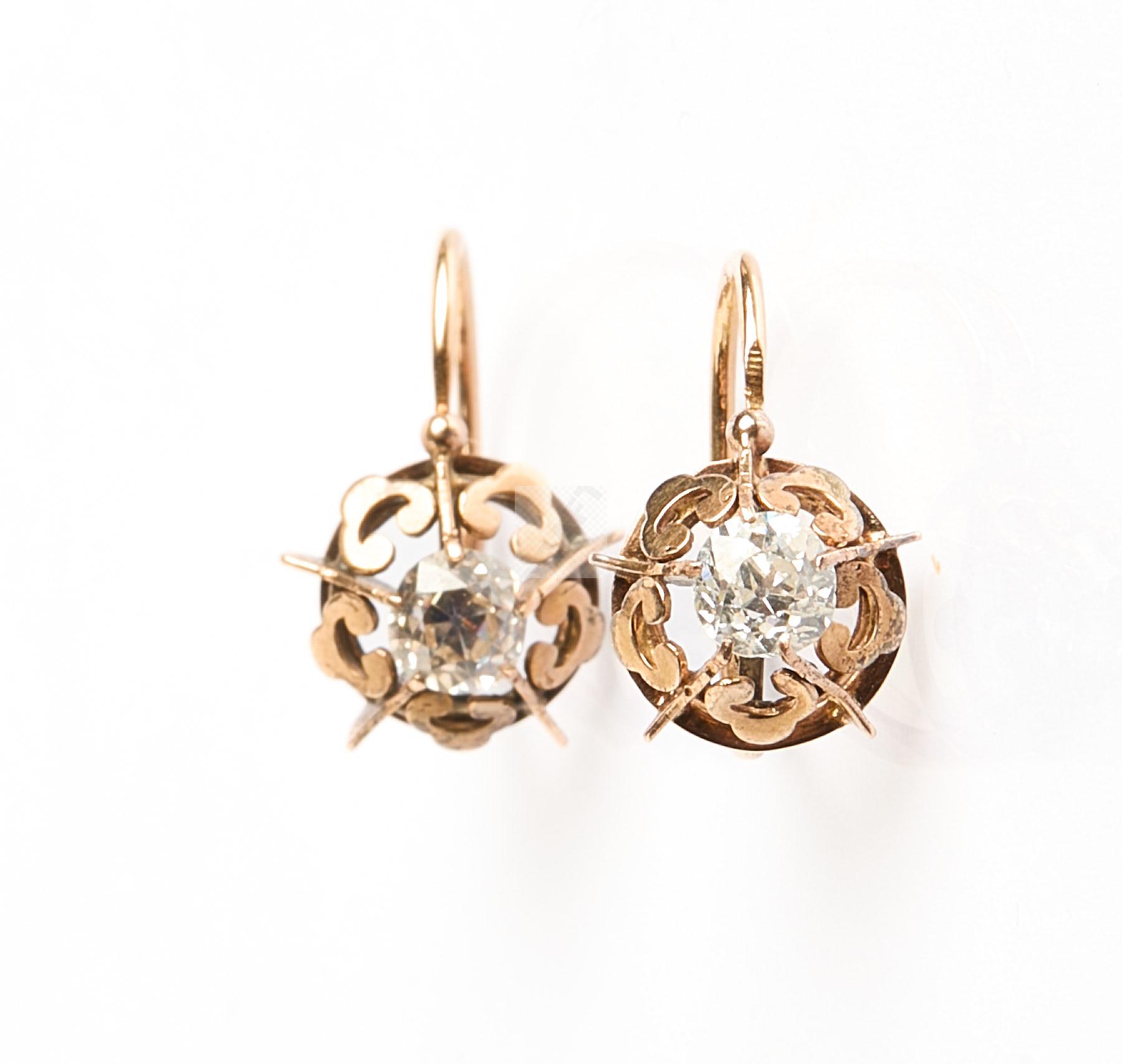 221 Paire de dormeuses en or et diamants brillantés de taille ancienne totalisant environ un carat, poids 2,4 g