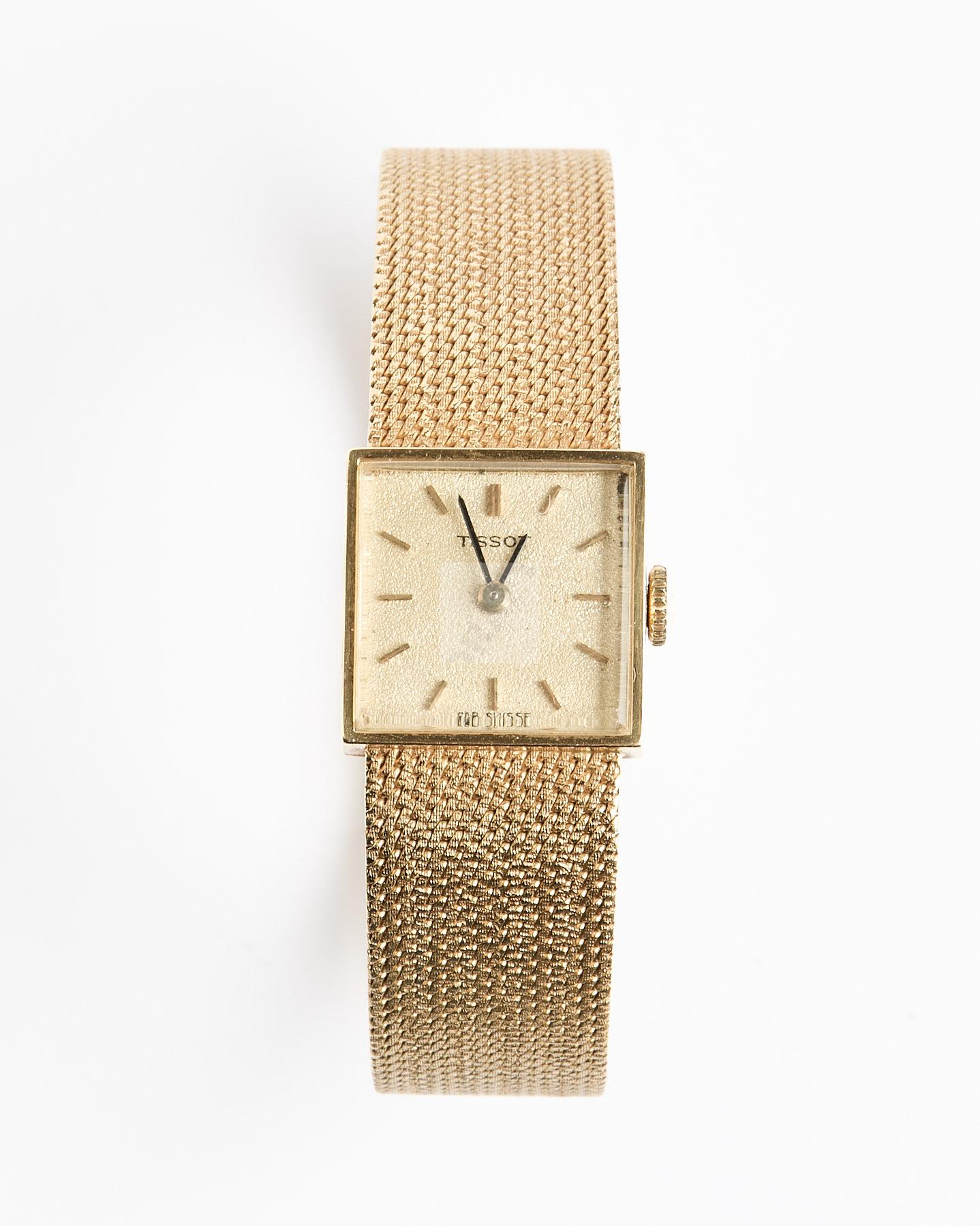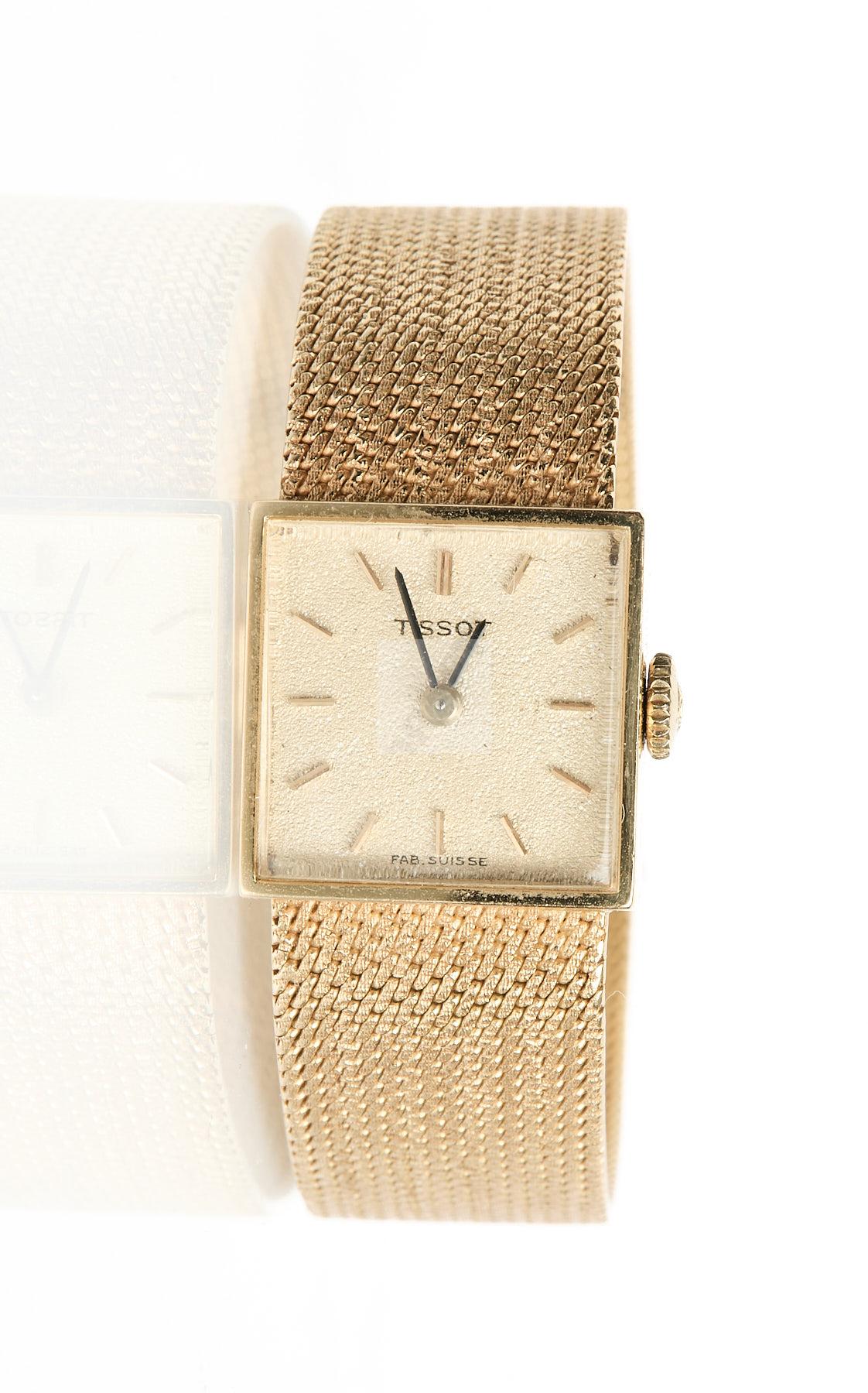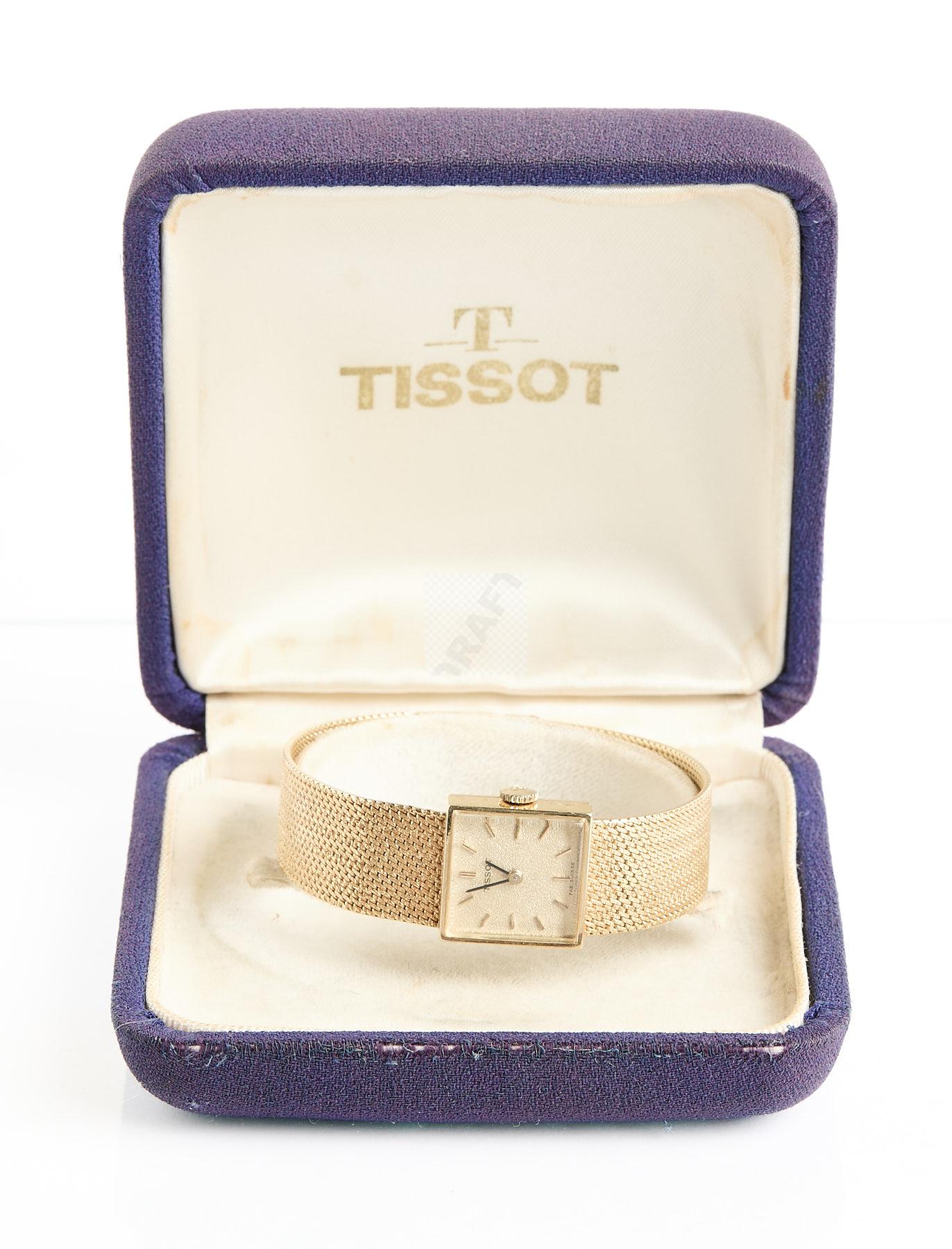 Lot n°224 - 224 TISSOT : montre de dame en or jaune 750 ‰, boite carrée, bracelet maille pol