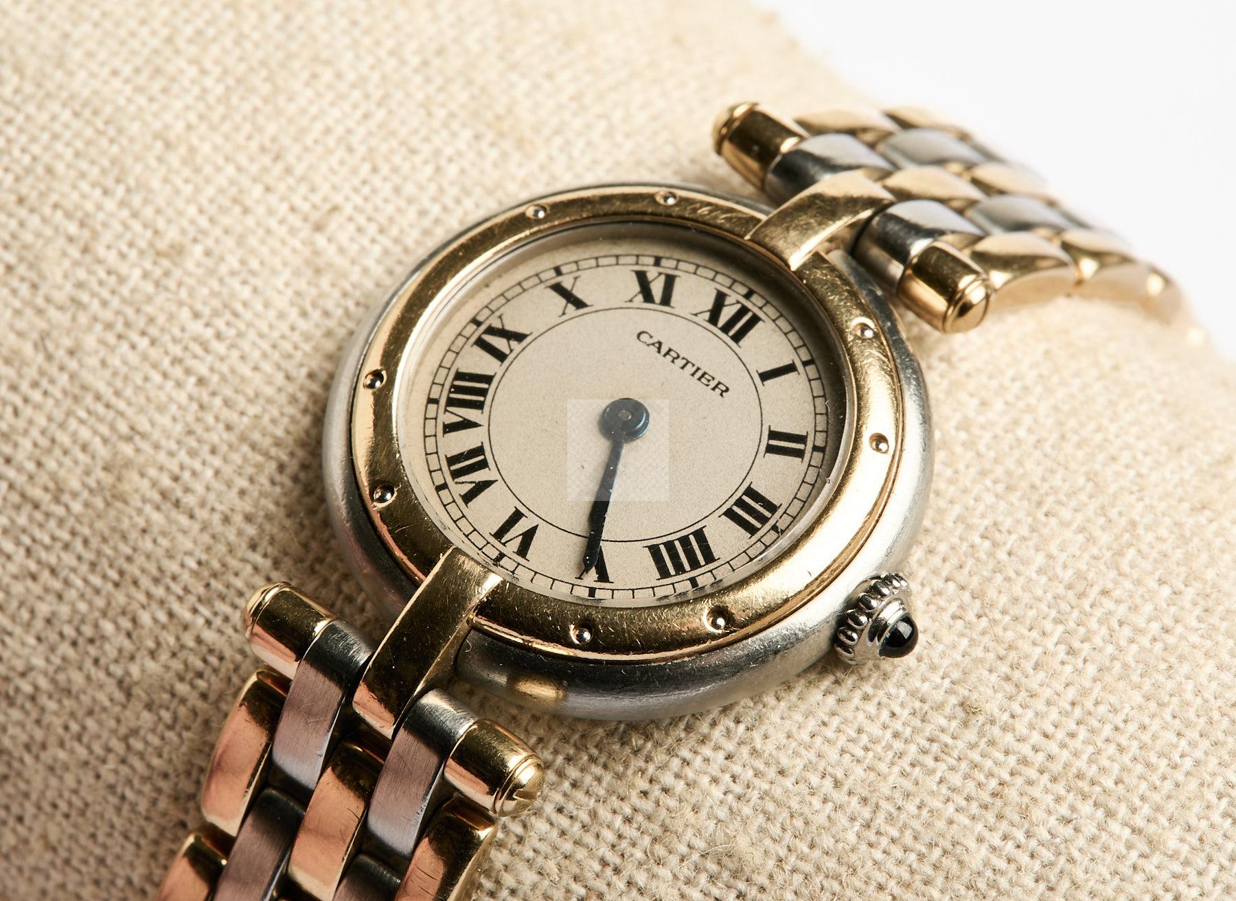 Lot n°225 - 225 CARTIER : Montre Panthère Vendôme à quartz en or et acier, pile à changer, p