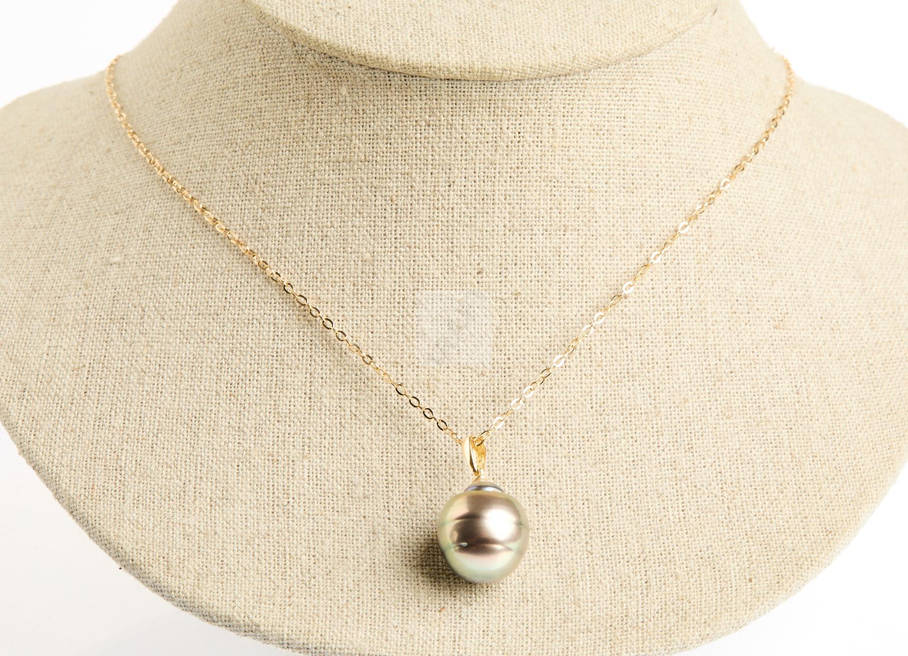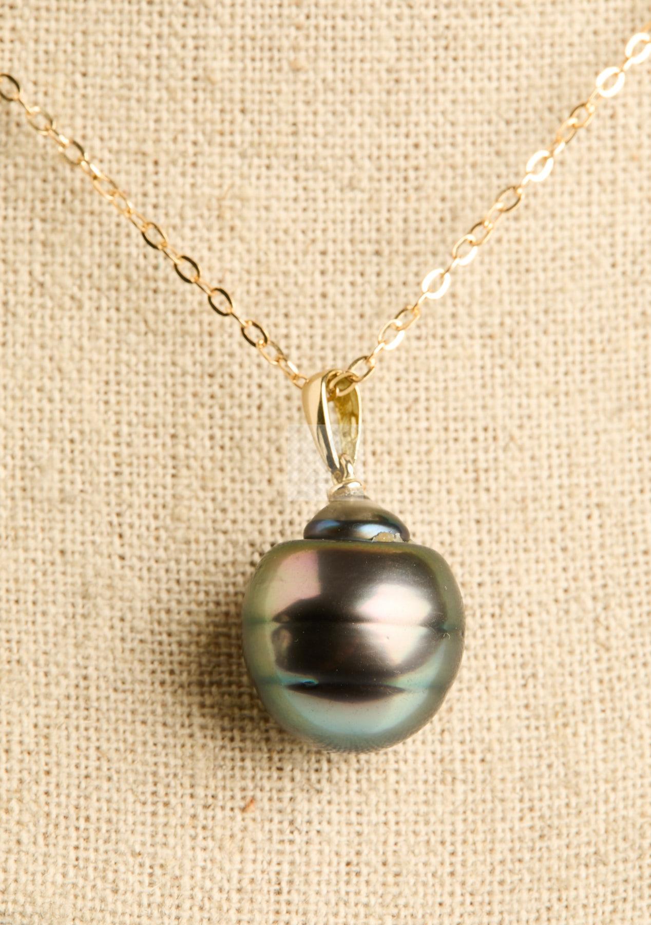 254 Chaine en or jaune 750 ‰ ornée d’une belle perle de culture cerclée de Tahiti de 14,47 x 16,5 mm, poids 5,7 g