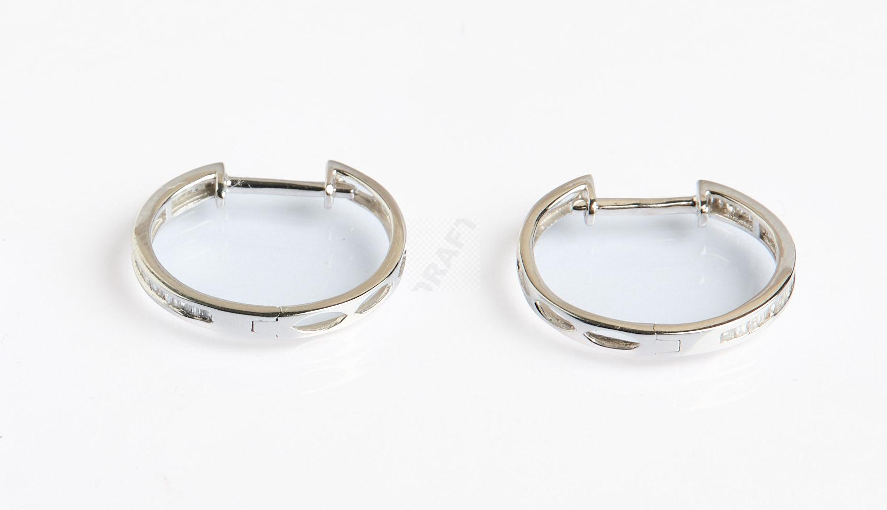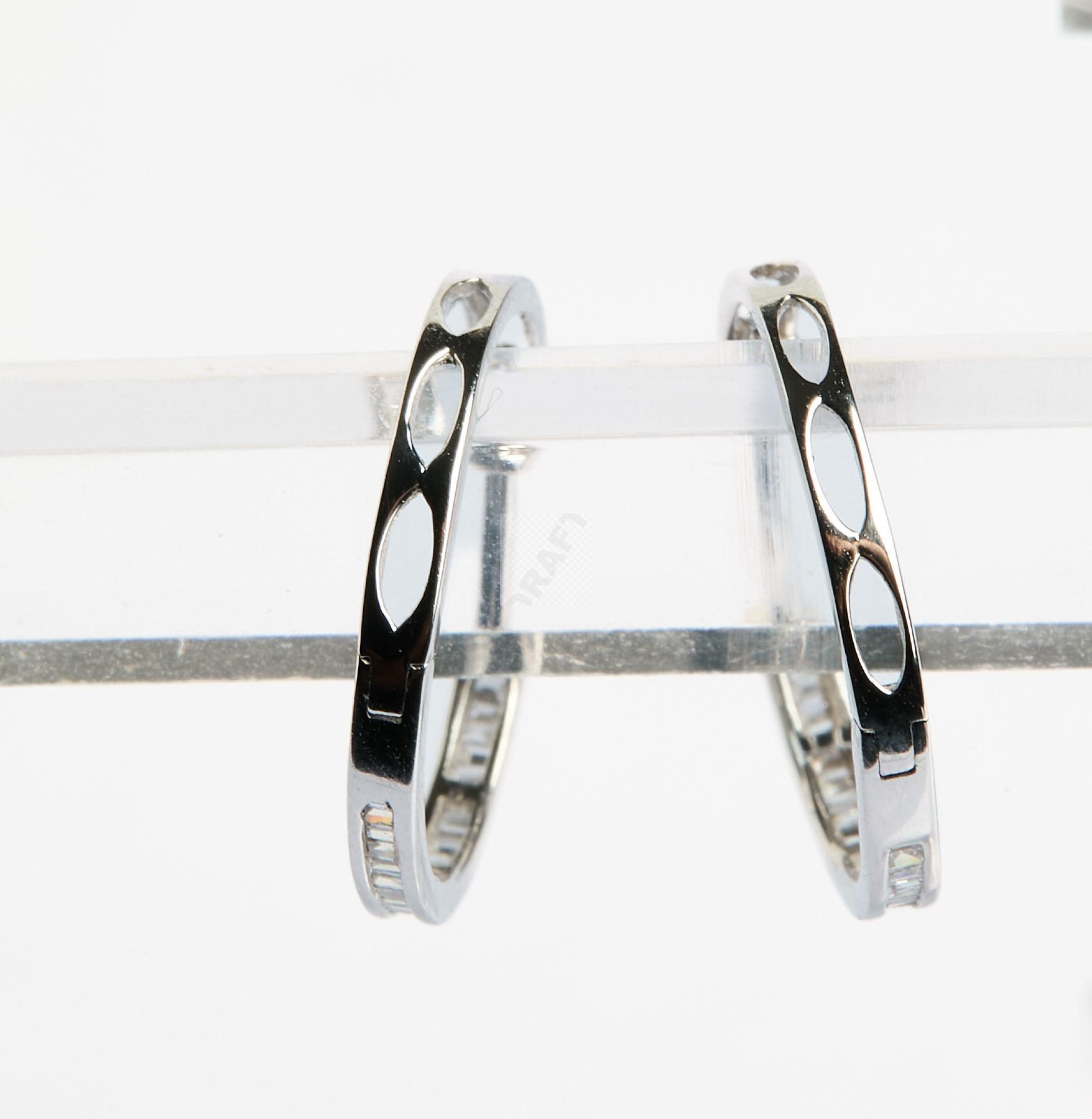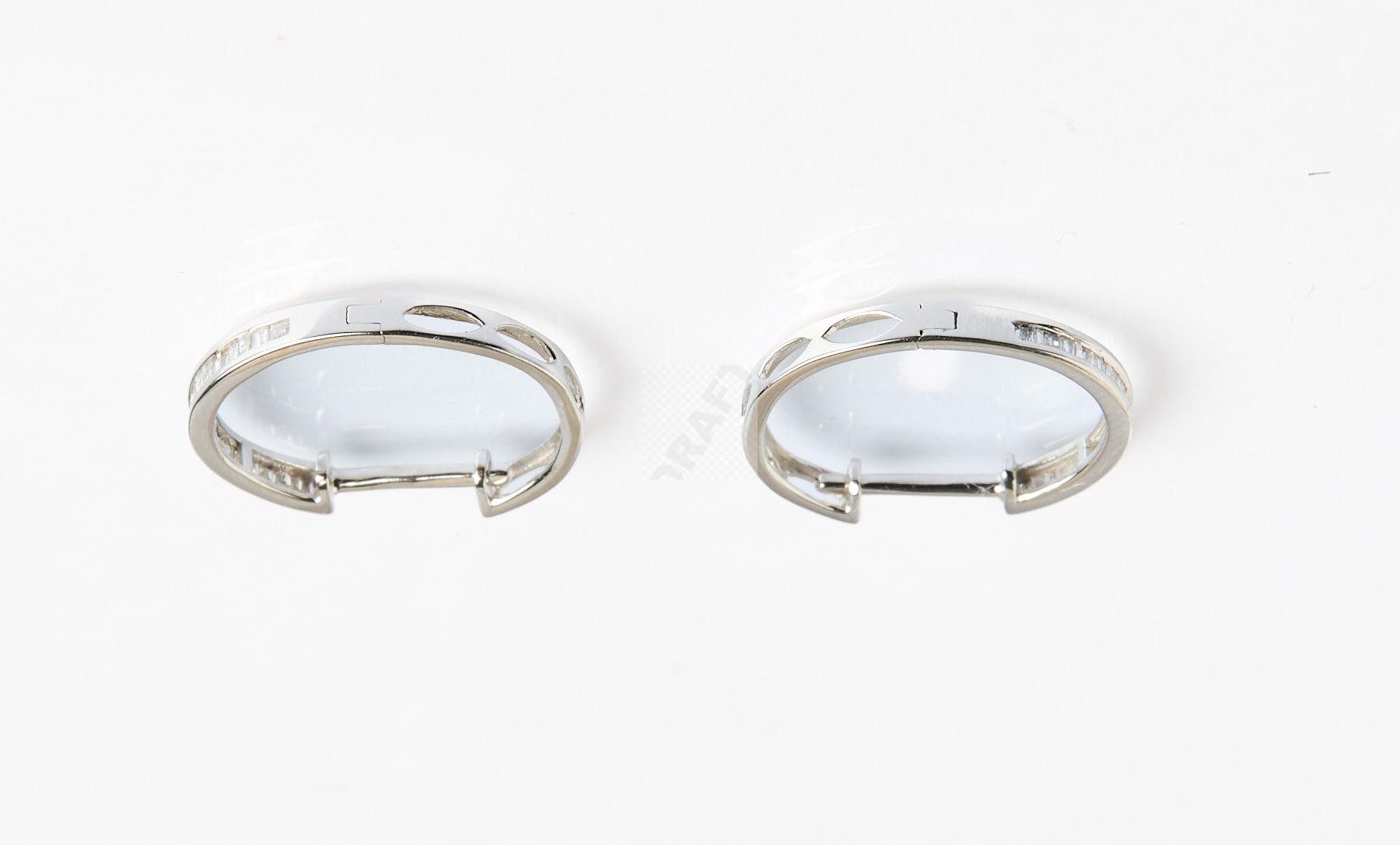 Lot n°271 - 271 Paire de créoles en or gris 750/1000 sertie de diamants baguettes.