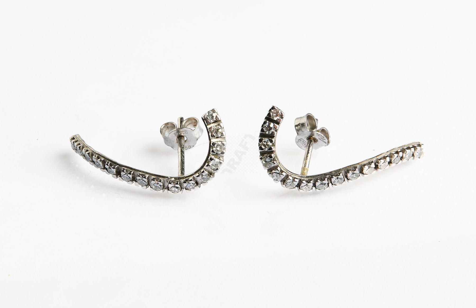 Lot n°317 - 317 Paire de clous d’oreilles en S en platine et 30 petits diamants 8/8, poids 1