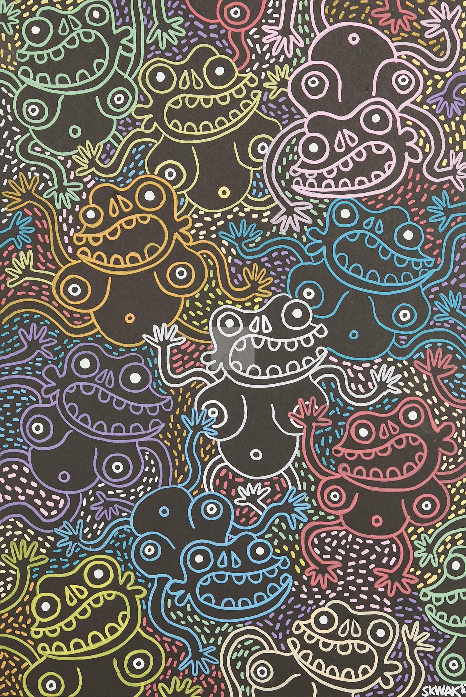 Lot n°74 - 74 SKWAK (né en 1977), "Partie fine" 2016, Posca couleurs sur feuille