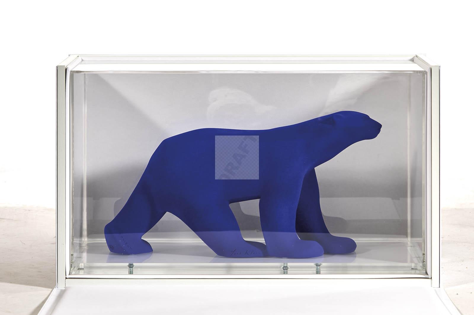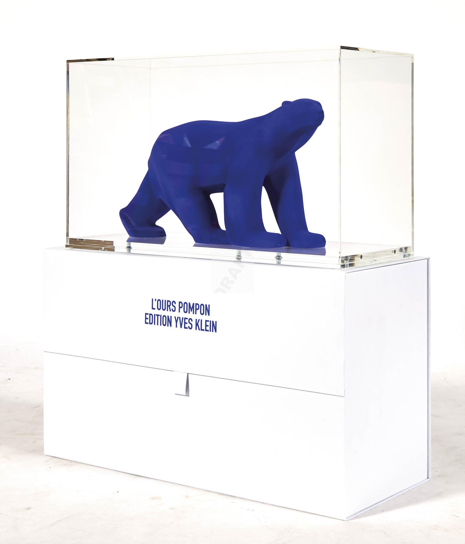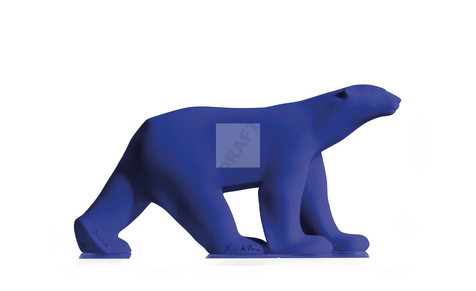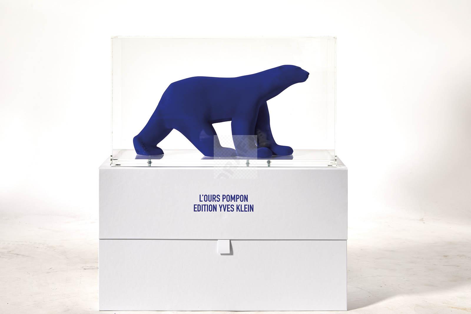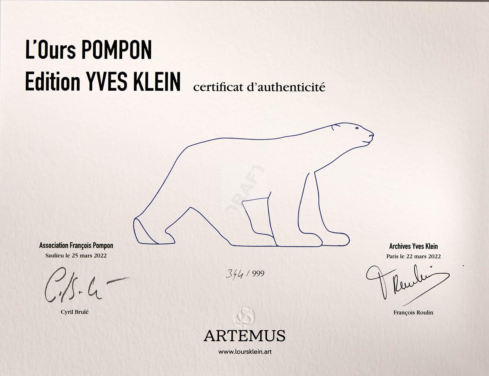 À l’occasion du centenaire de la présentation de L’Ours blanc de François Pompon et du soixantième anniversaire de la disparition d’Yves Klein, Artémus Éditions revisite ce chef-d’uvre en y apposant l’International Klein Blue (IKB). Dans la continuité de la démarche de Klein, qui voyait dans le monochrome un espace de liberté et d’incarnation sensible, cette édition rend hommage à la fois au sculpteur animalier et à l’artiste du bleu, réunissant deux icônes de l’histoire de l’art.