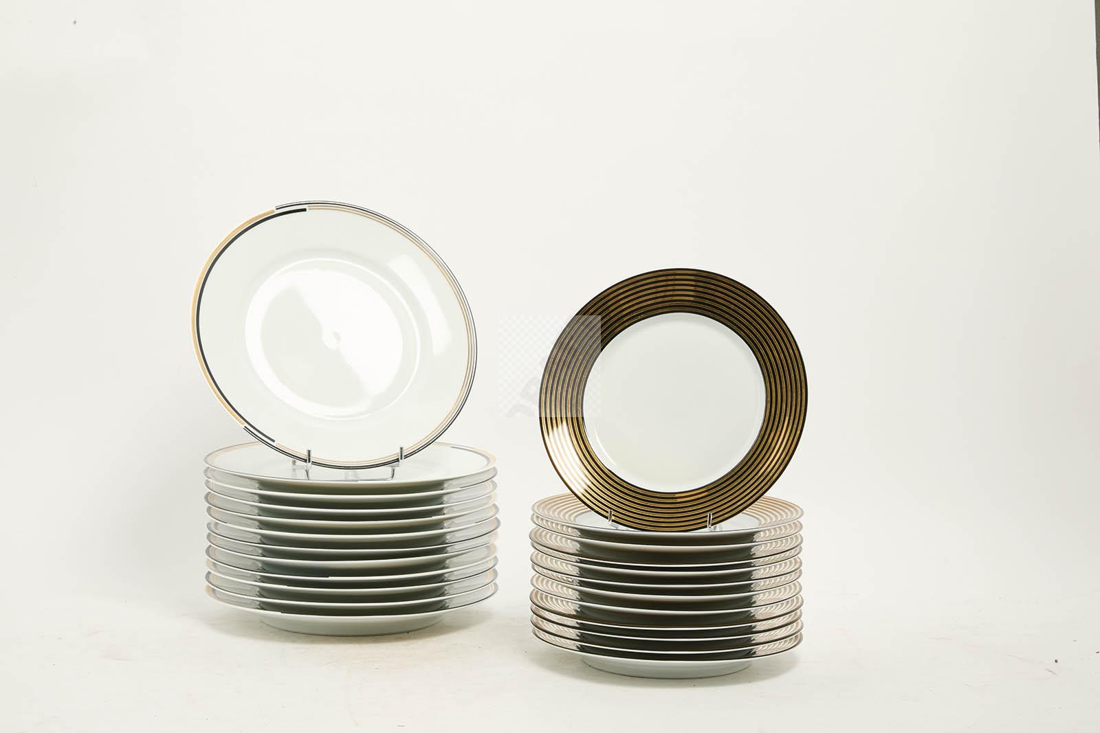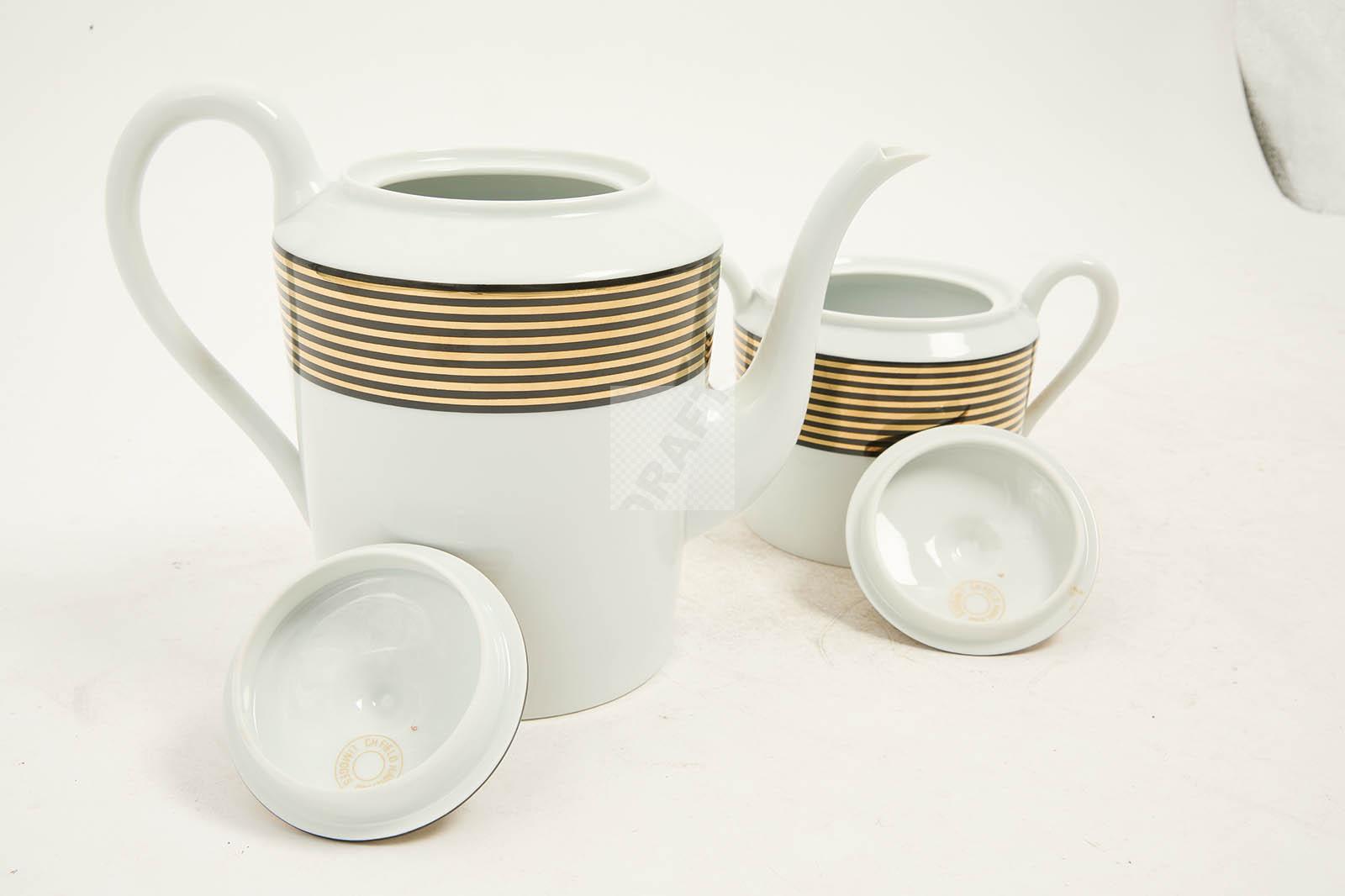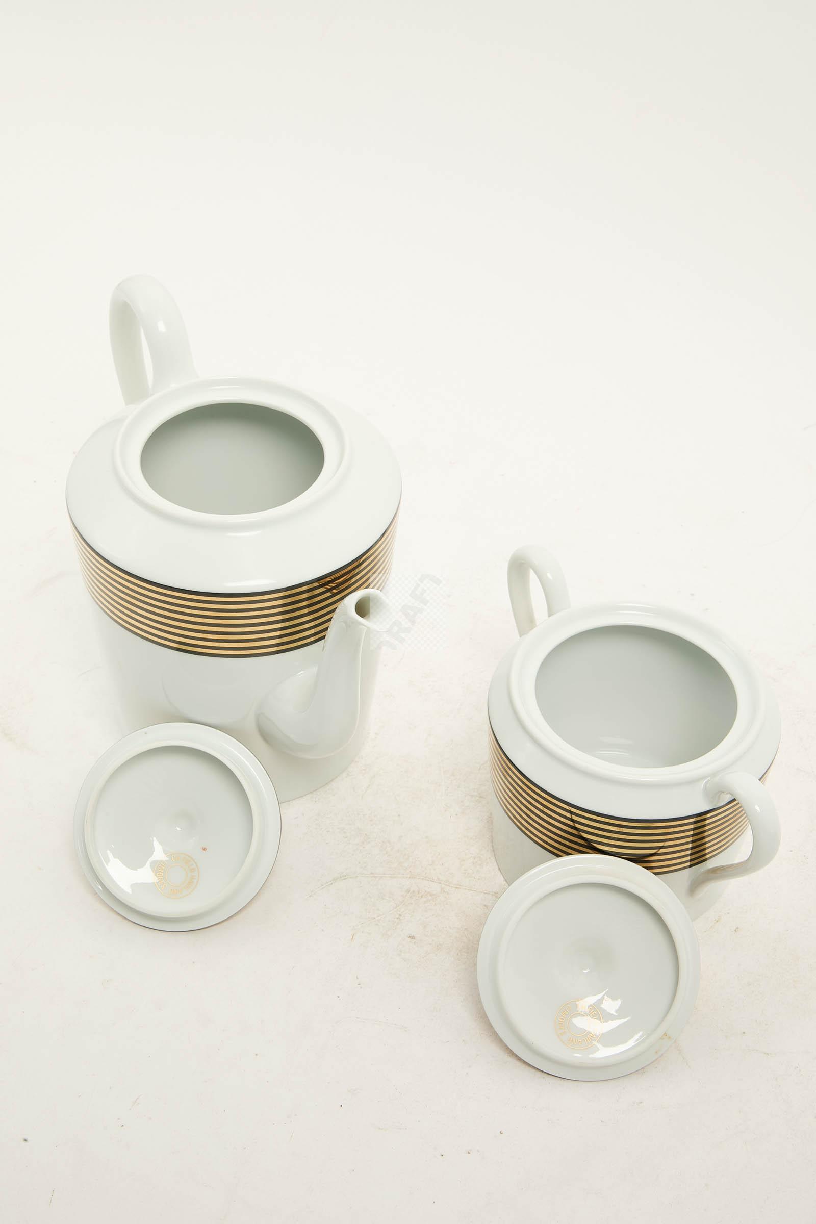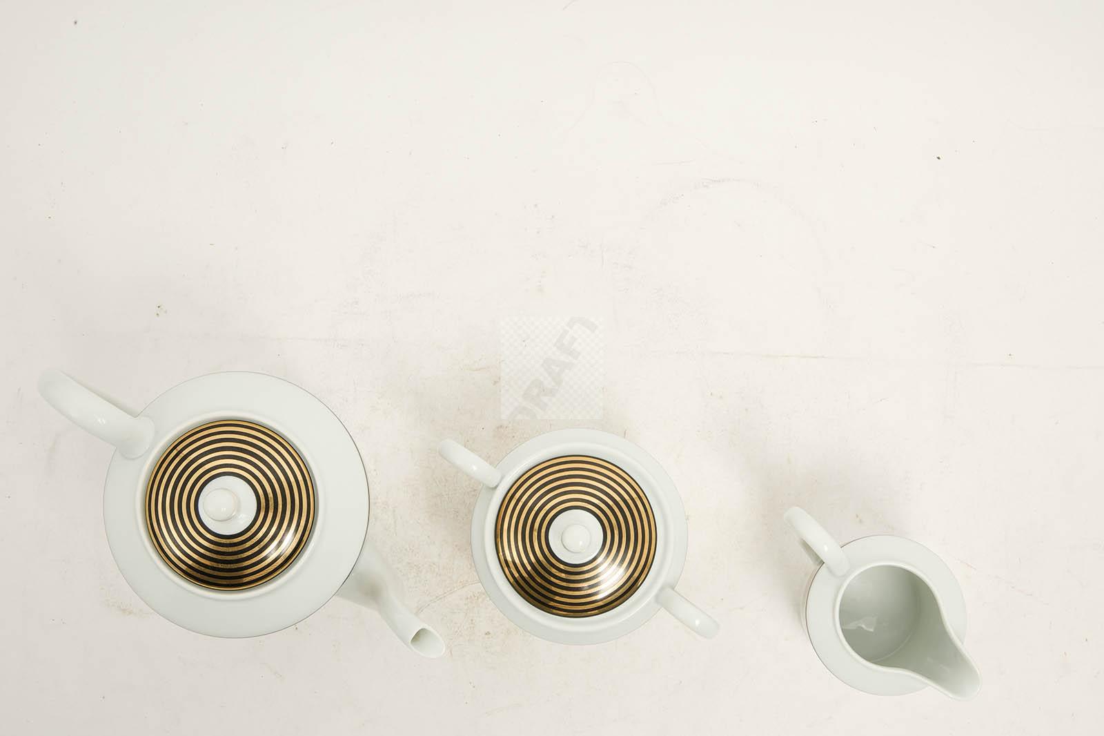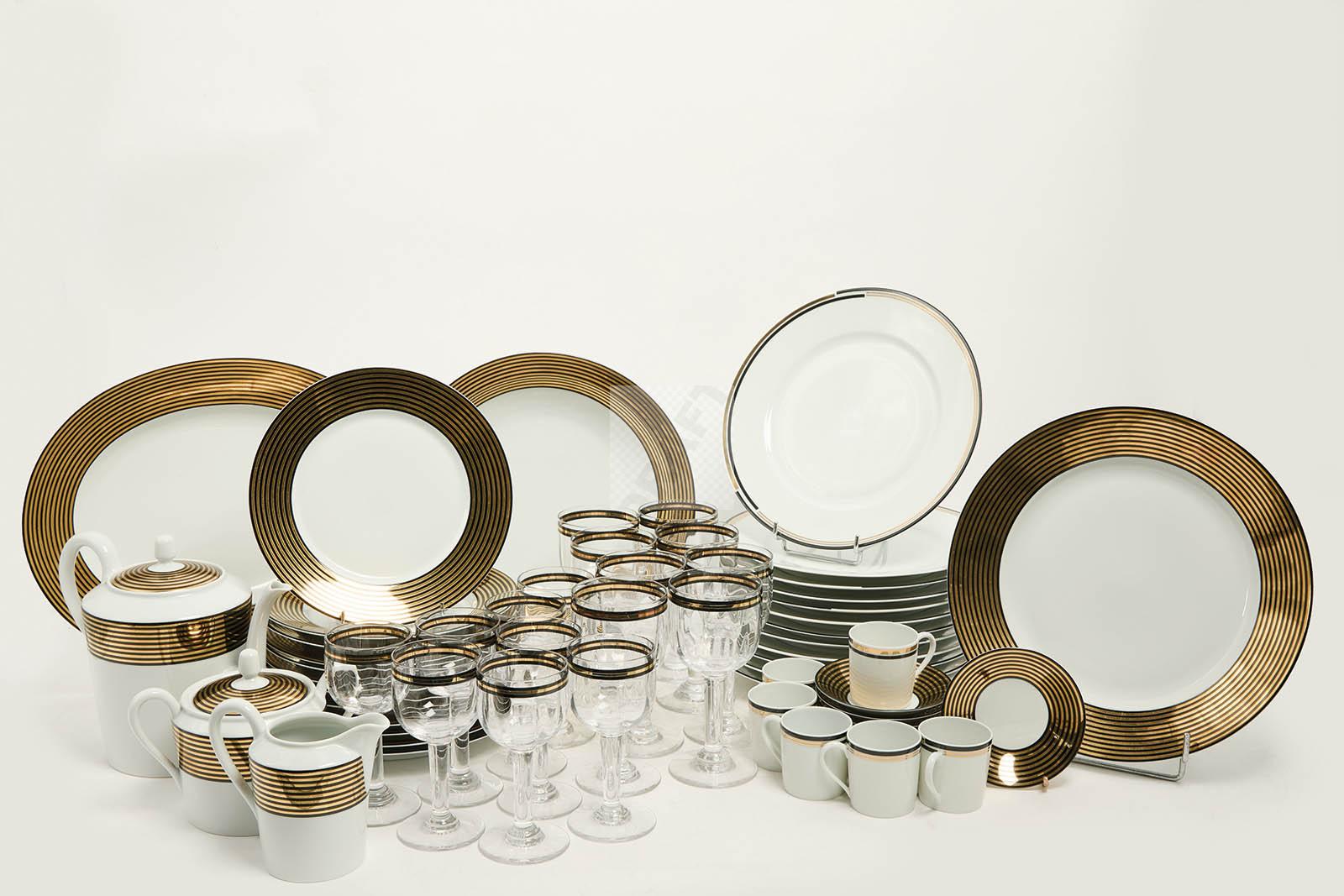 Importante et rare partie de service en porcelaine à décor style Art Déco noir et or à motifs géométriques alternés.