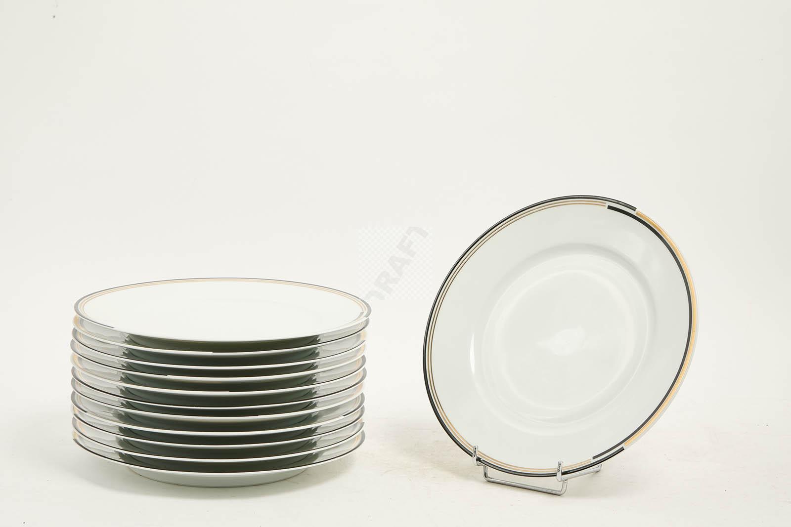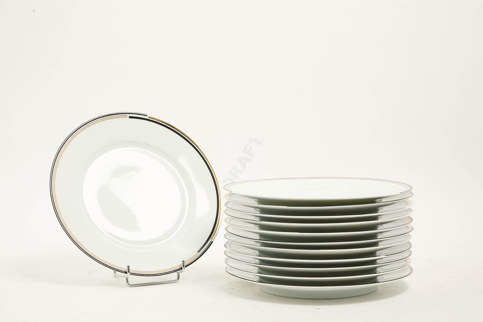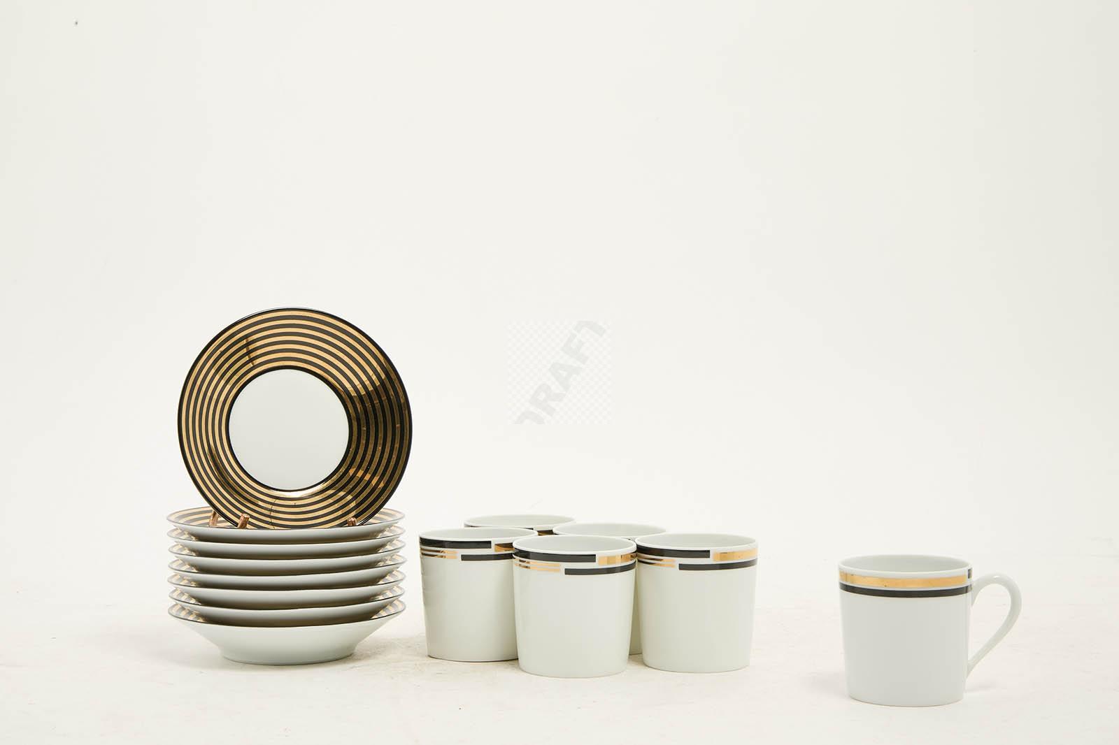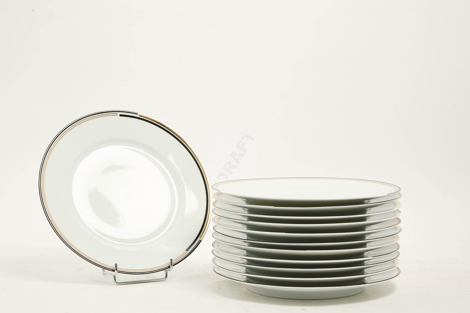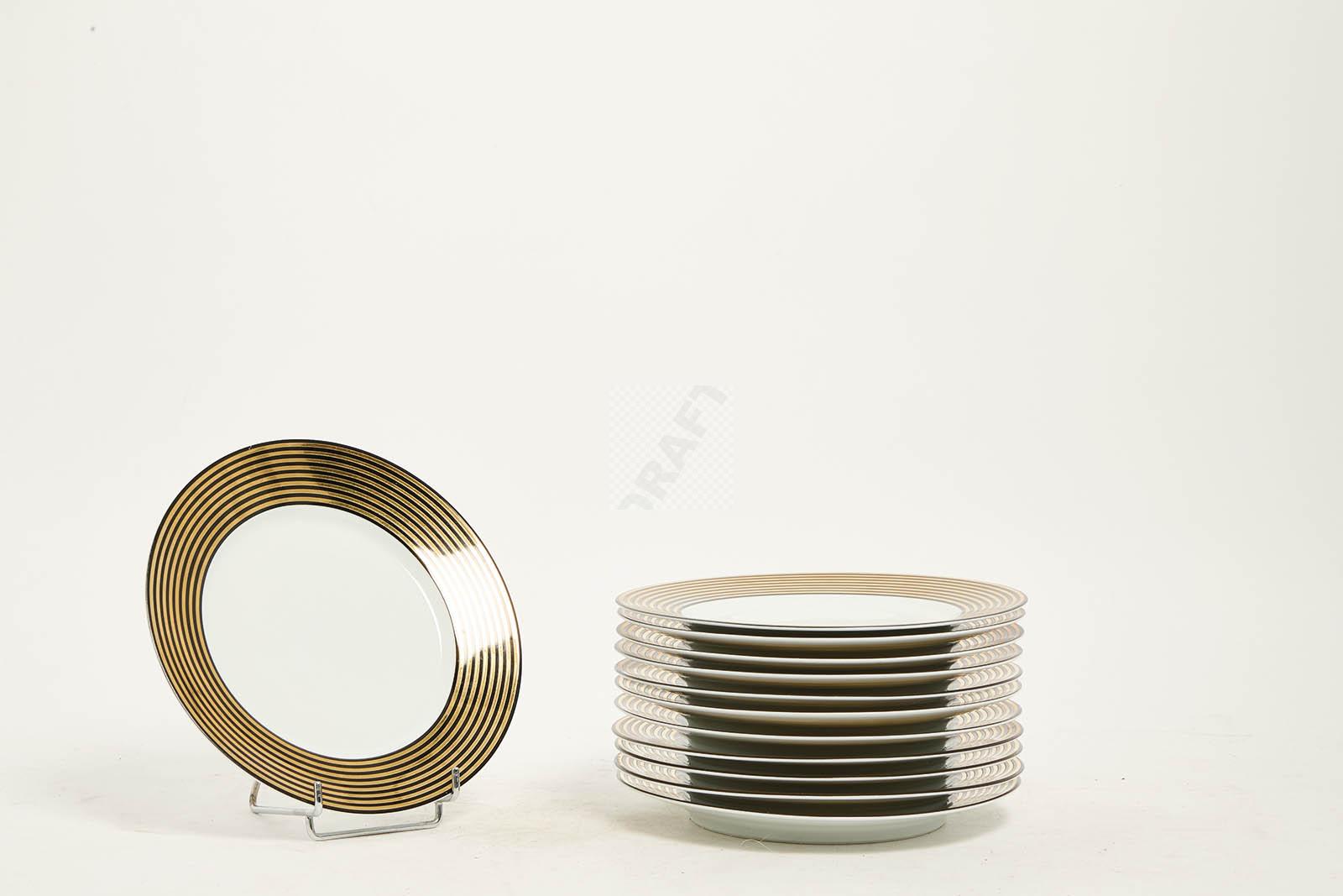 Importante et rare partie de service en porcelaine à décor style Art Déco noir et or à motifs géométriques alternés.