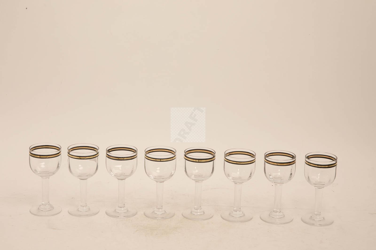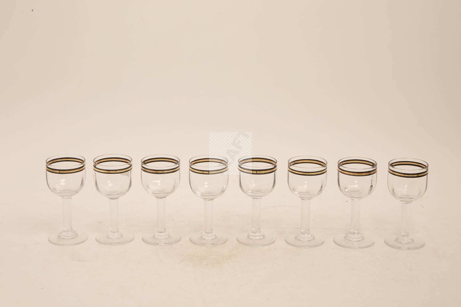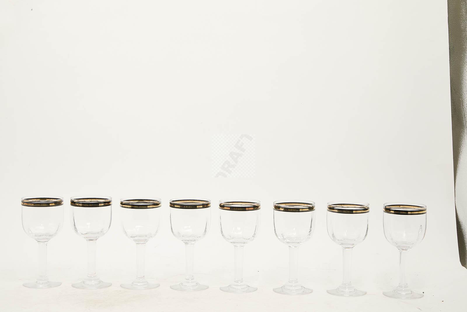 Ainsi que 8 verres à eau, 8 verres à vins en cristal à décor au motif.