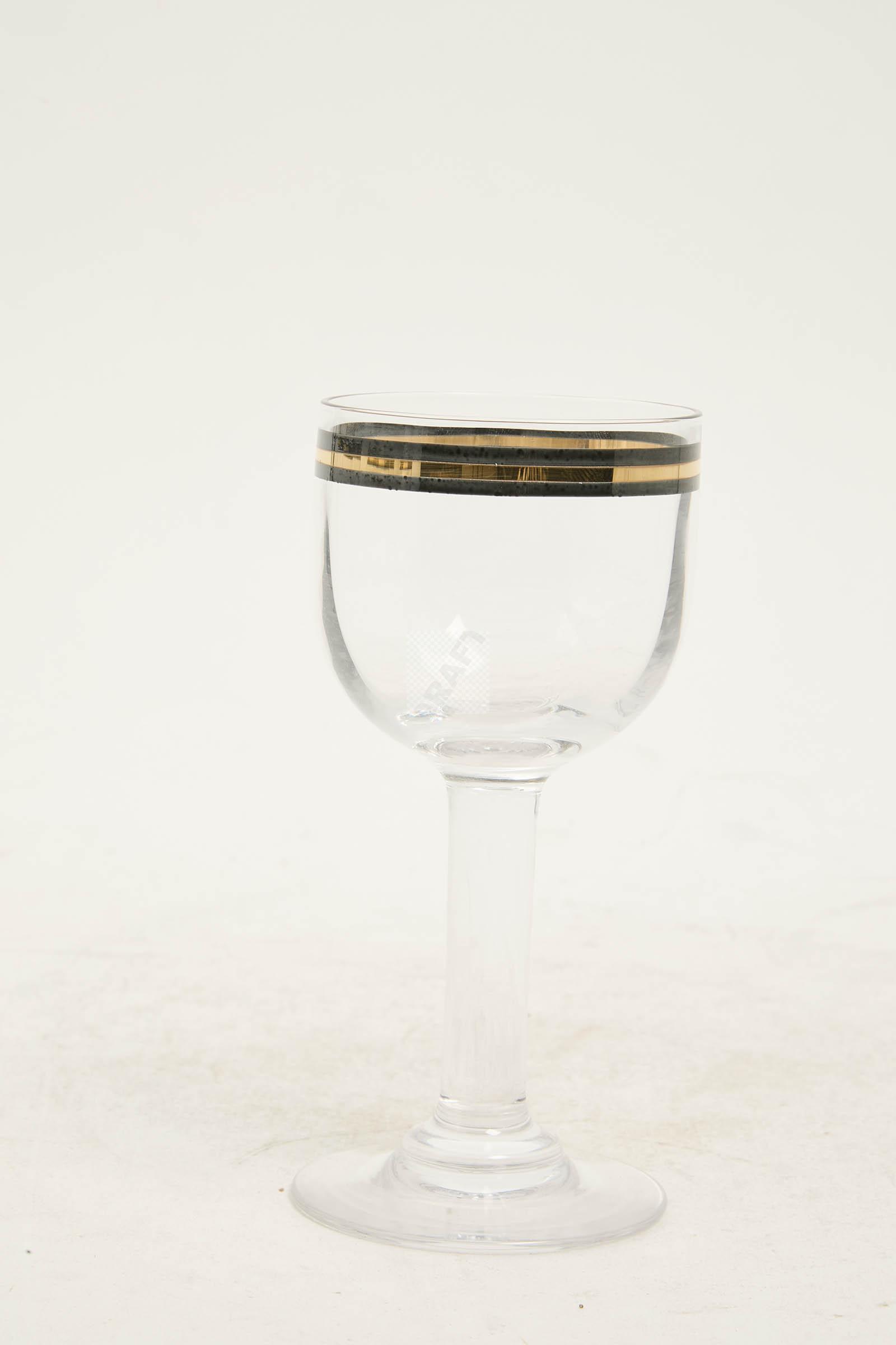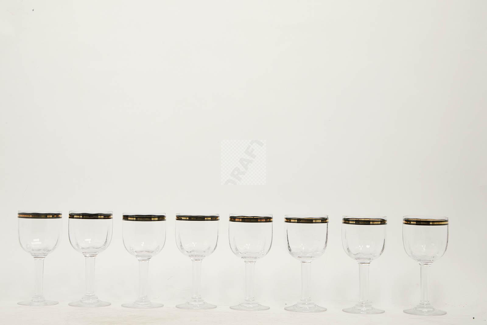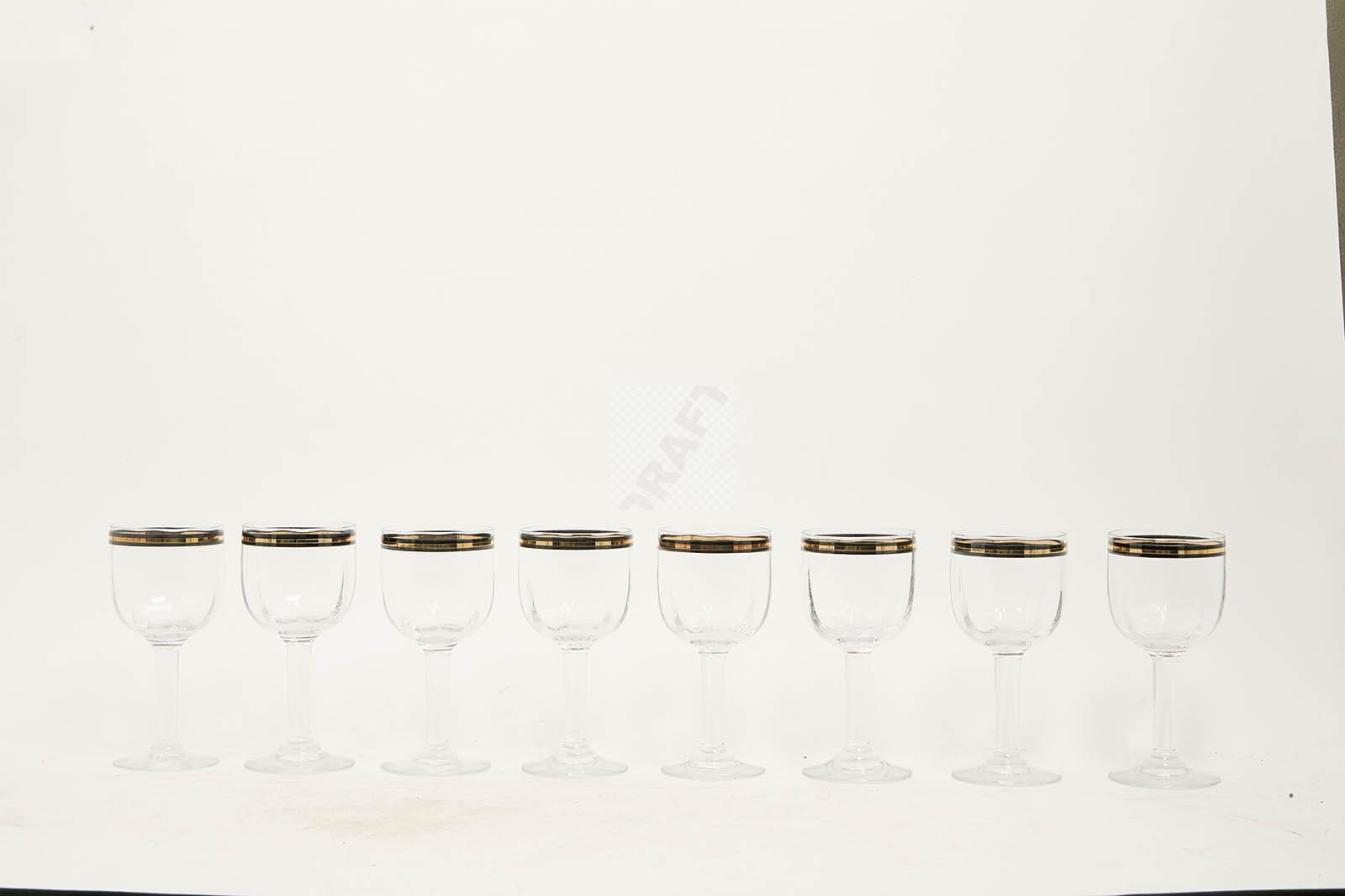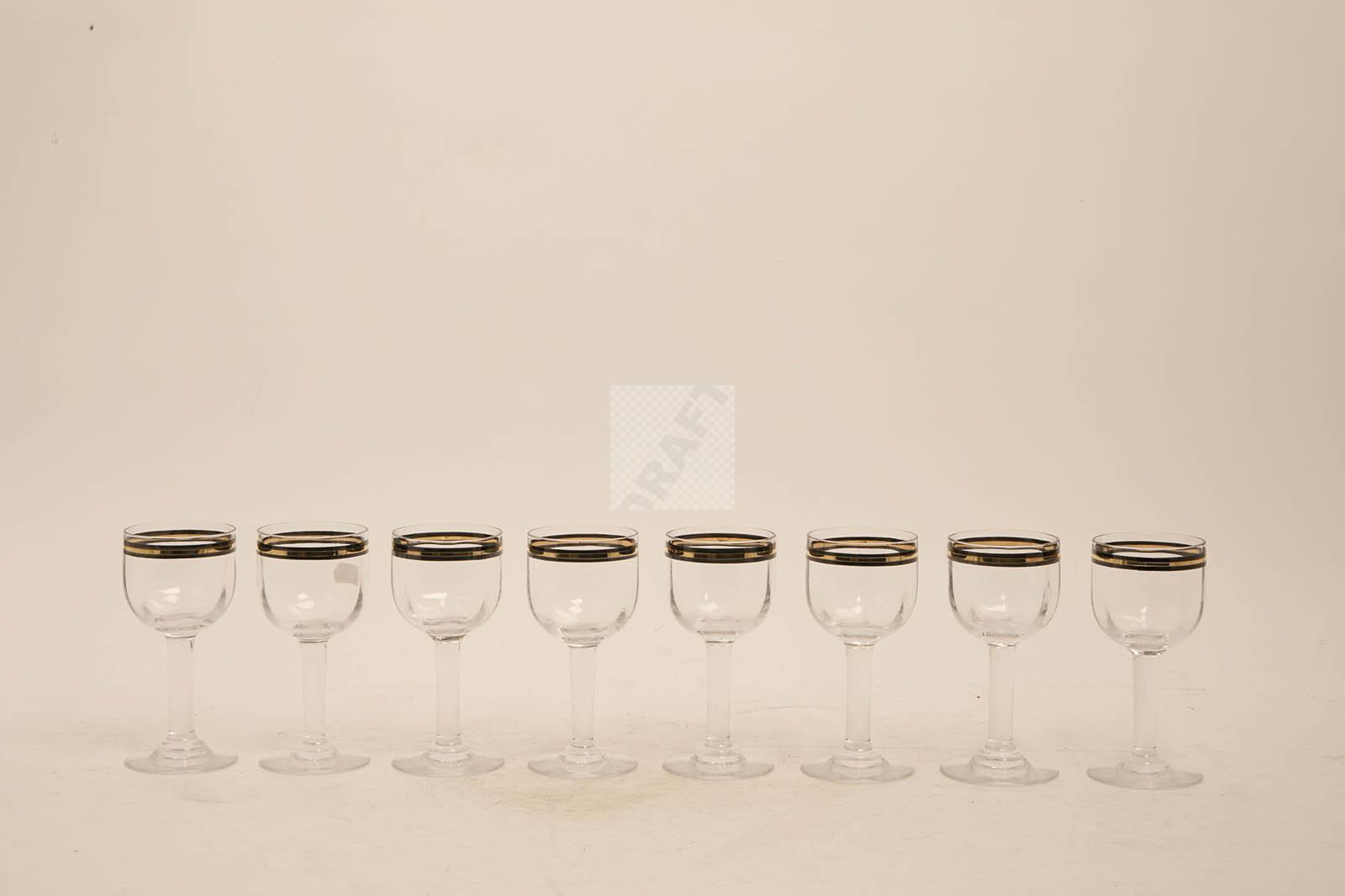 Ainsi que 8 verres à eau, 8 verres à vins en cristal à décor au motif.