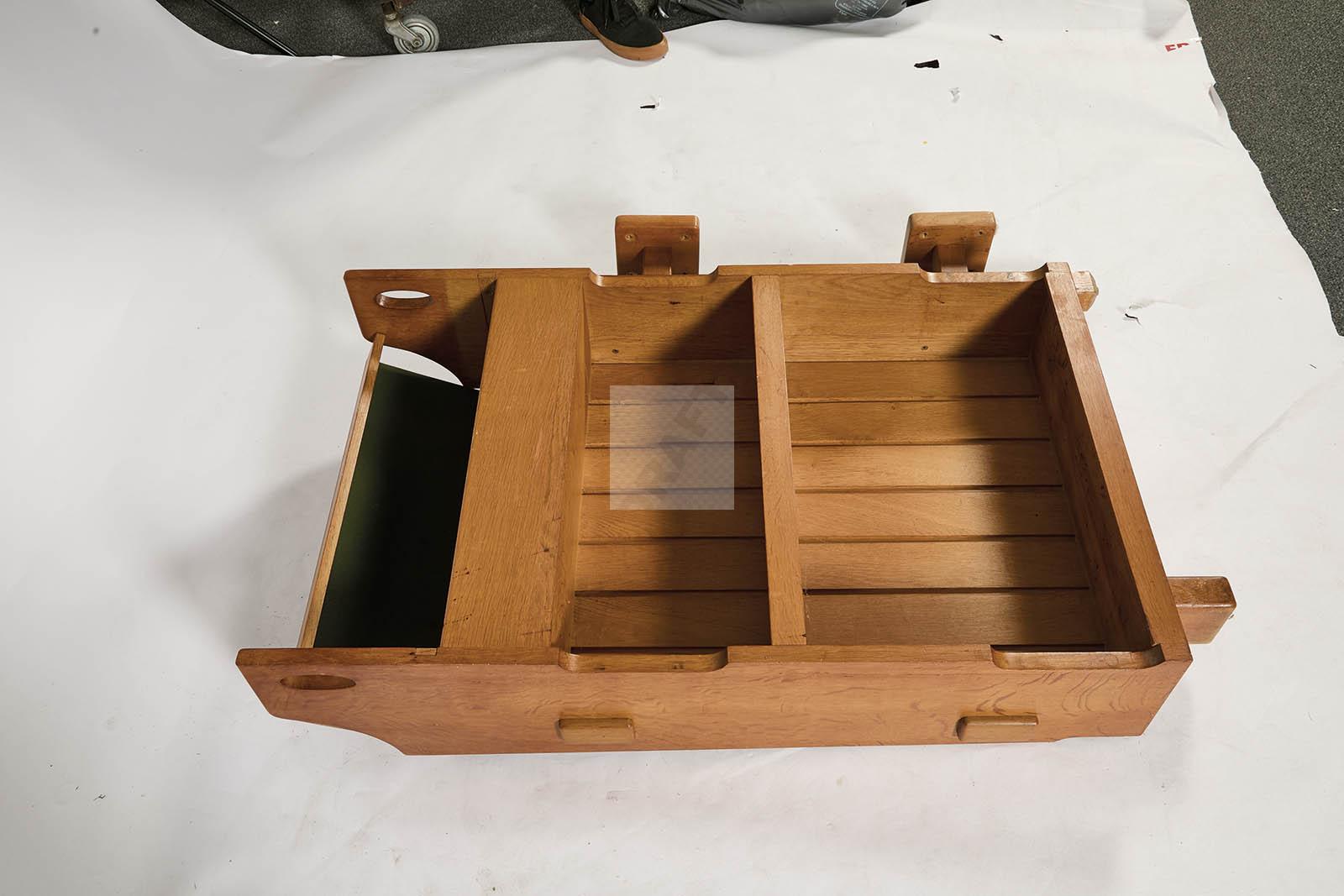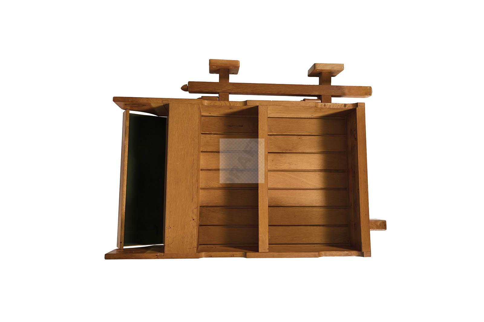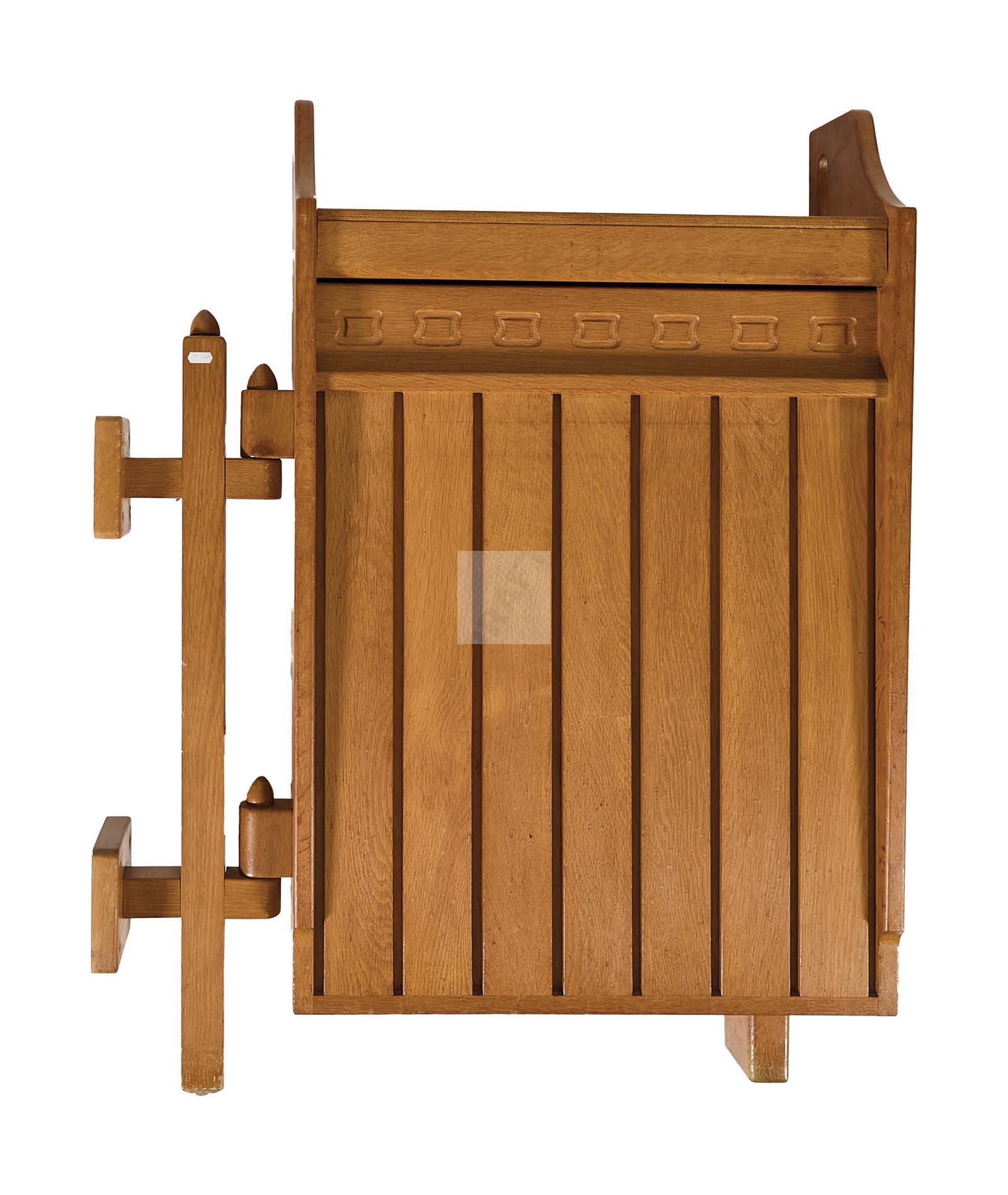 Meuble-bar pivotant en chêne, ouvrant par un compartiment à verre sur le dessus,