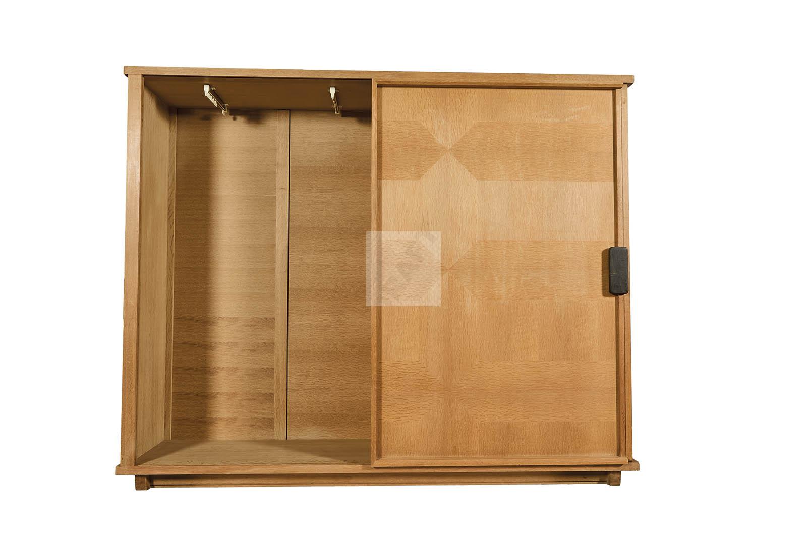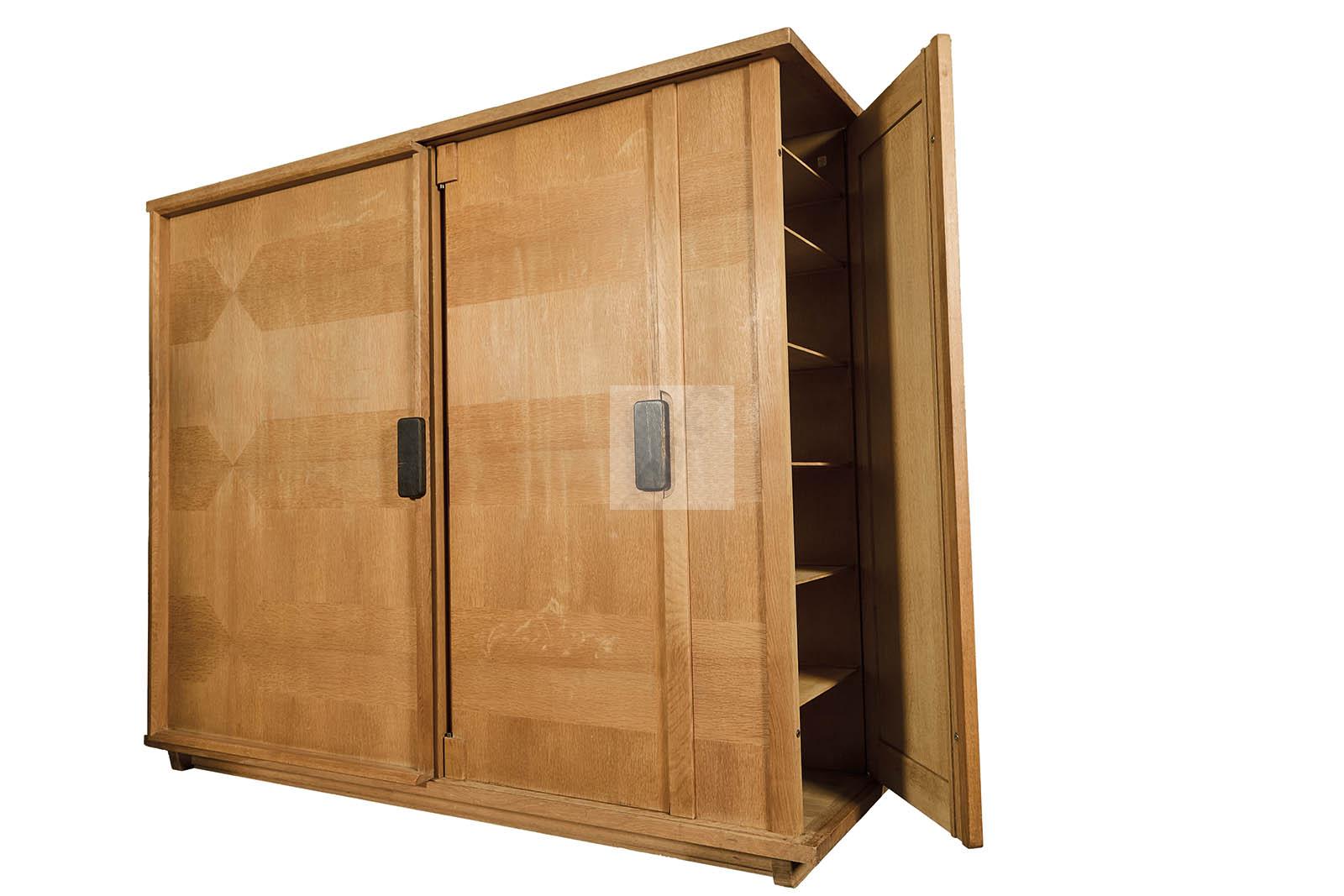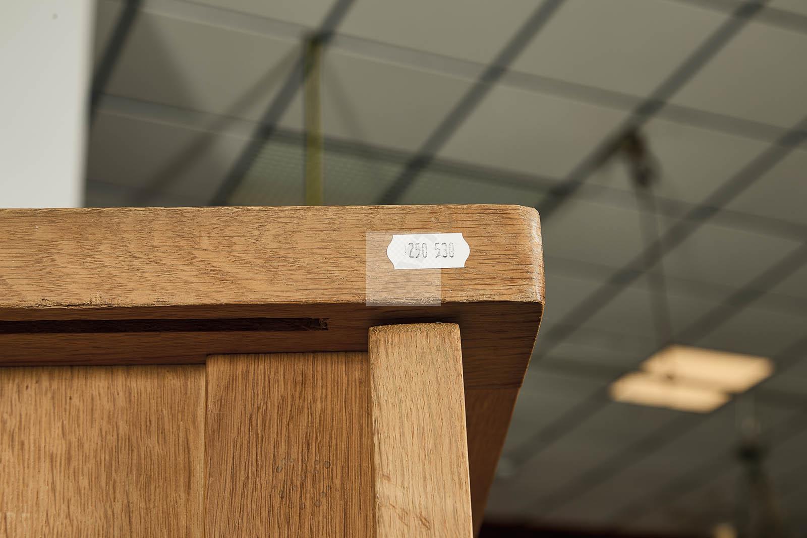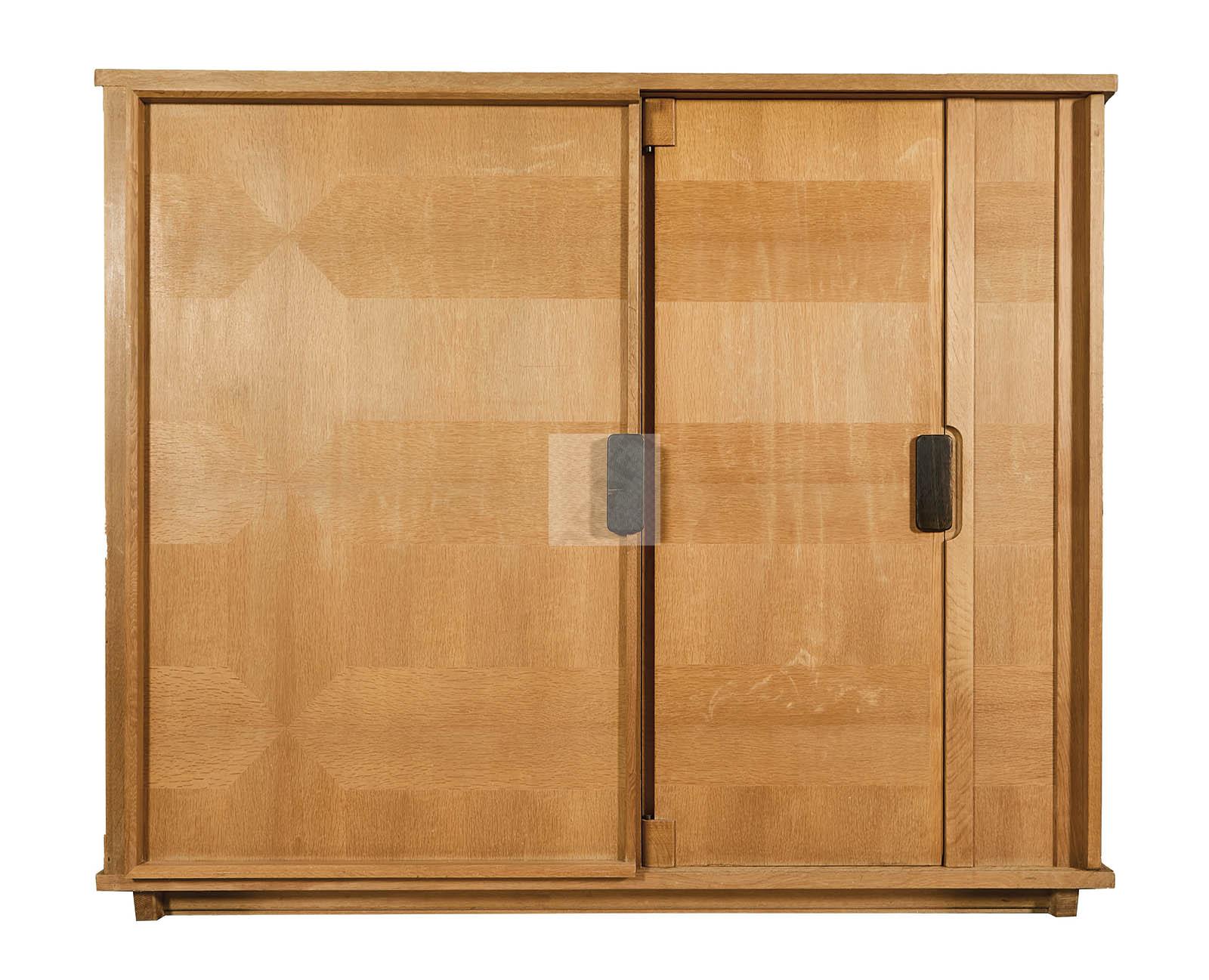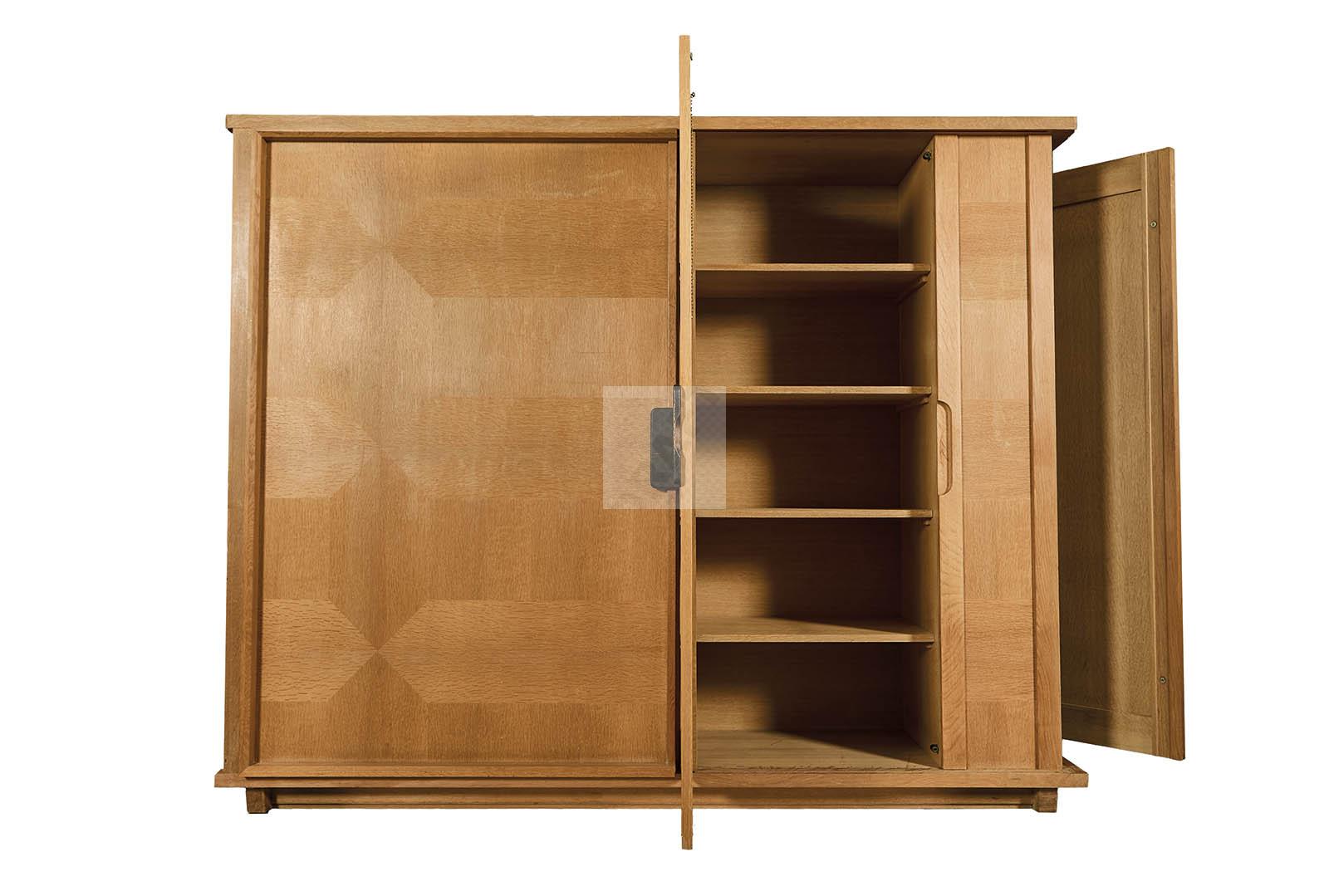 Armoire à deux portes en chêne et bois teinté au niveau des poignées,