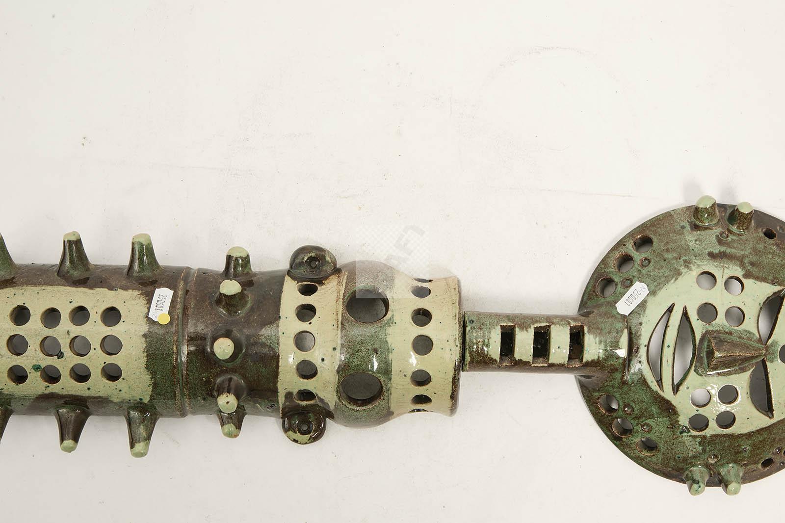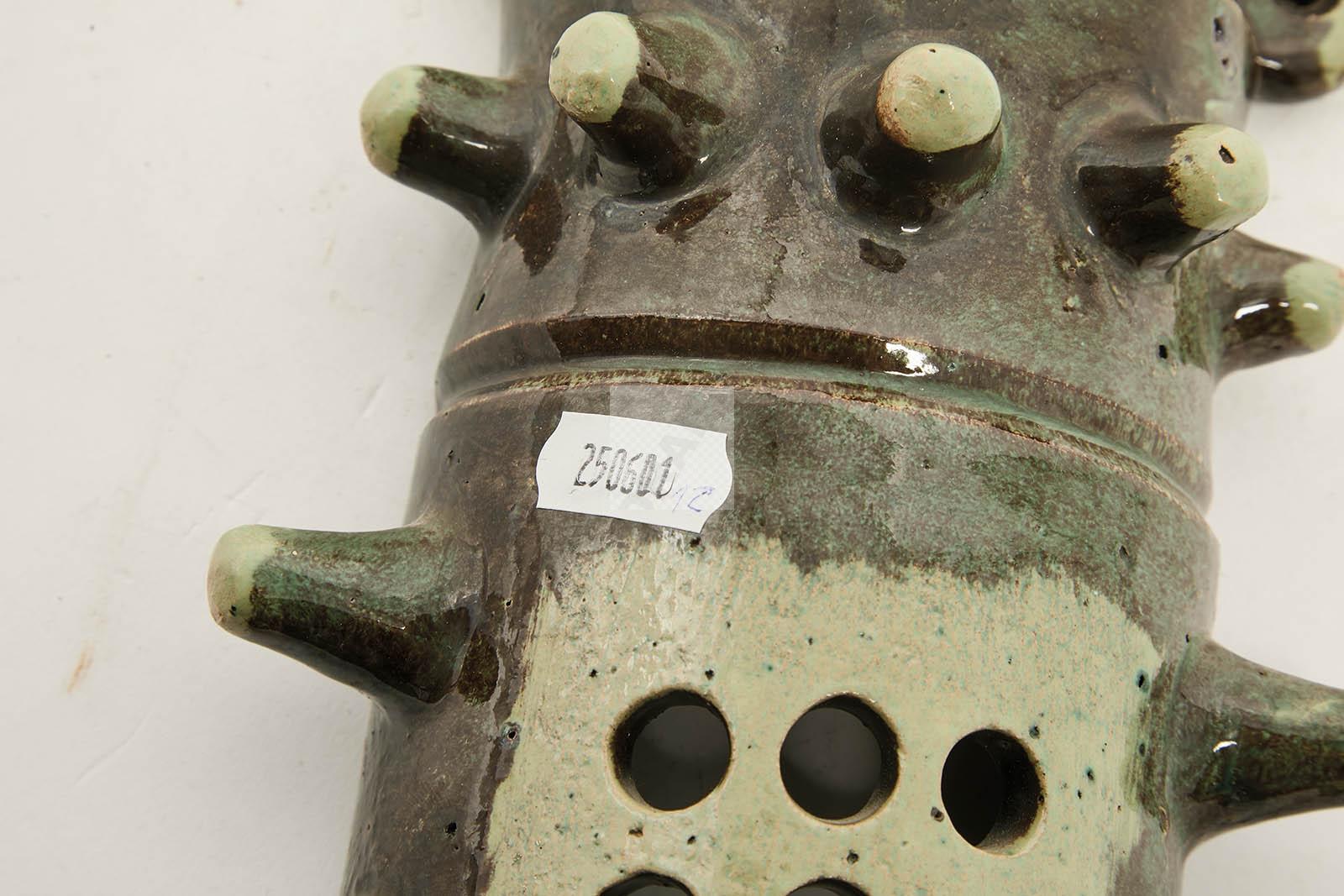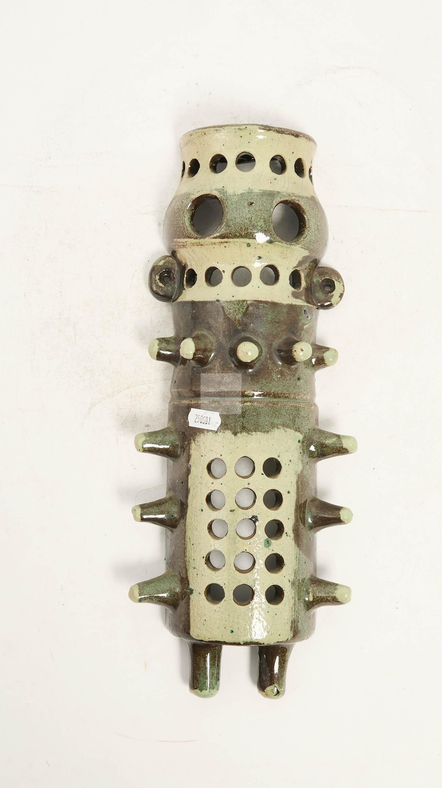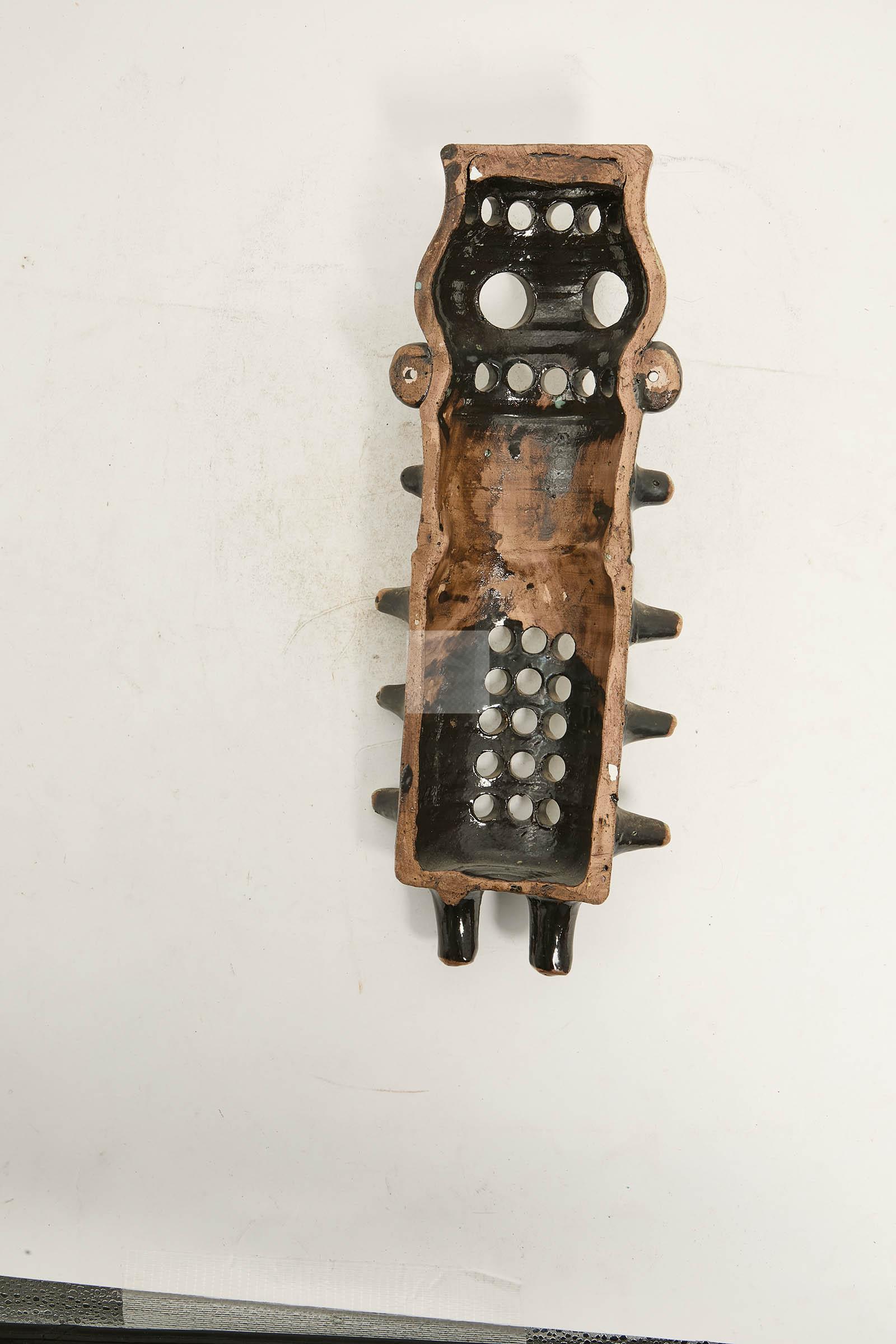 Sculpture murale en céramique émaillée et ajourée, formée de deux corps,