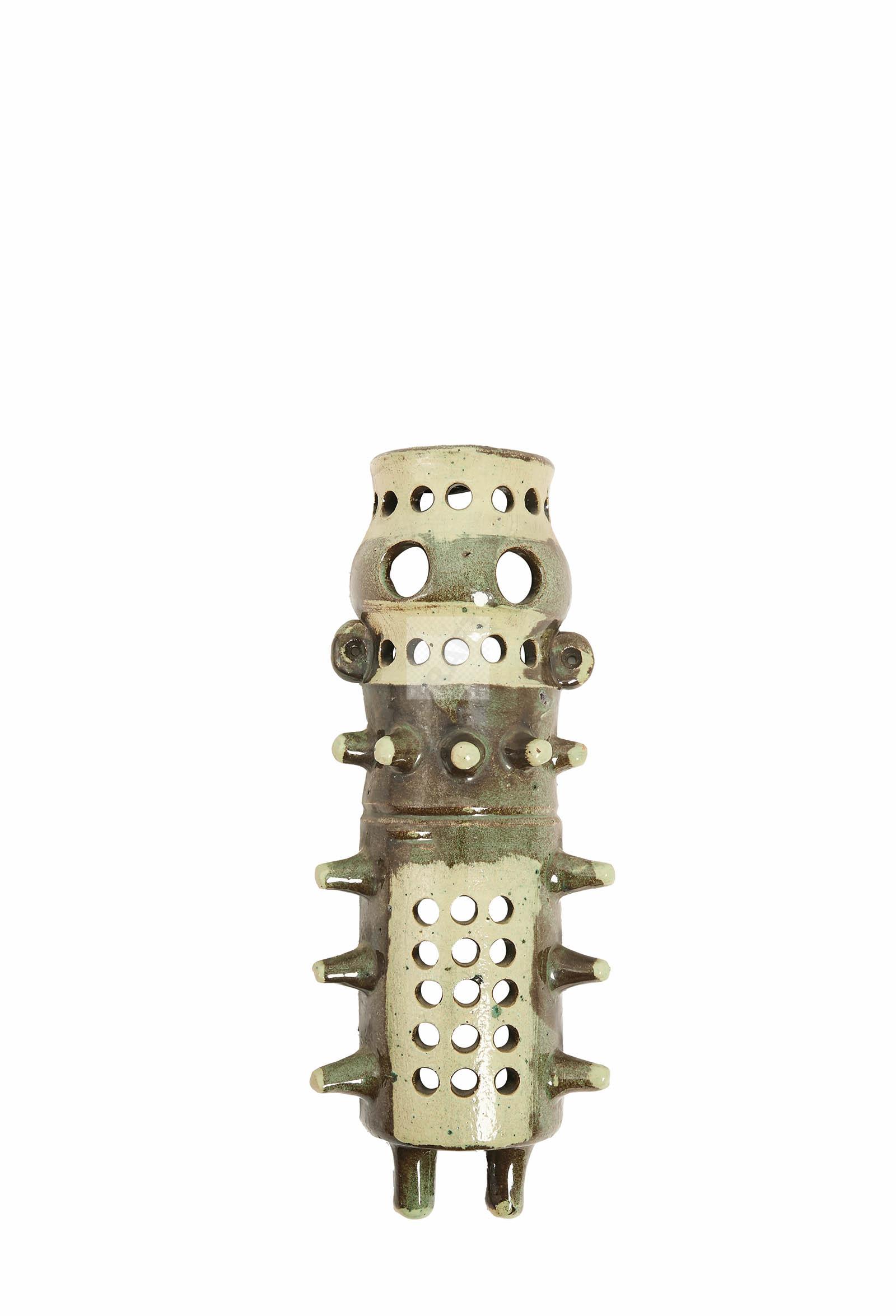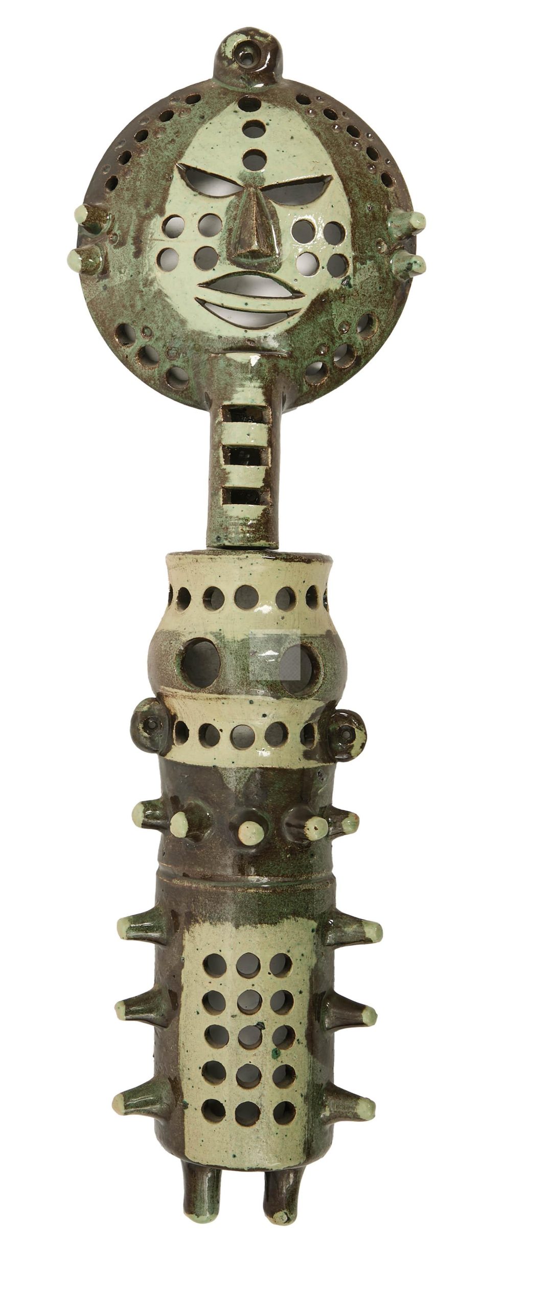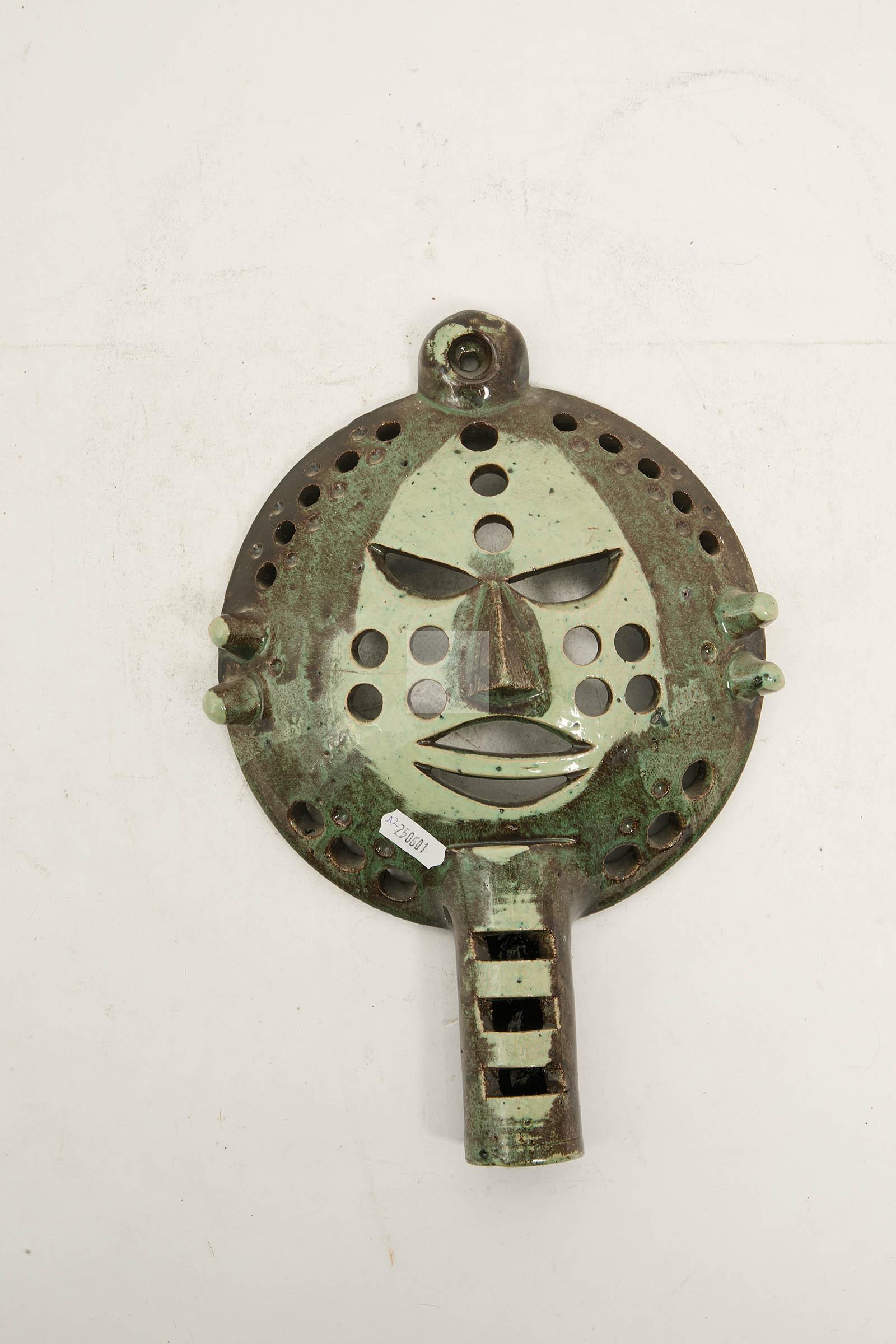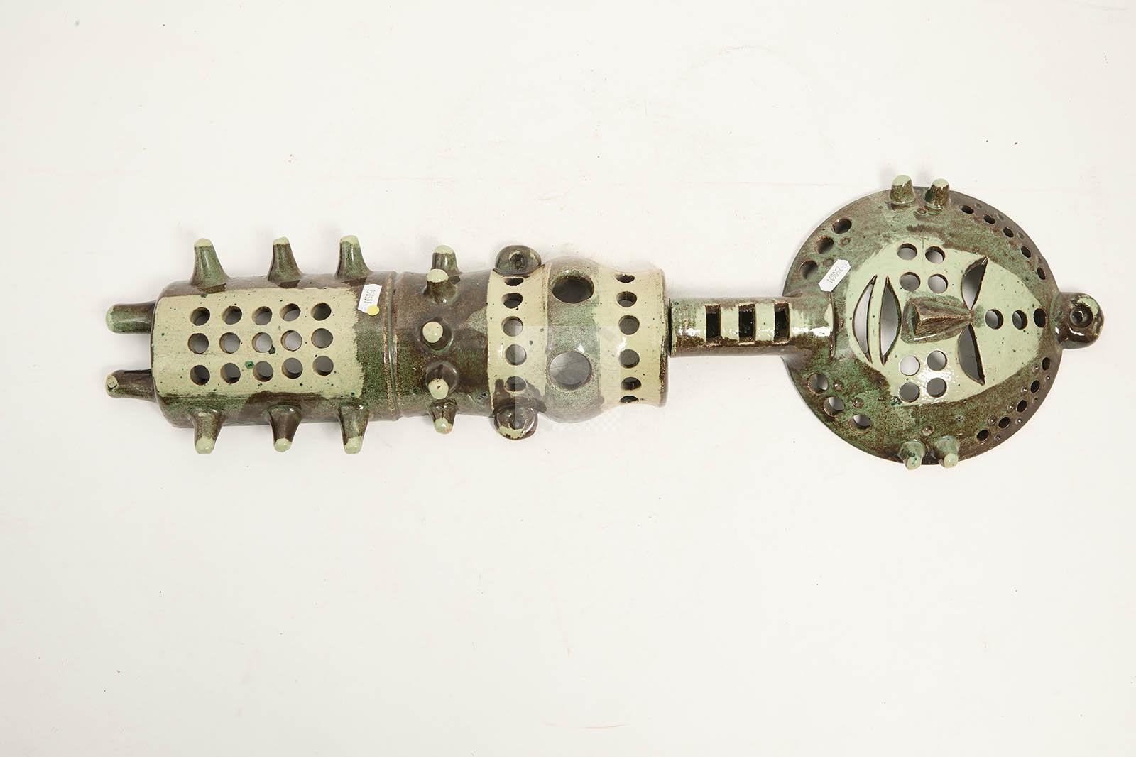 Sculpture murale en céramique émaillée et ajourée, formée de deux corps,