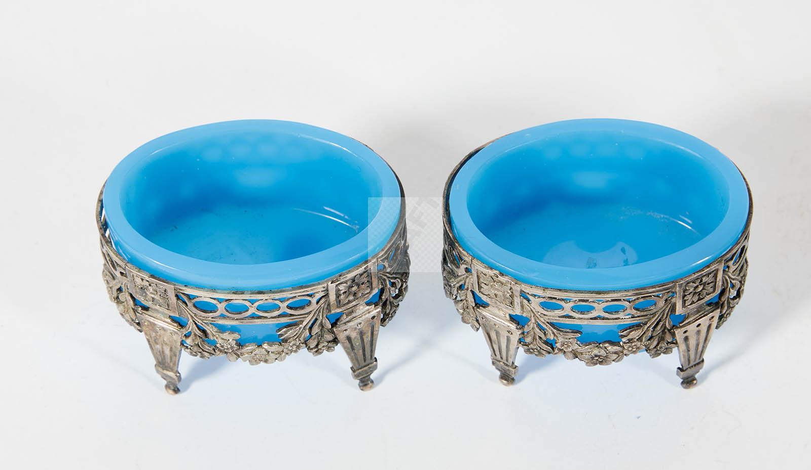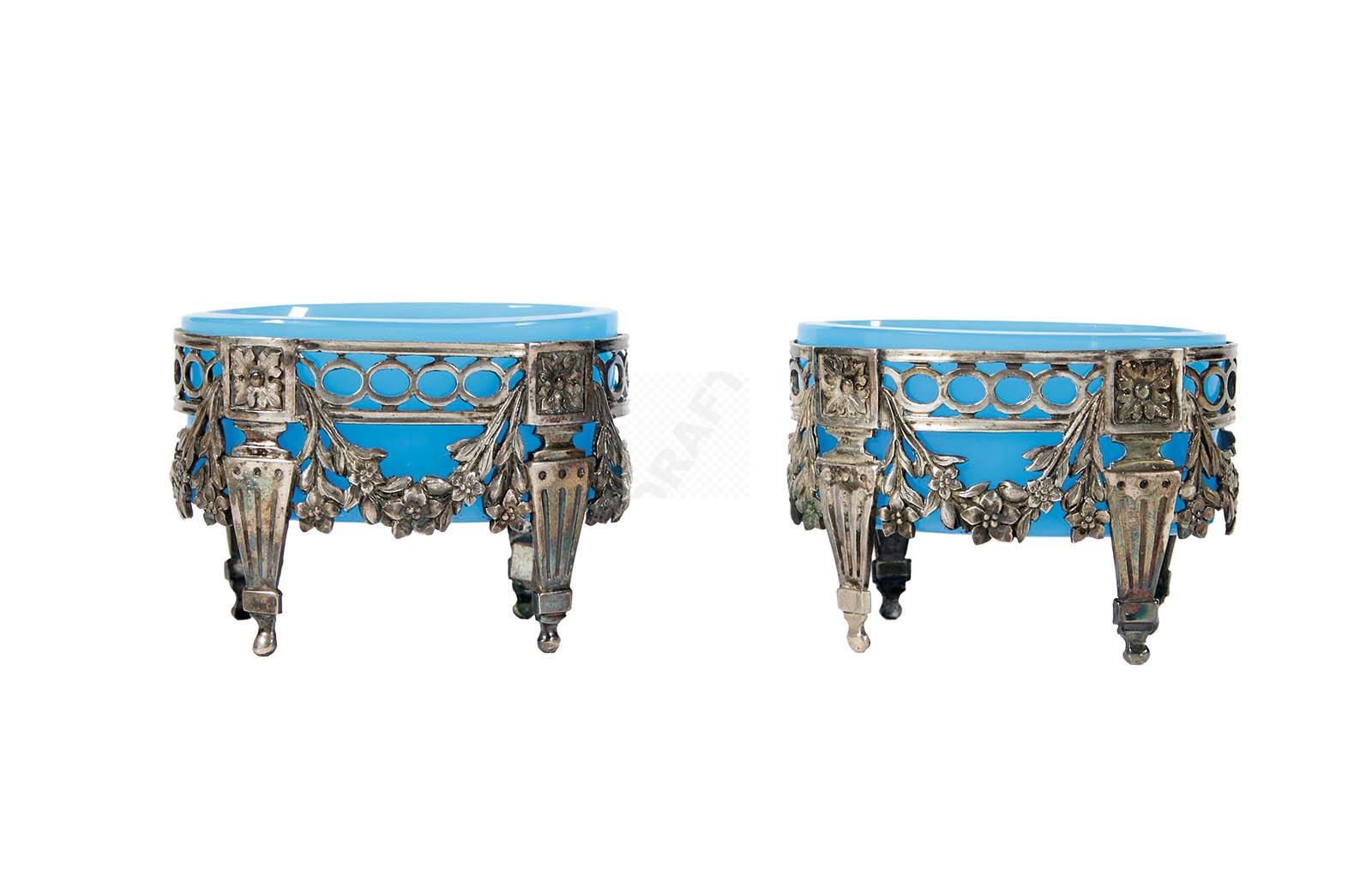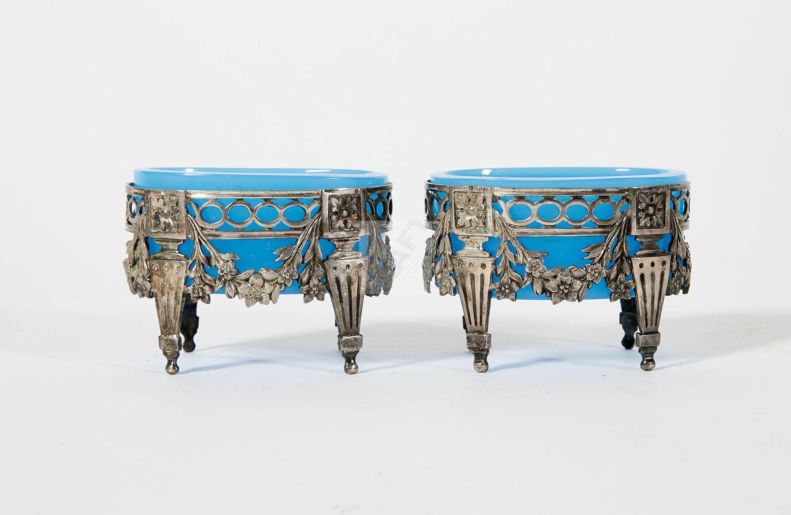 Lot n°3 - 3 Deux salières en argent à décor néo-classique