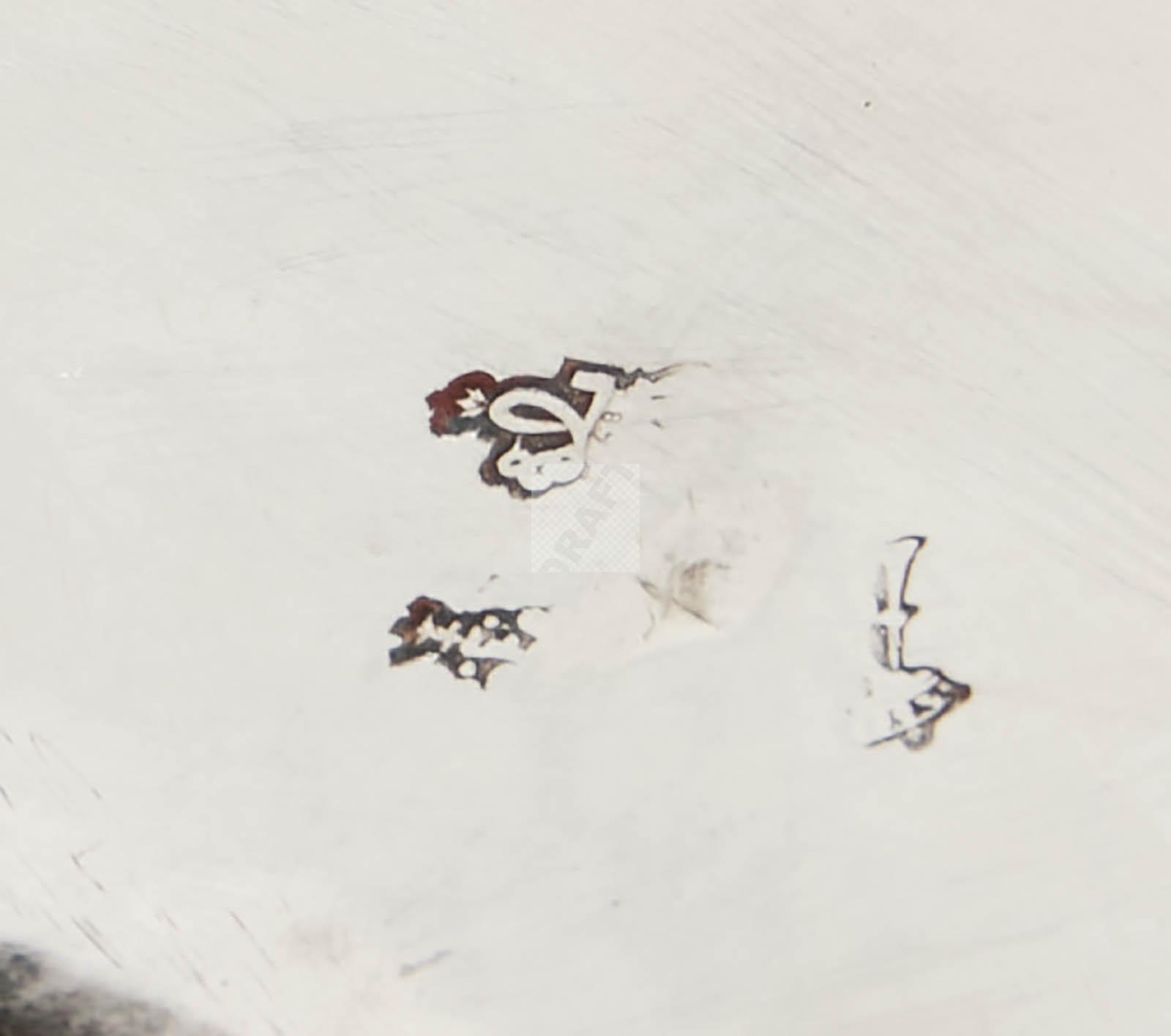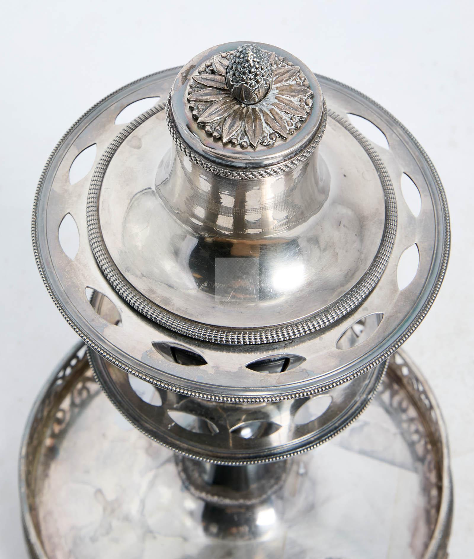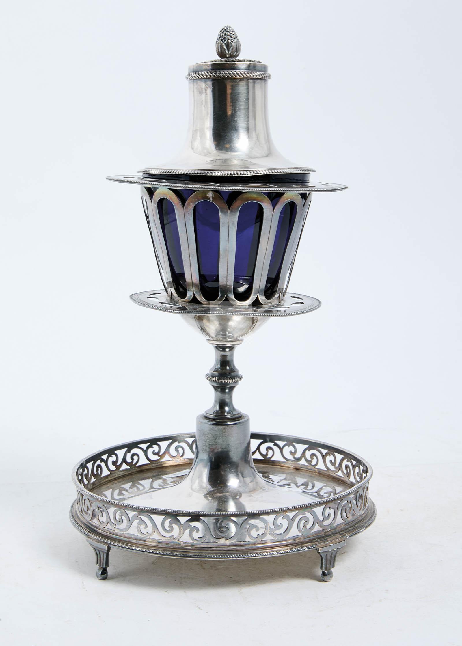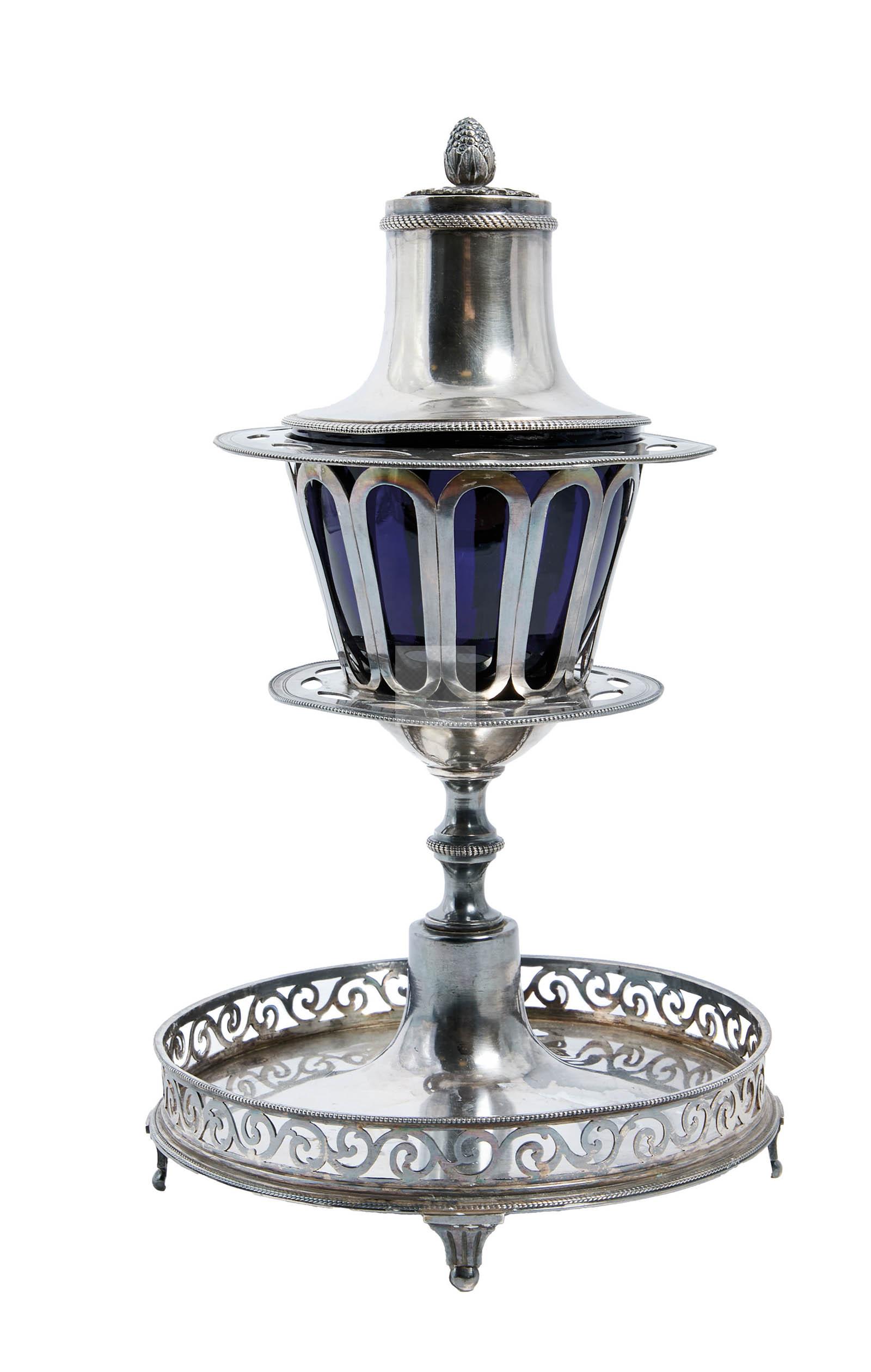 12 Confiturier en argent à décor de frises de perles, frises feuillagées et galerie ajourée à décor de rinceaux, prise à décor de graine