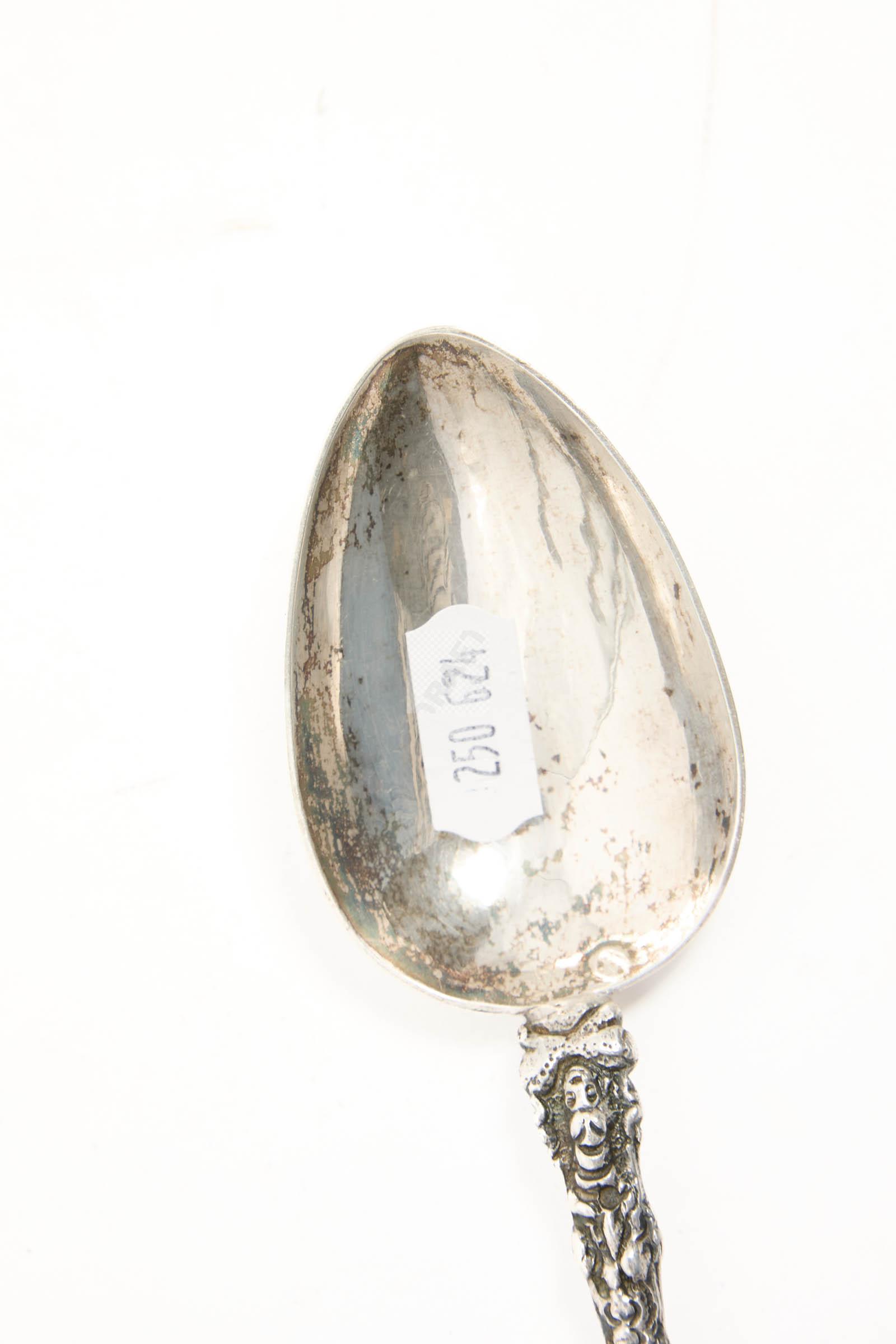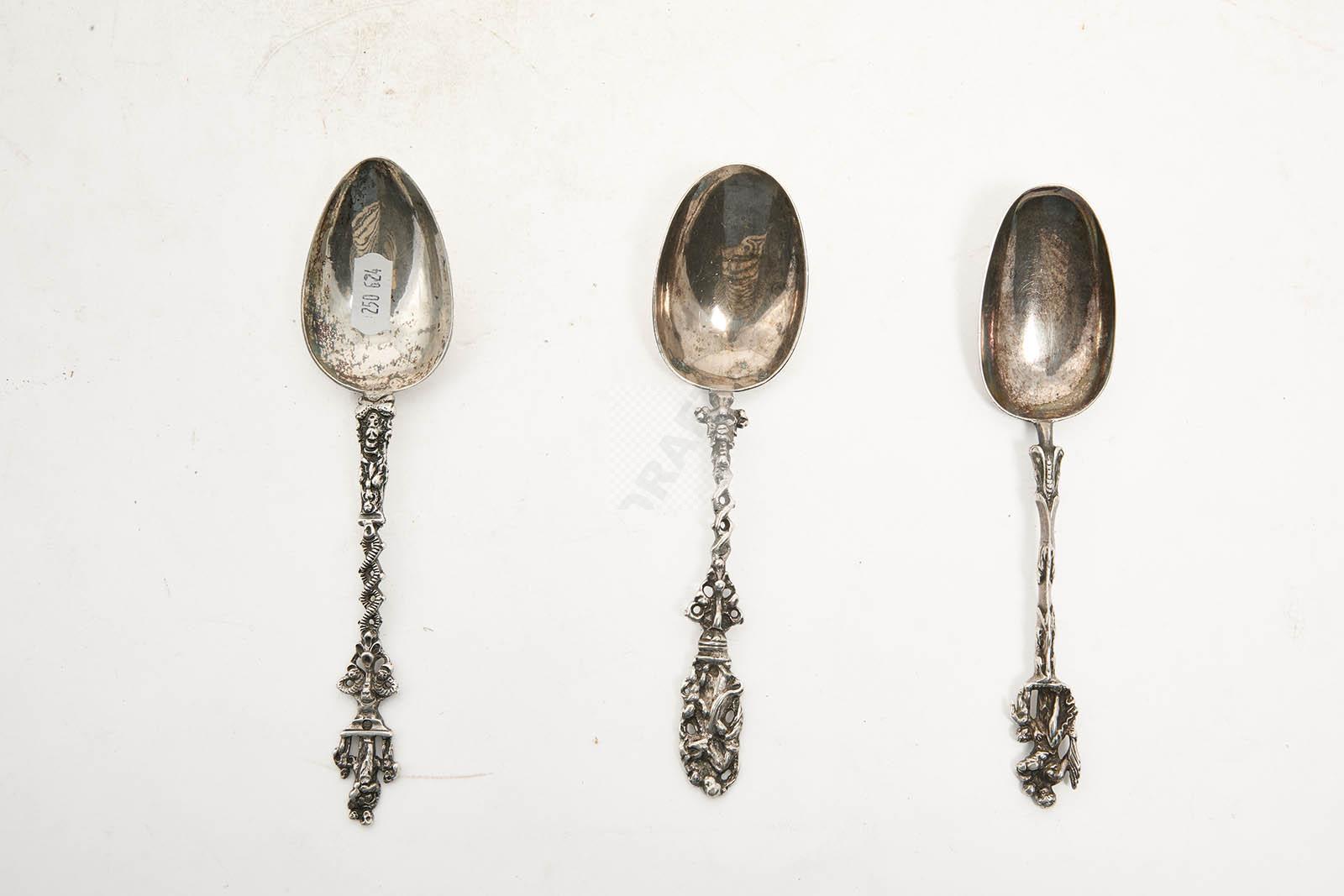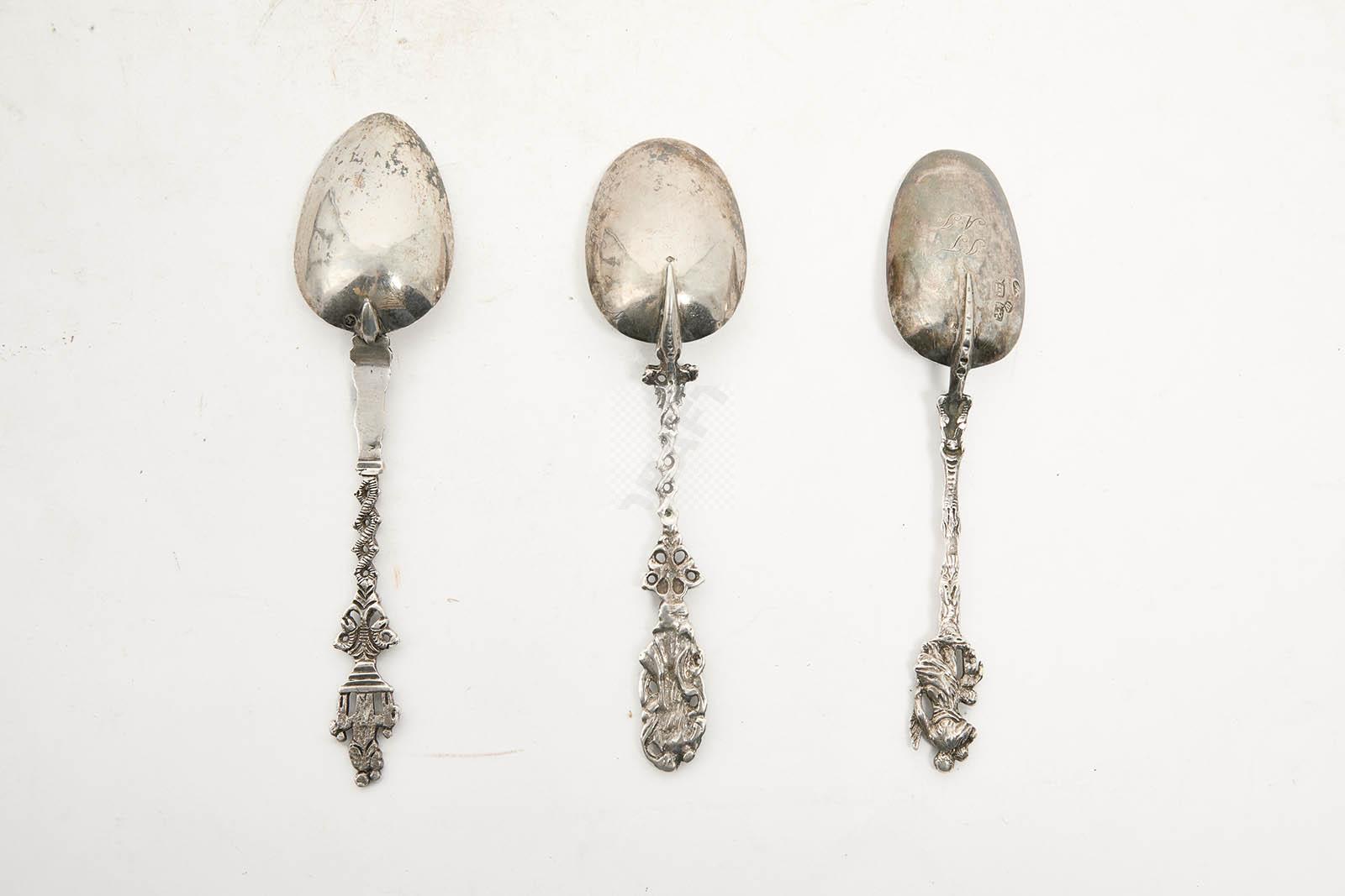 Lot n°19 - 19 Trois cuillères en argent, les manches à décor de Saints personnages et motif