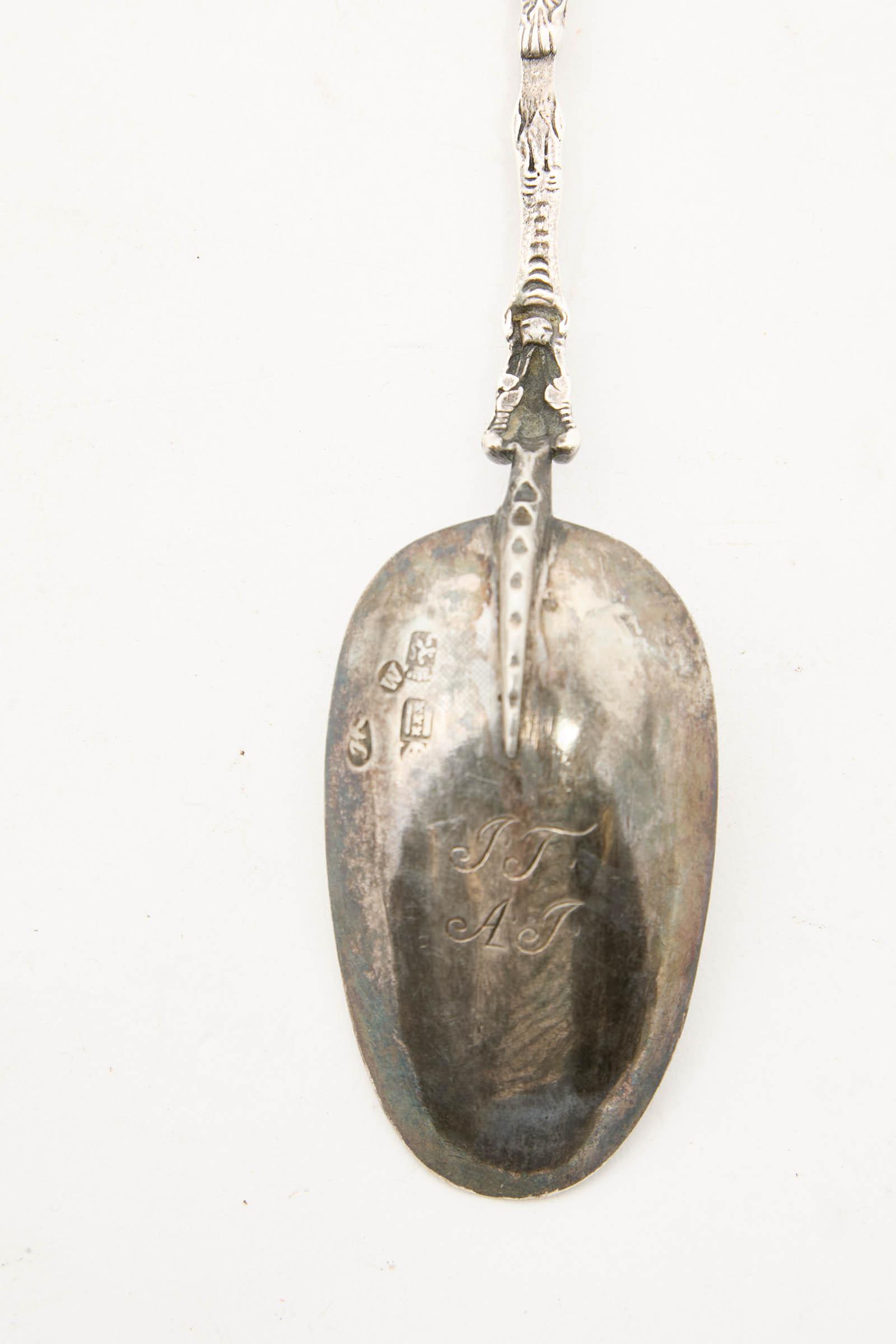 19 Trois cuillères en argent, les manches à décor de Saints personnages et motifs stylisés