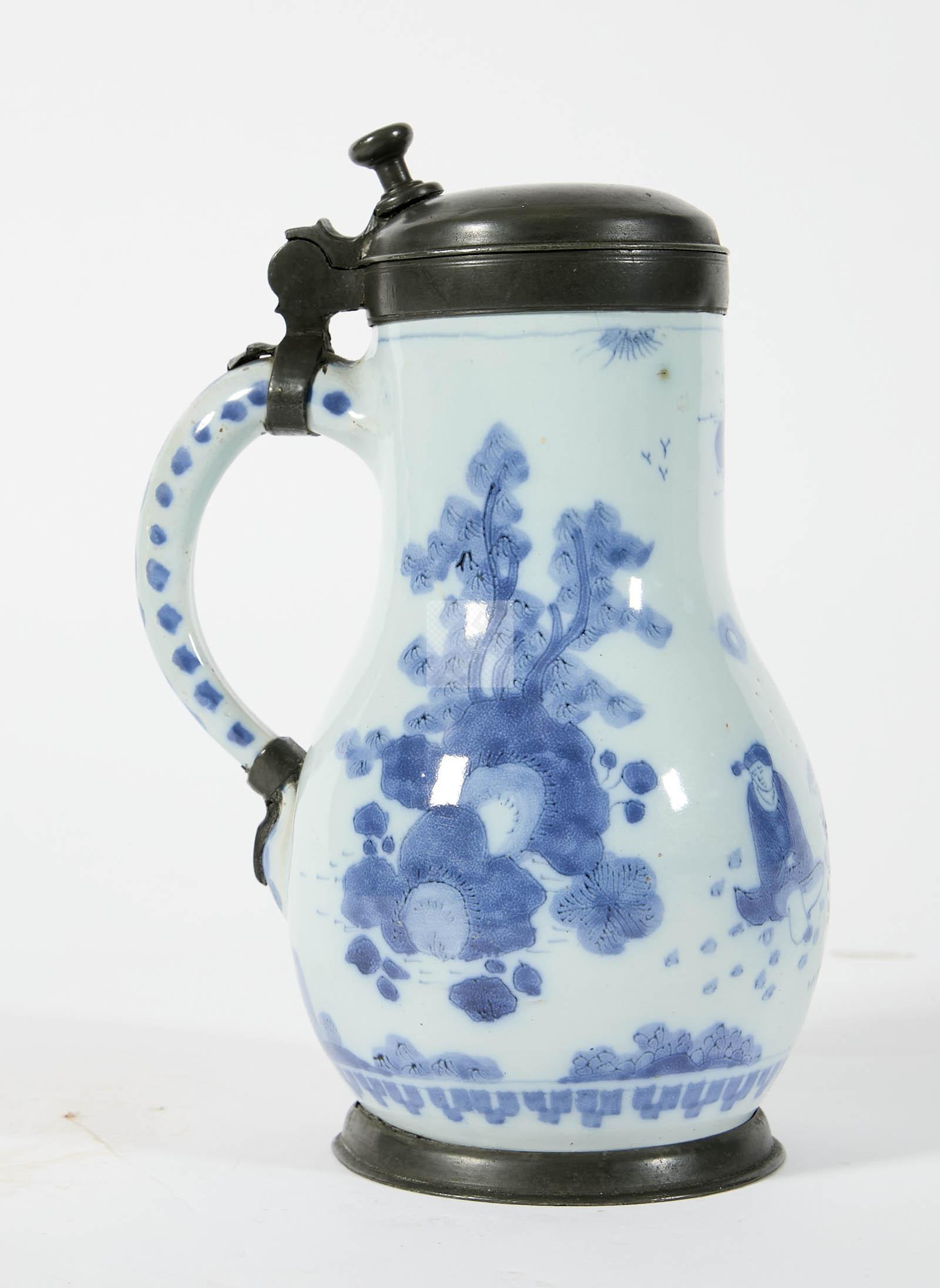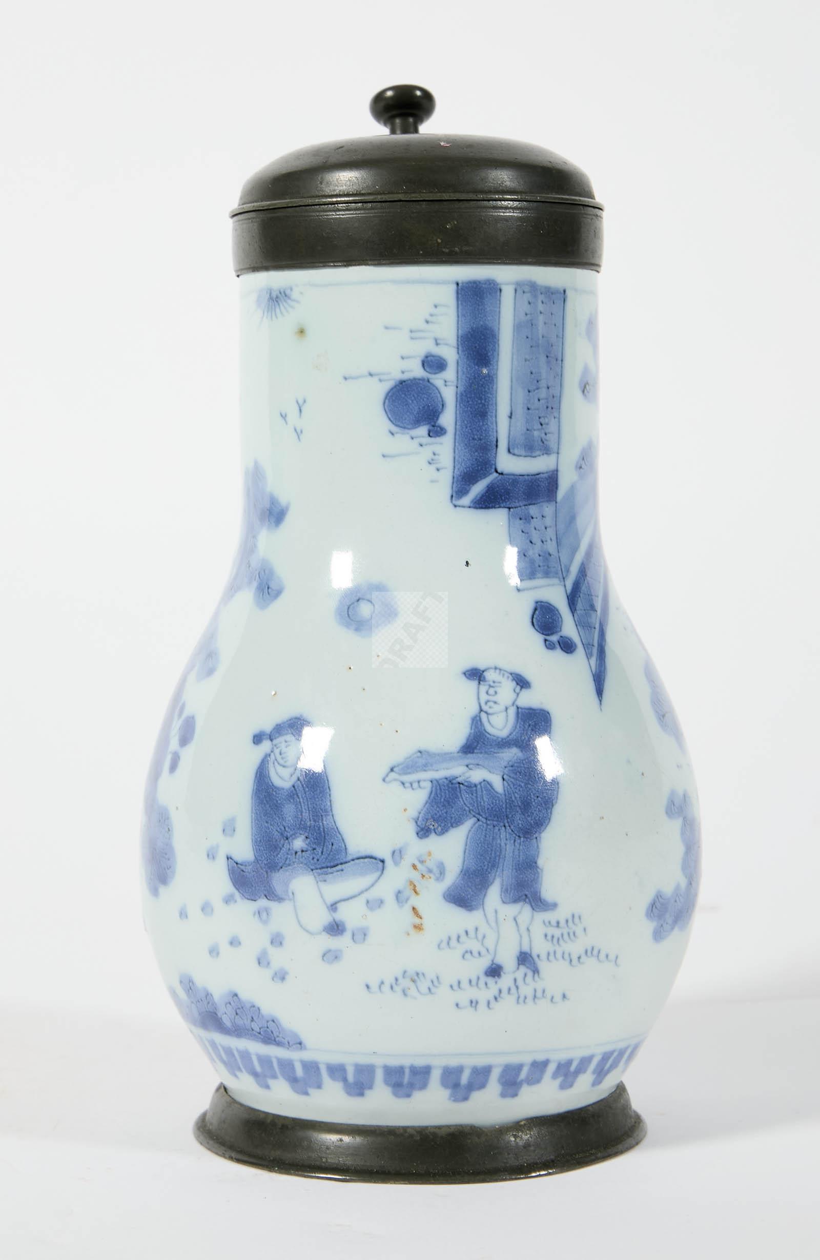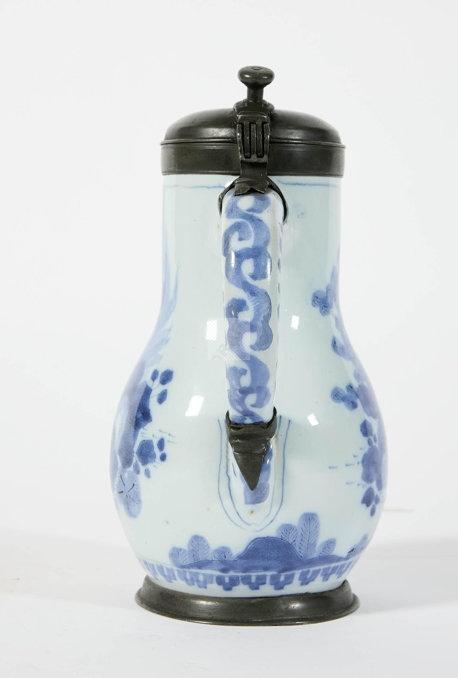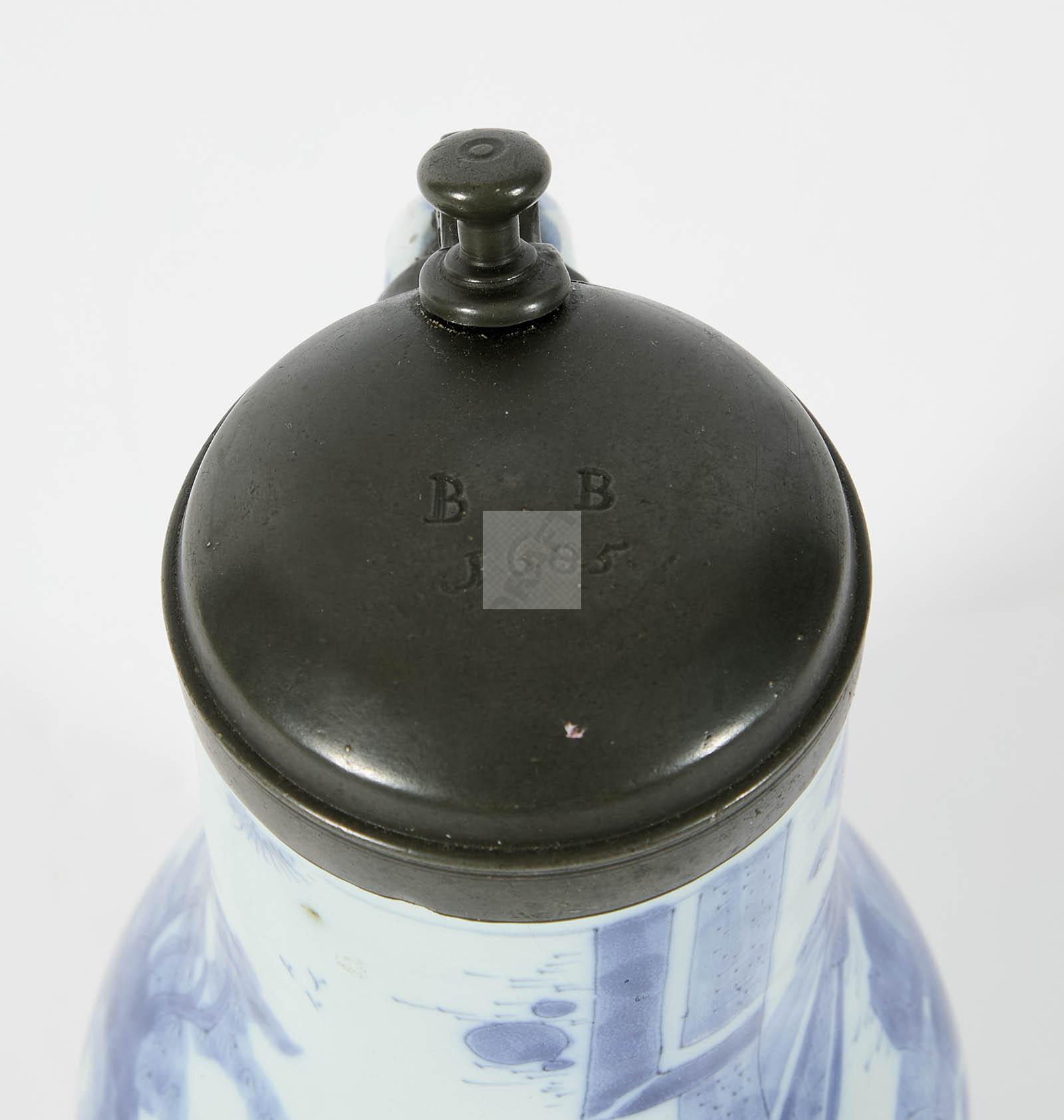 Lot n°34 - 34 Delft : pichet en faïence stannifère à décor de chinois. Monture en étain dat