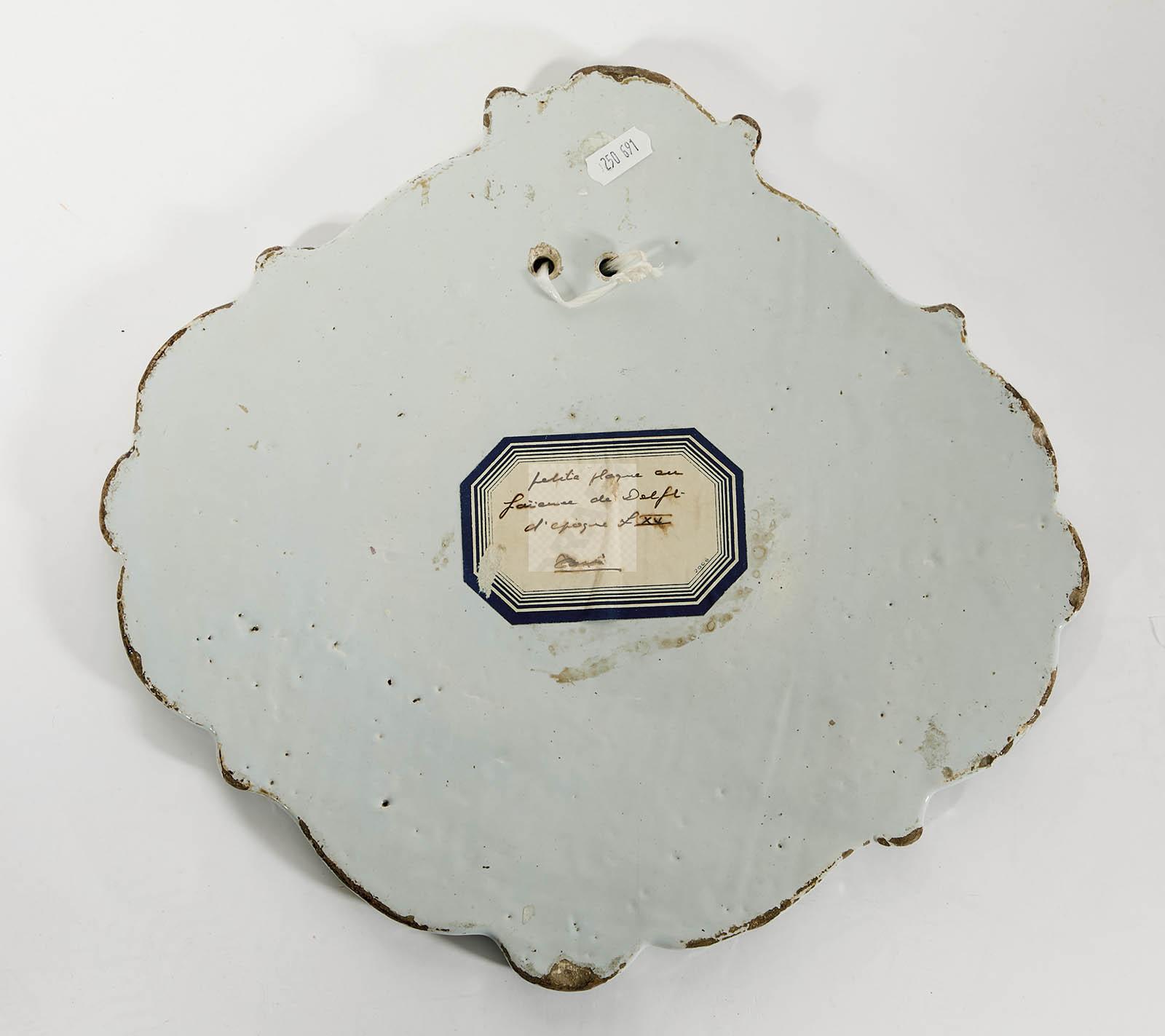Lot n°39 - 39 Delft : Plaque en faïence stannifère polychrome. Scène de