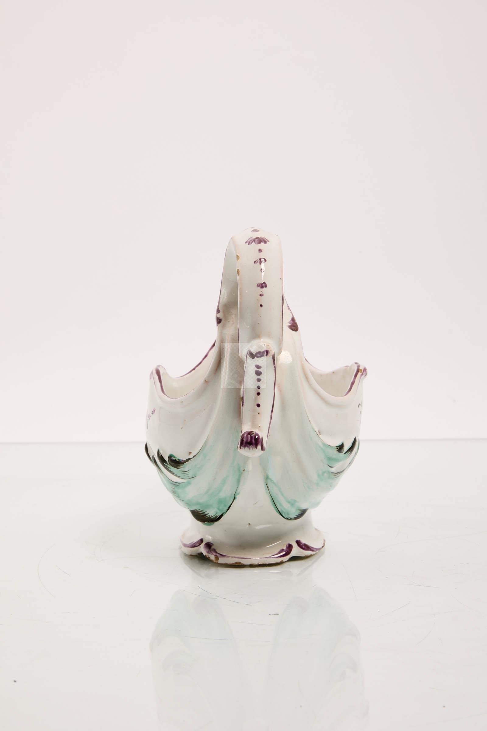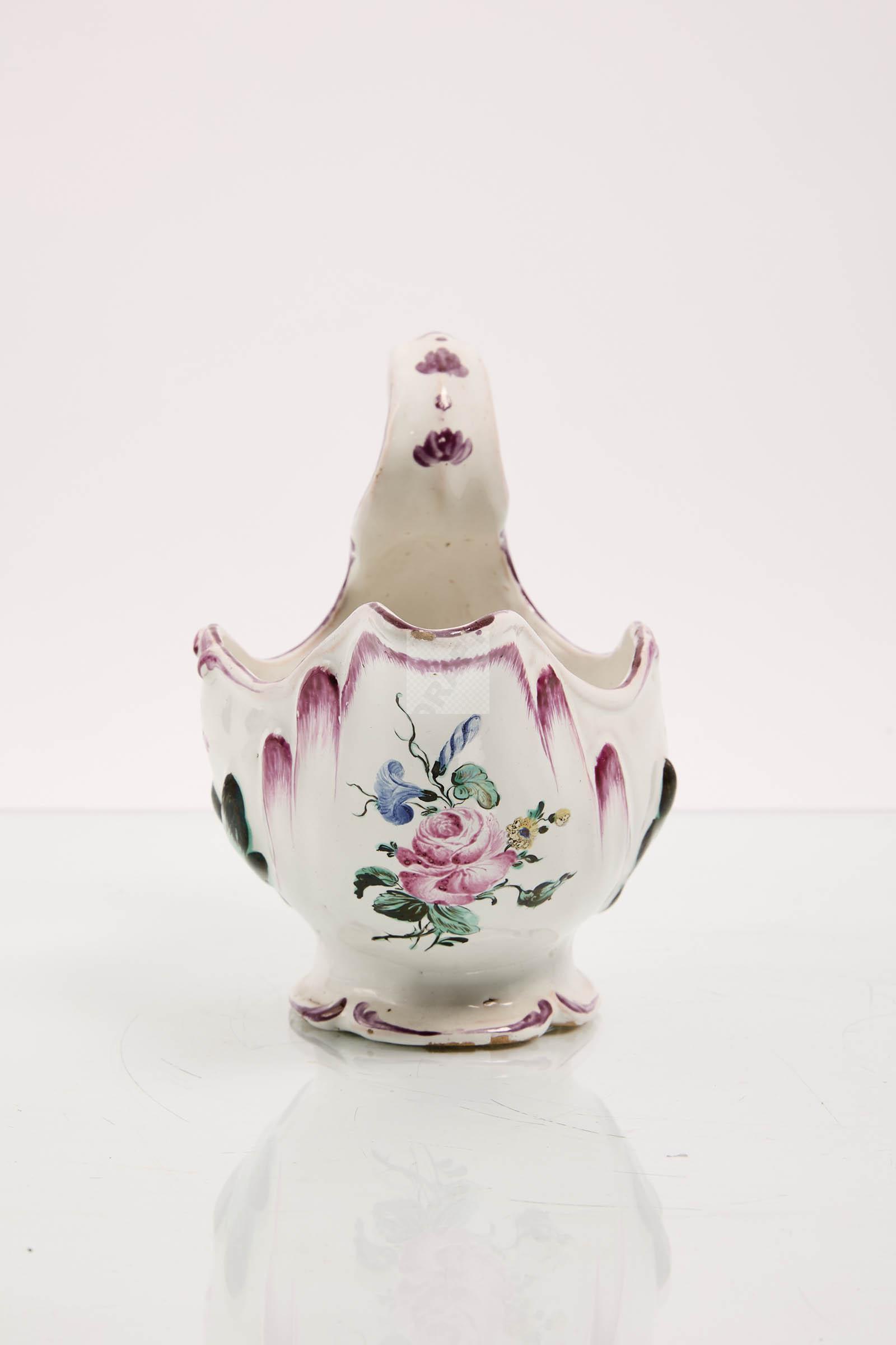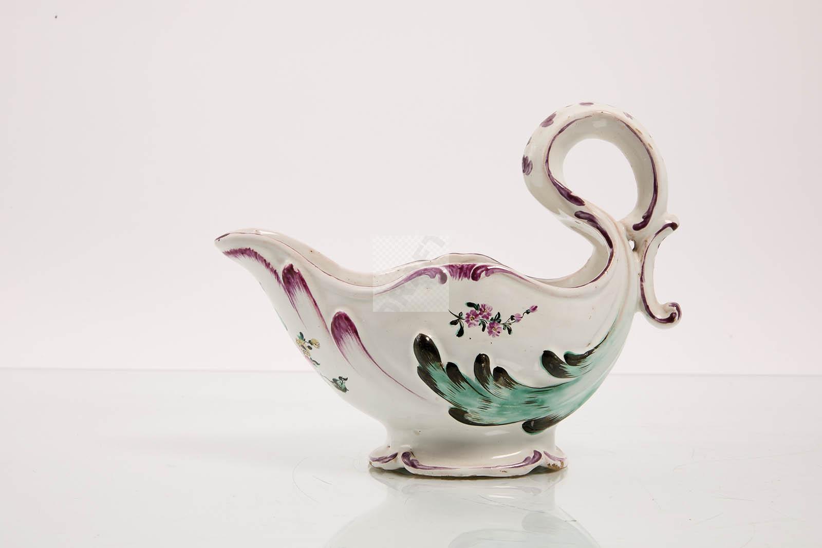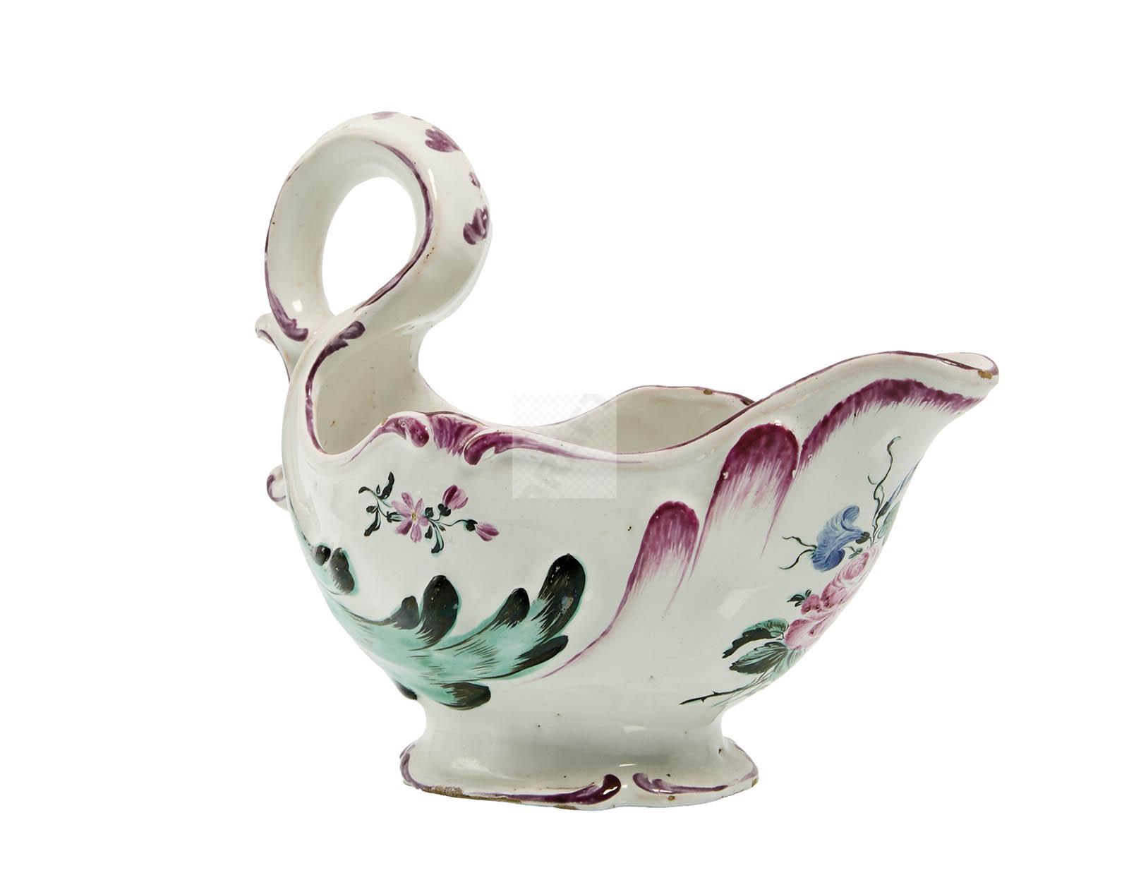 Lot n°51 - 51 Aprey : saucière en faïence stannifère à décor polychrome de fleurs. Belle ma