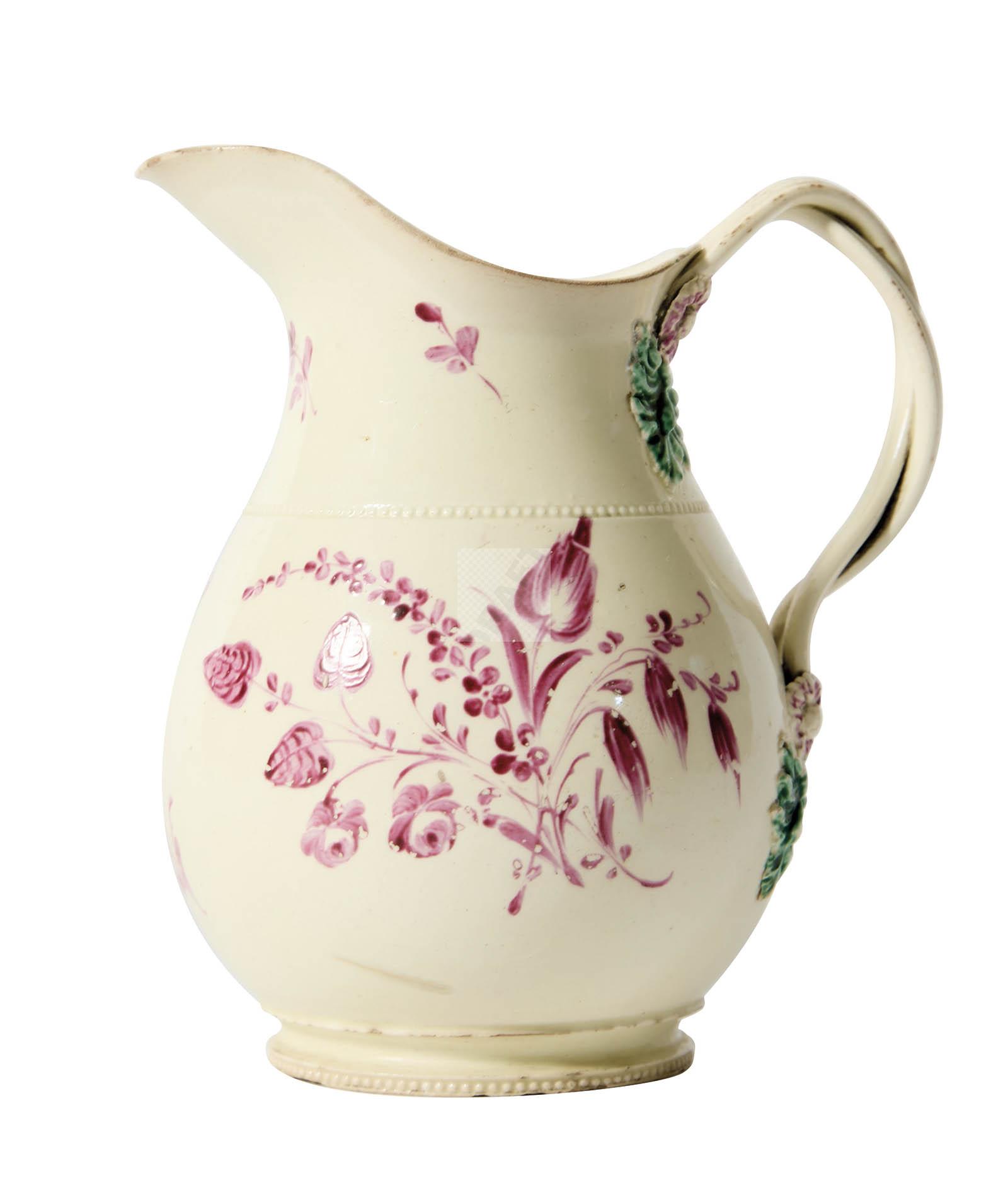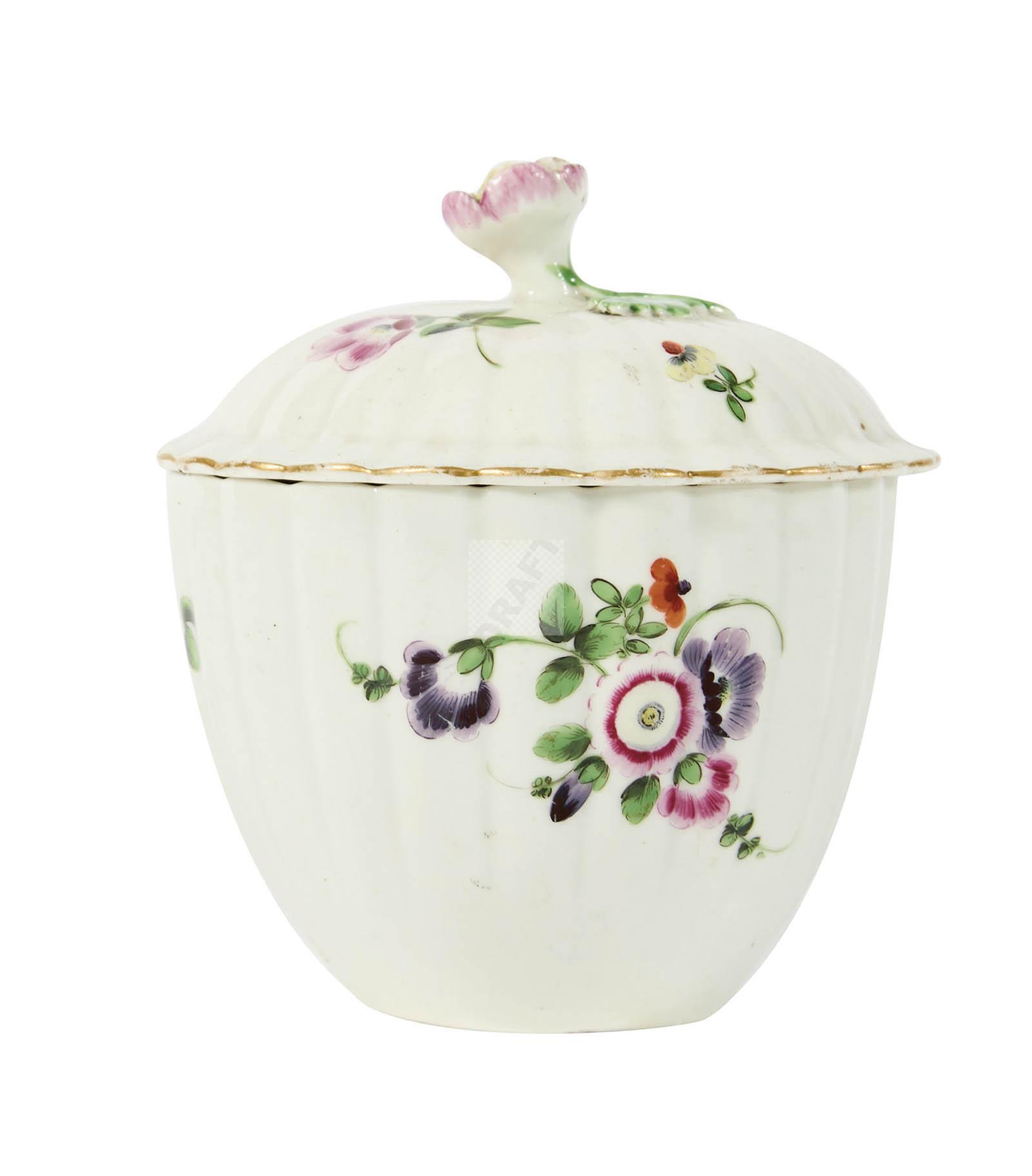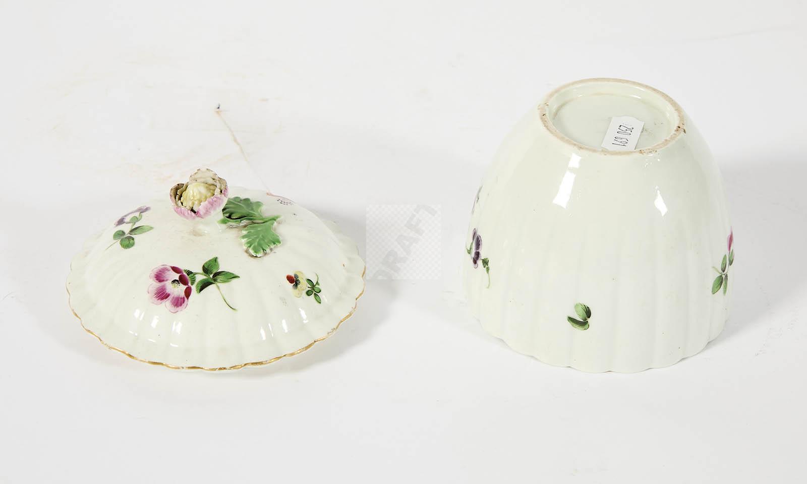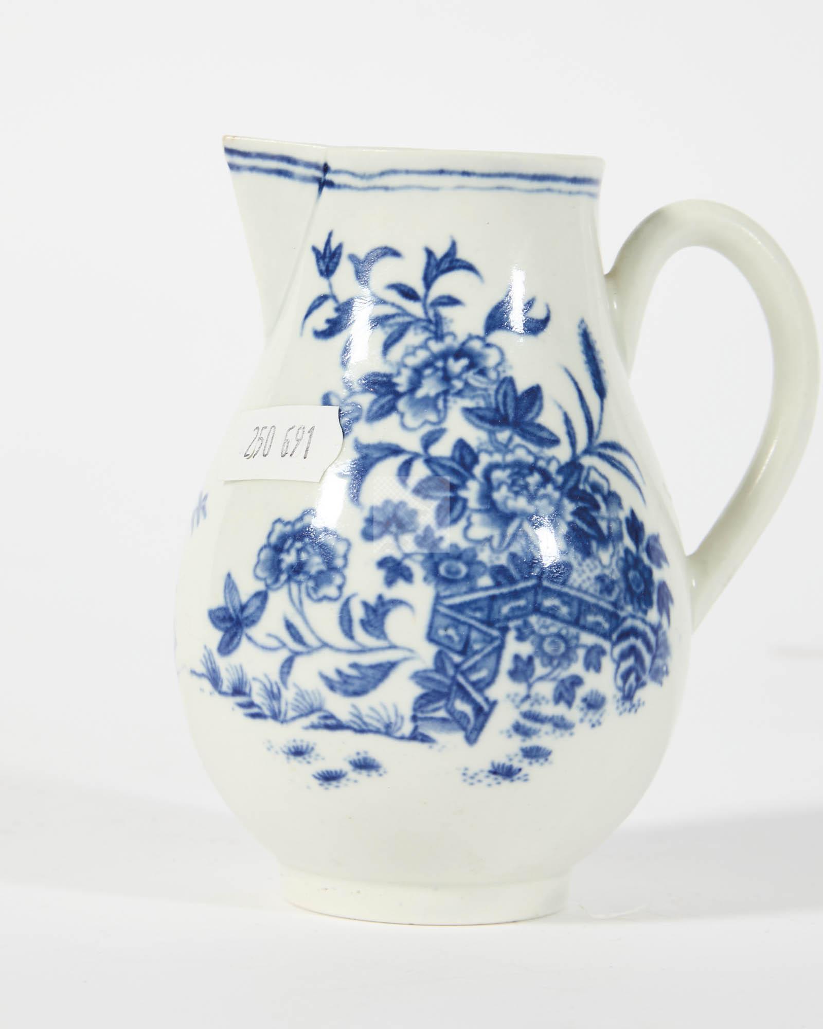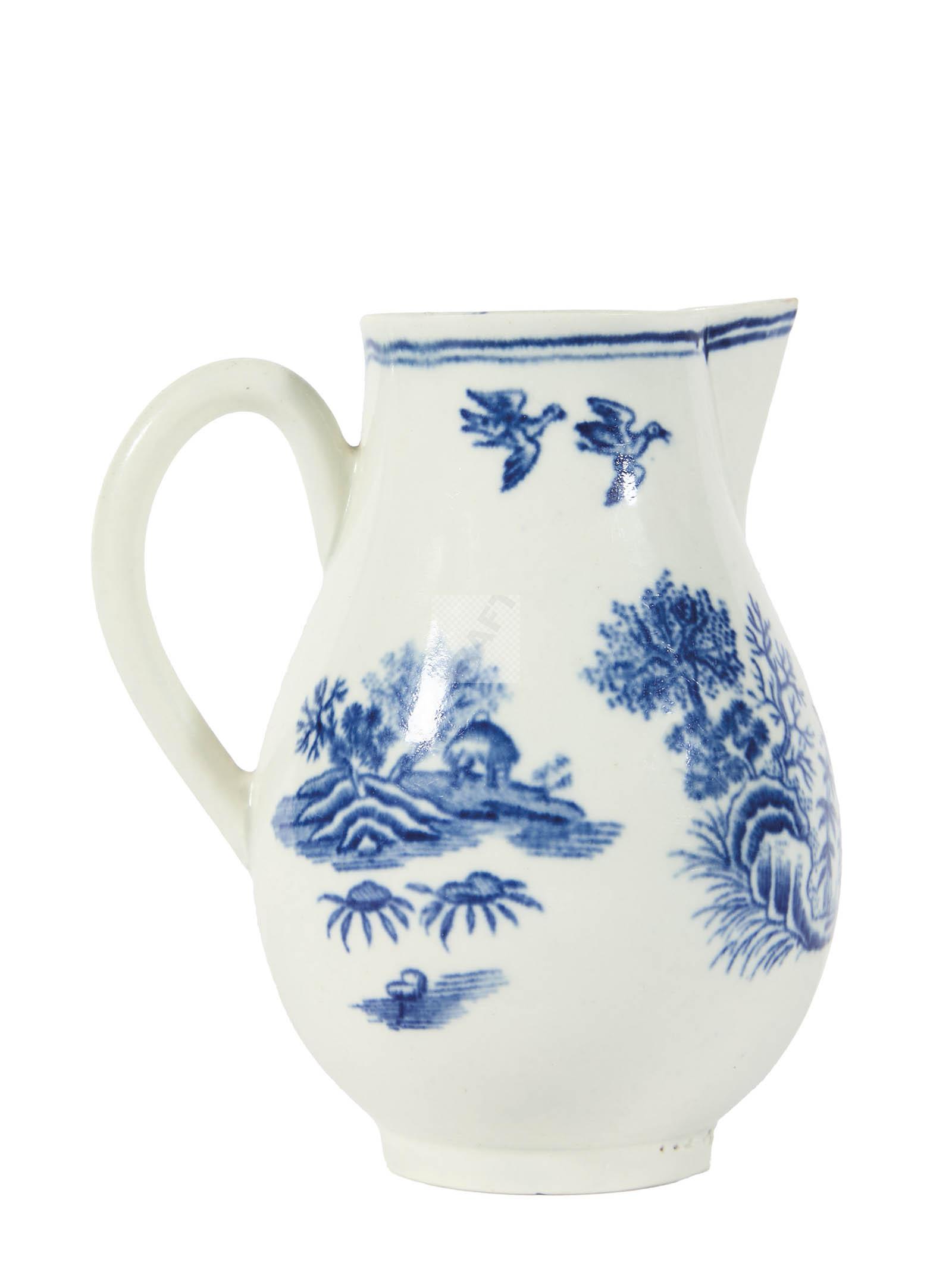 73 Lot de porcelaine anglaise : un compotier rond à décor de chinois en Salopian, un sucrier couvert en Worcester, et deux verseuses anglaises. Epoque : deuxième moitié du 18ème .