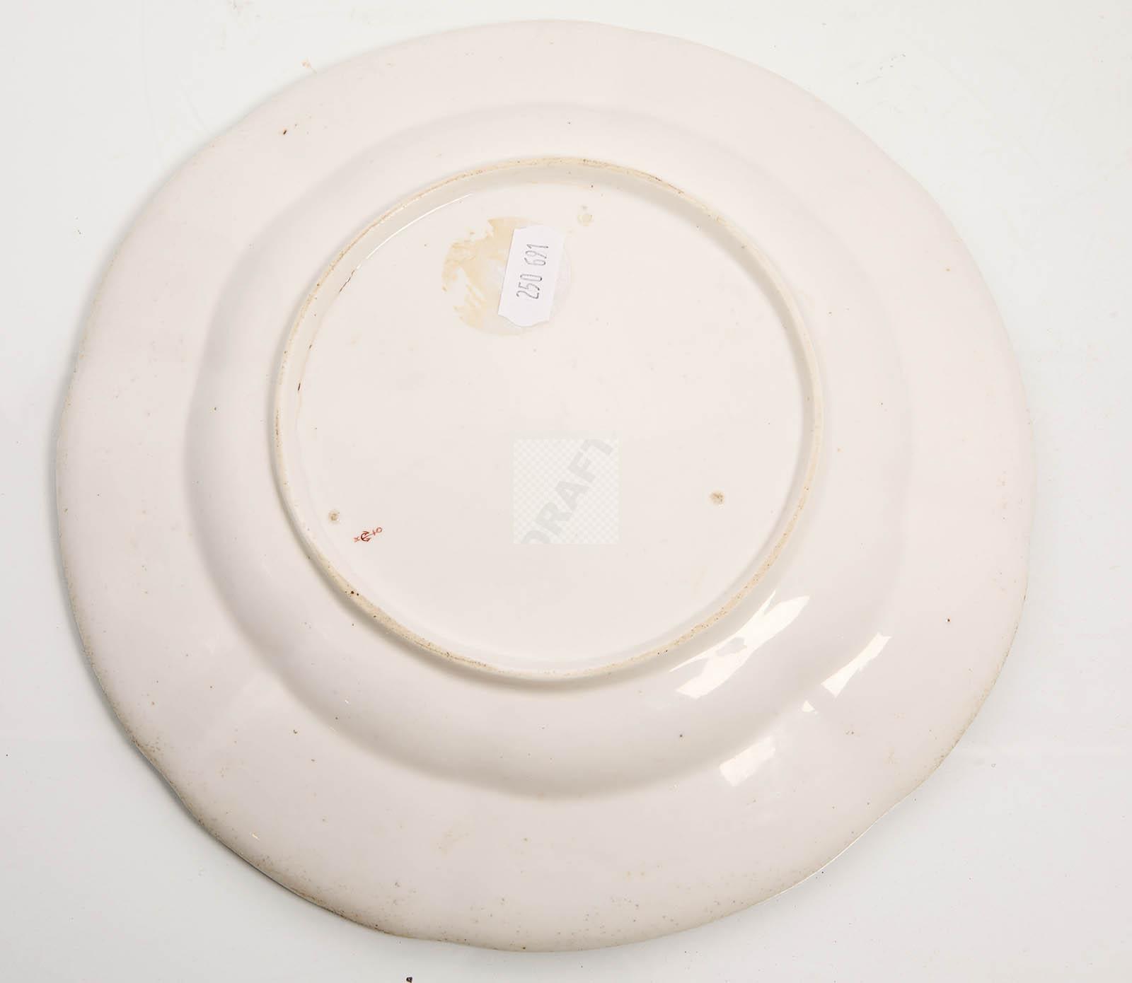 74 Chelsea (Angleterre): une assiette en porcelaine tendre à décor floral peint en qualité fine. Marque à l’ancre de marine au revers. Epoque : 1753-1757. Etat : bon. Diam : 23.5 cm