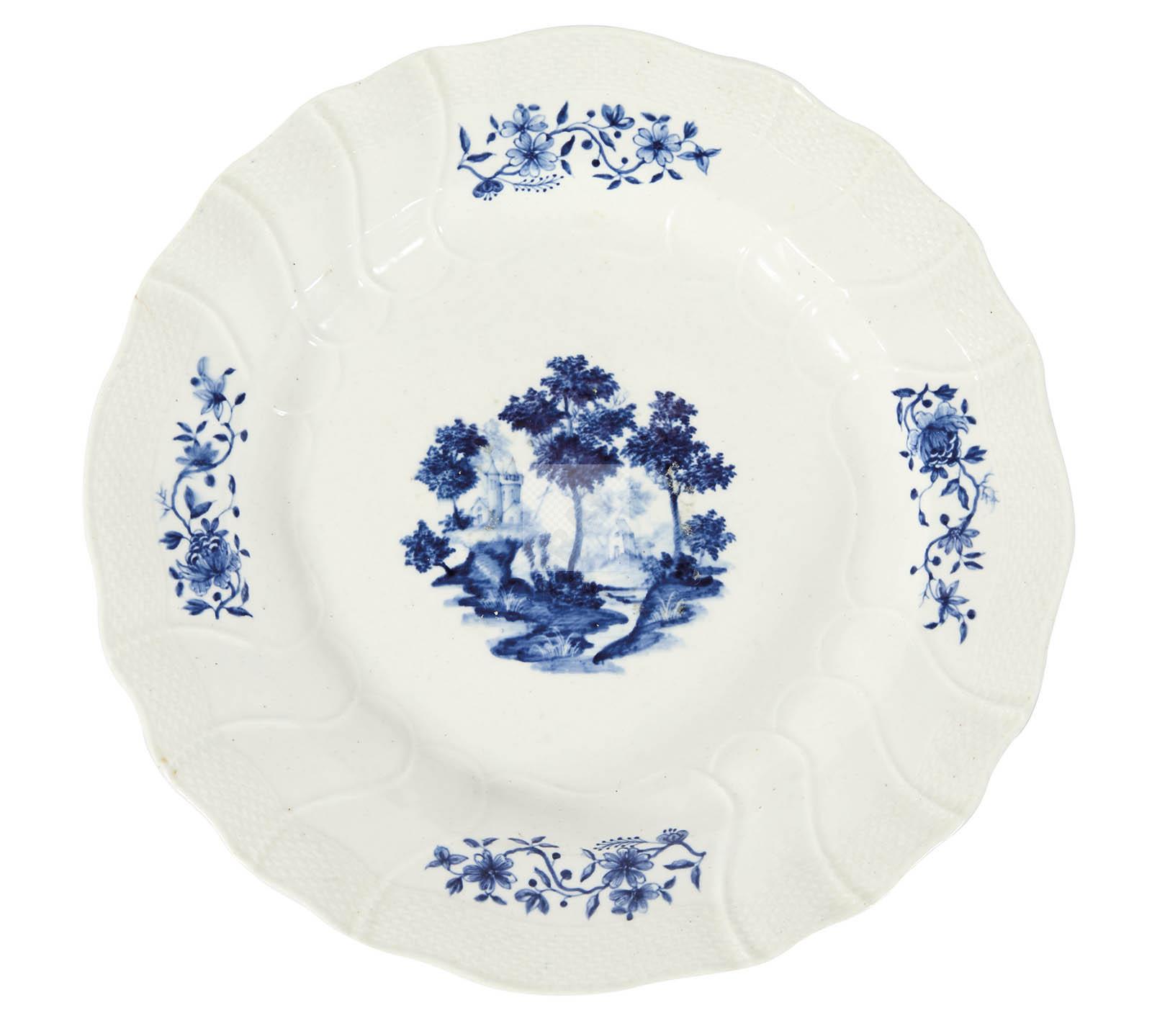 Un plat à décor dit au paysage hollandais. 1ère période circa 1755. Diam : 30.5 cm.