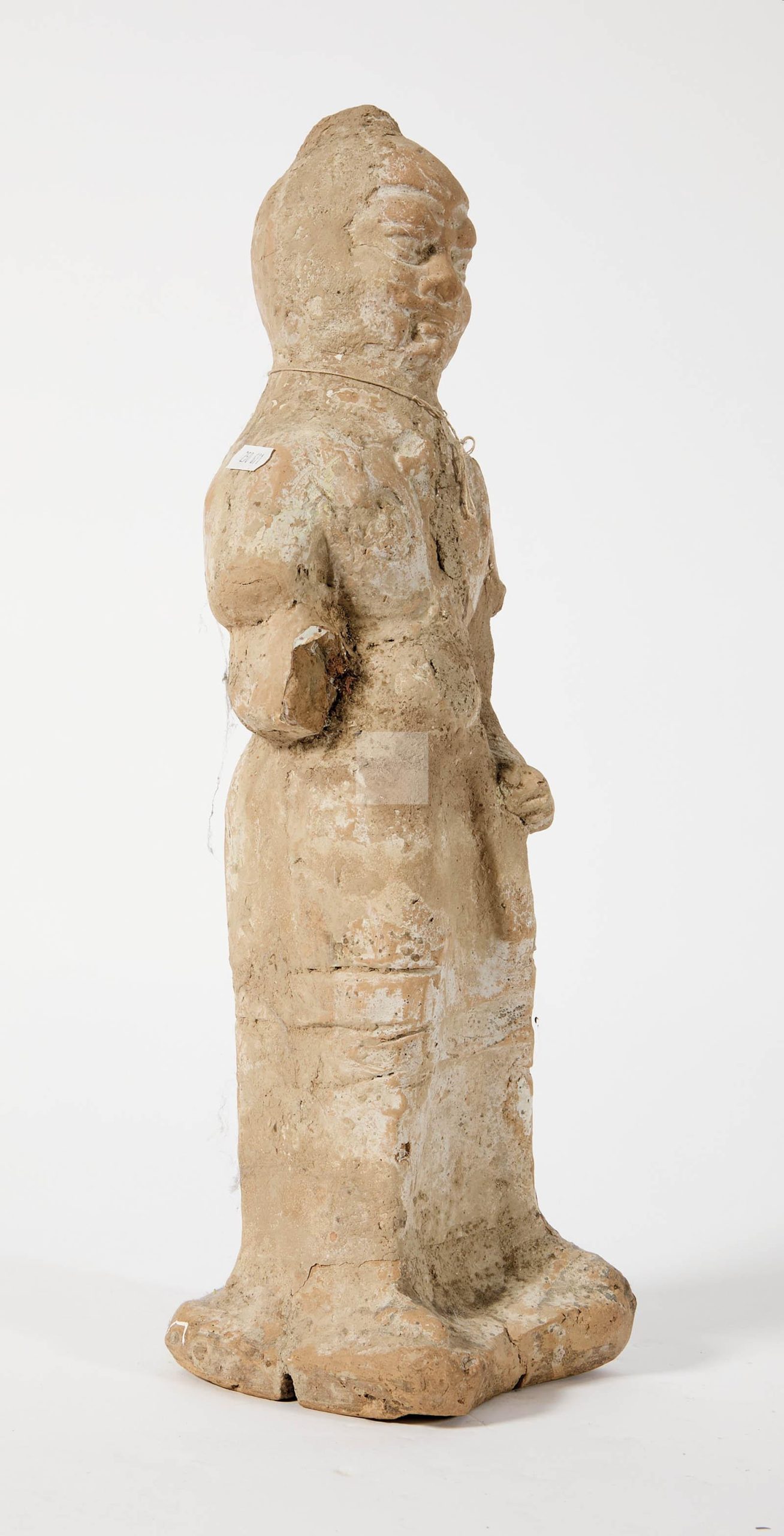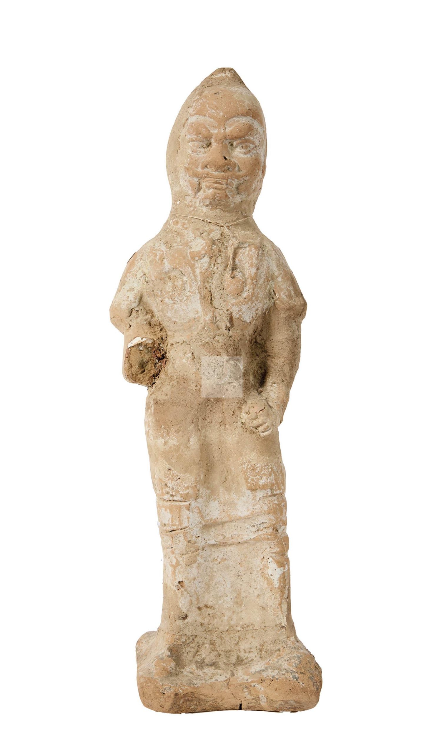 Lot n°100 - 100 Chine : Gardien de tombe en terre-cuite. Chine, Epoque Tang (618-907). Accid
