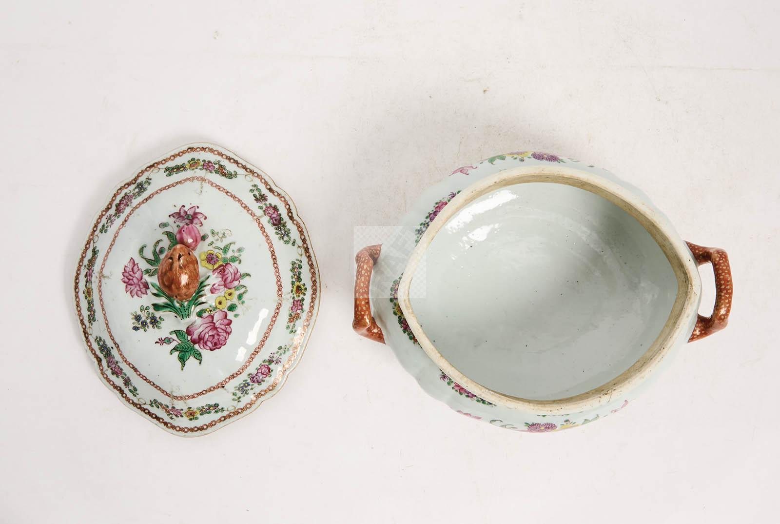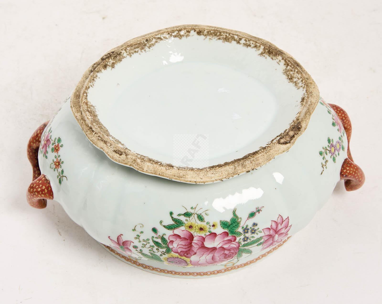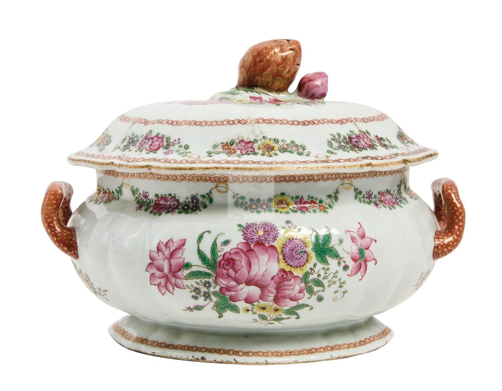 Terrine à larges côtes en porcelaine polychrome à décor de jeté de fleurs et guirlandes fleuris. Epoque : Qianlong (1736-1795)