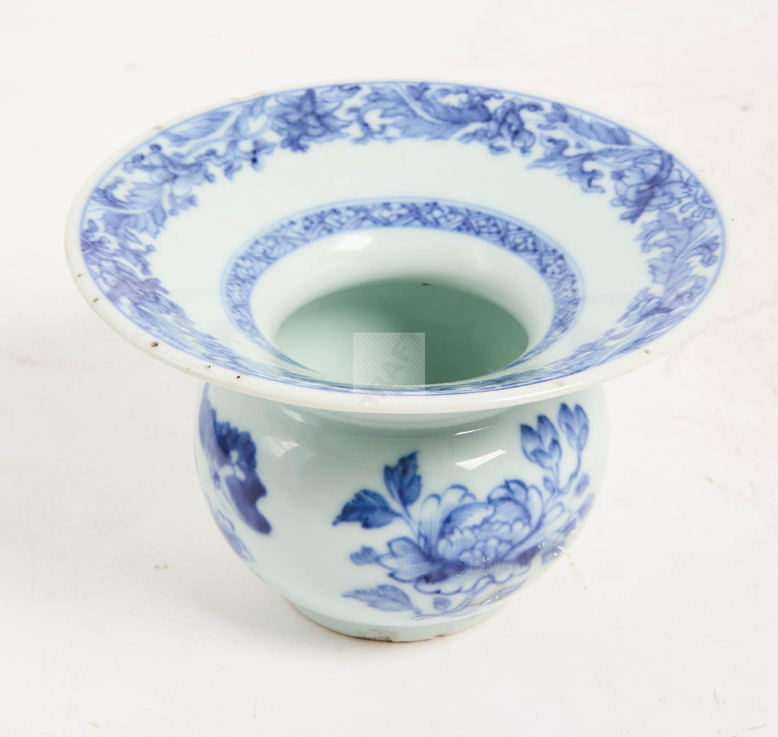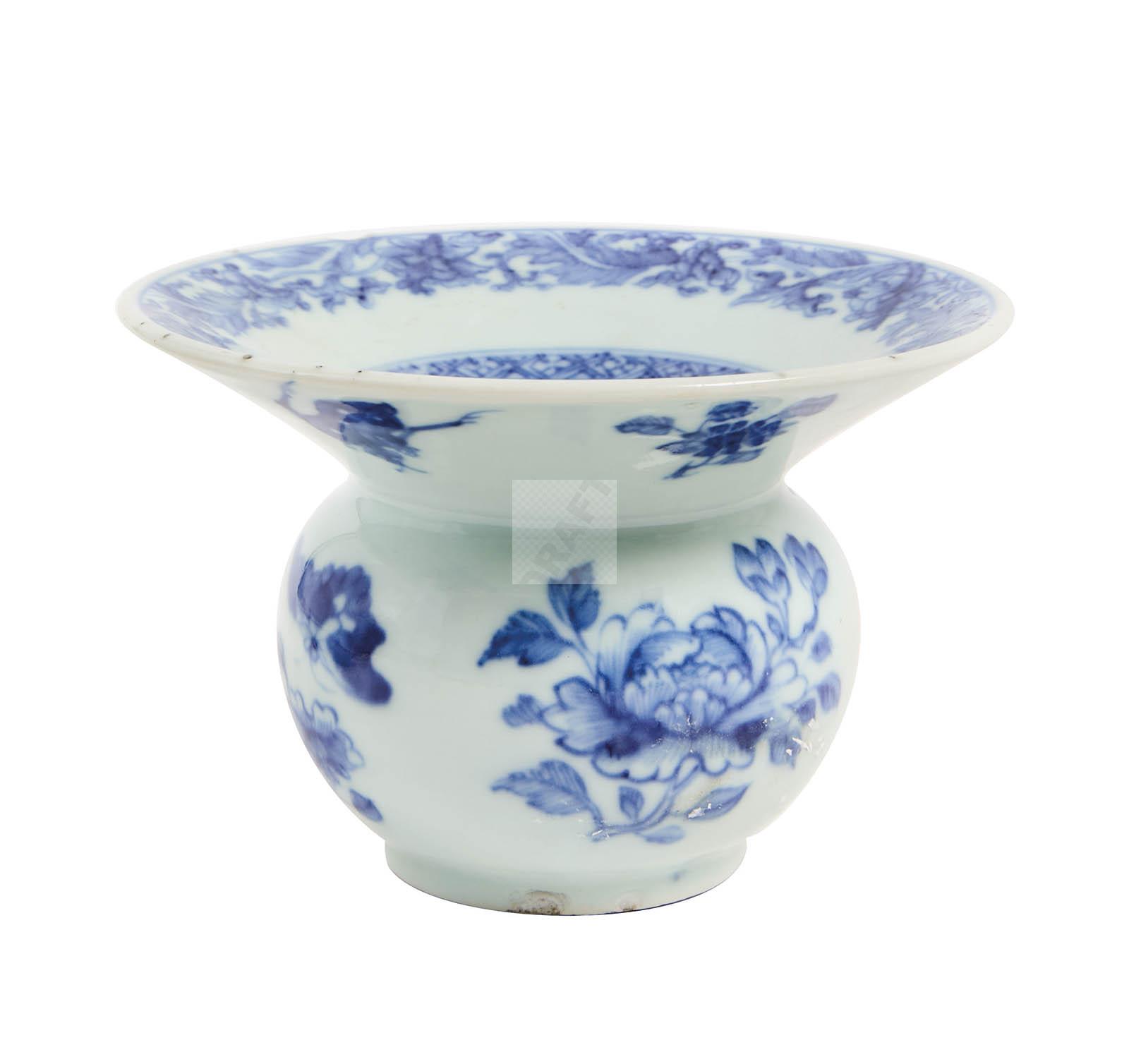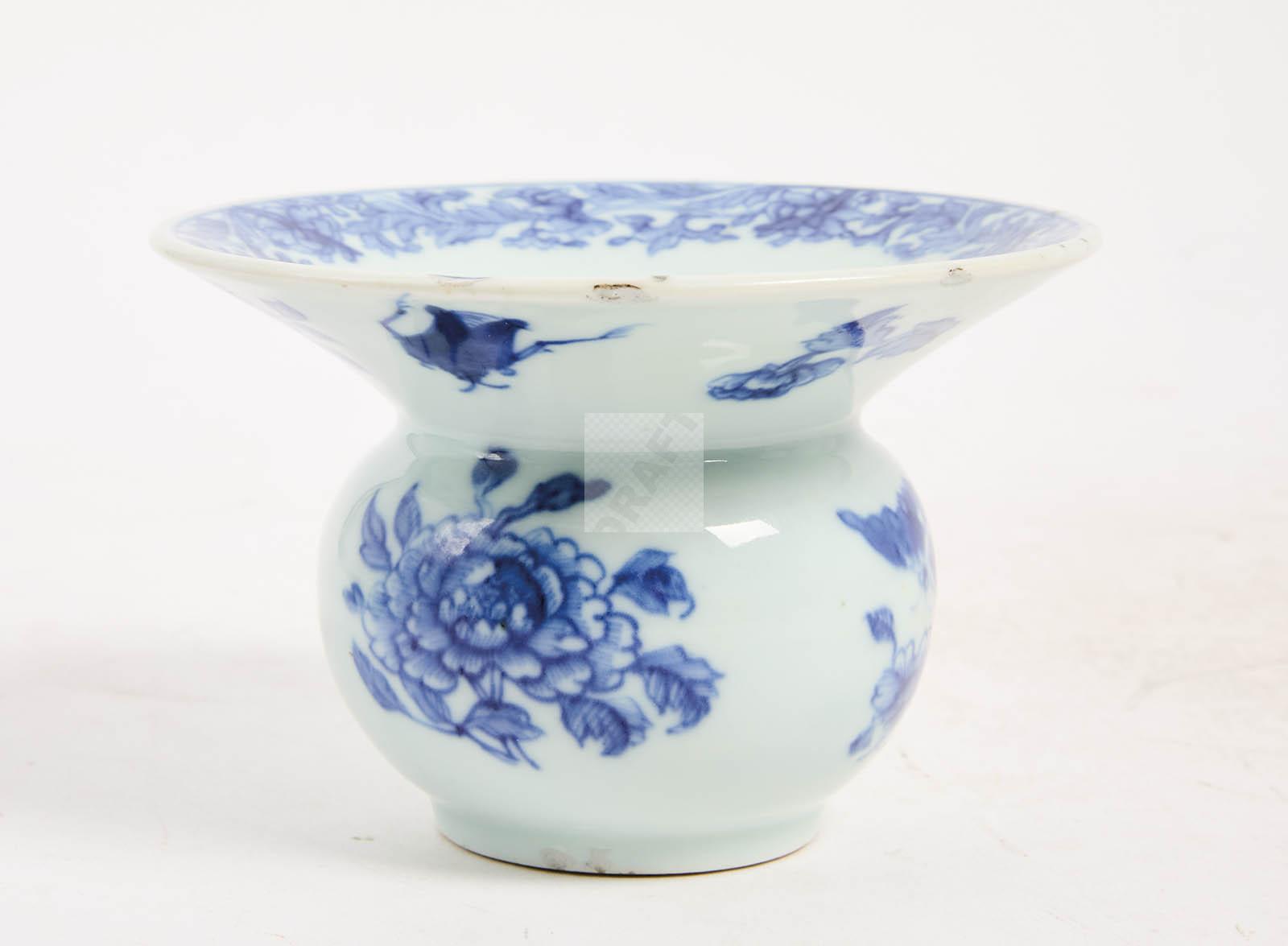 Lot n°110 - 110 Chine : Crachoir en porcelaine camaïeu bleu à décor d'insectes