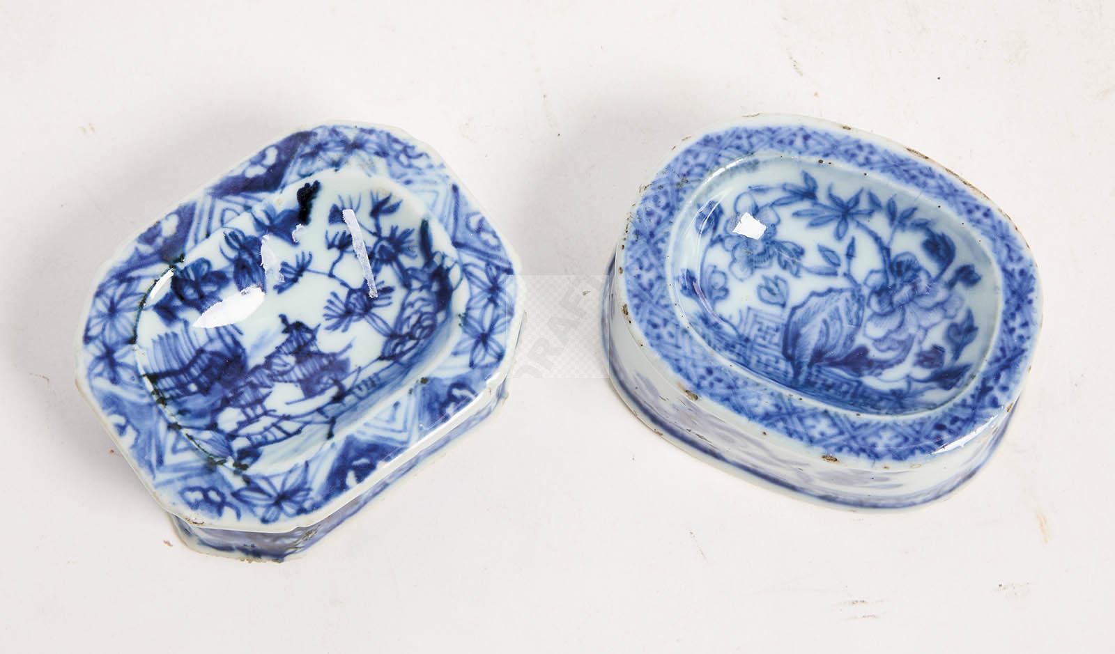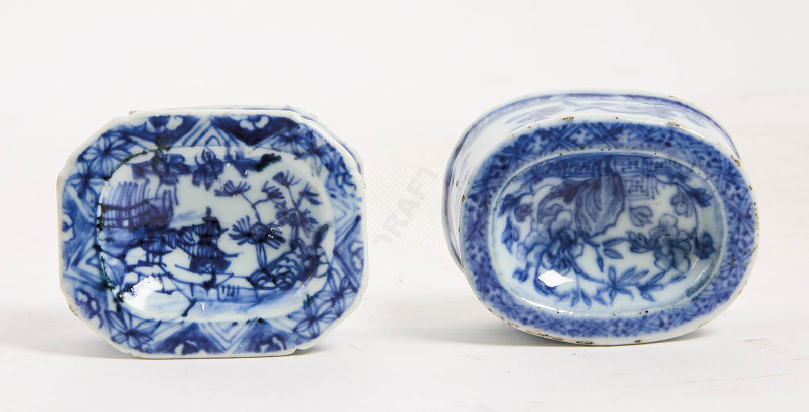 Lot n°113 - 113 Chine: Deux salerons en porcelaine camaïeu bleu à décors végétaux
