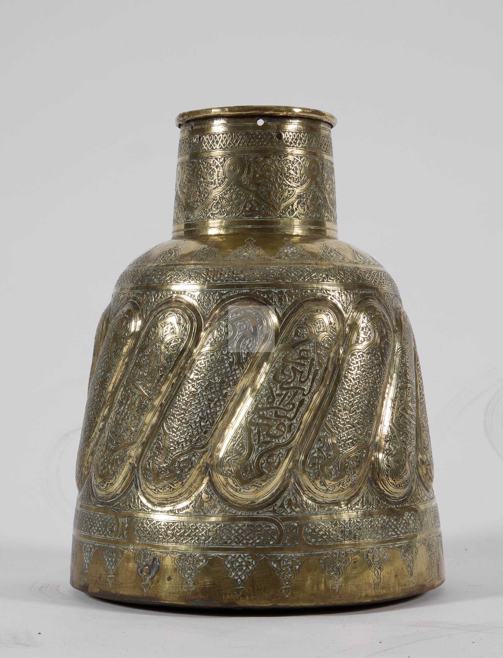 Lot n°129 - 129 Porte-flambeau en laiton gravé.