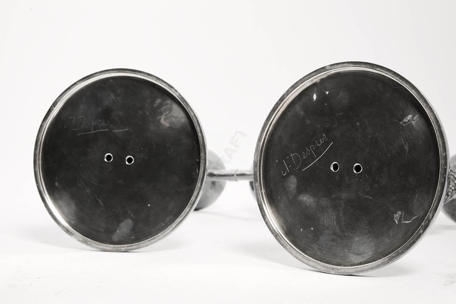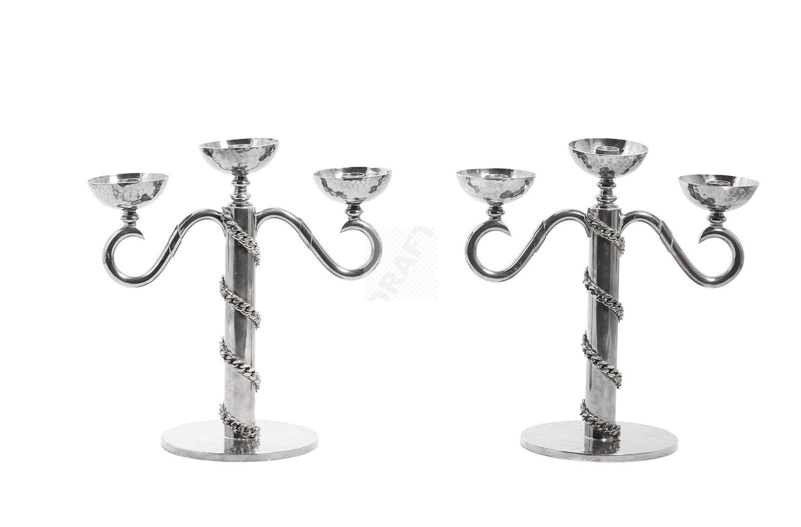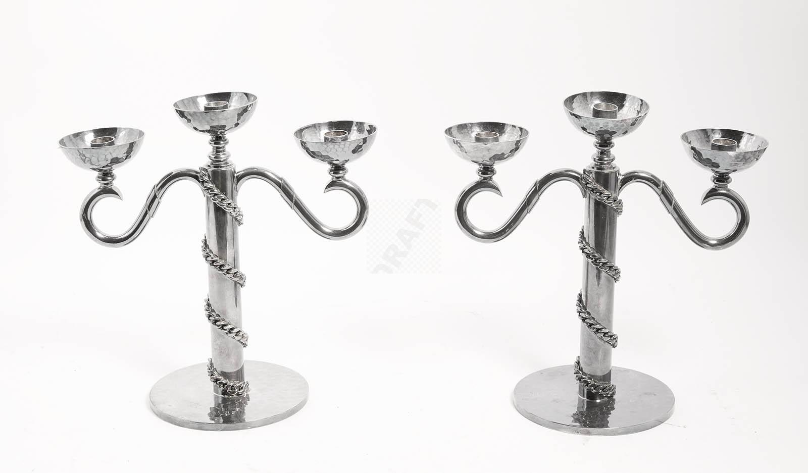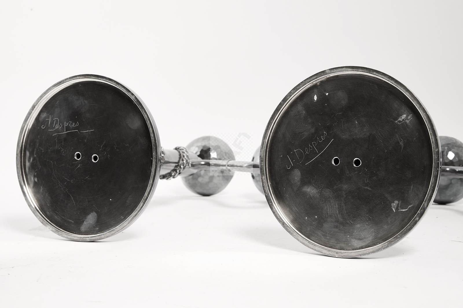 Lot n°142 - 142 Jean DESPRES (1889-1980) Paire de candélabres à trois bras de