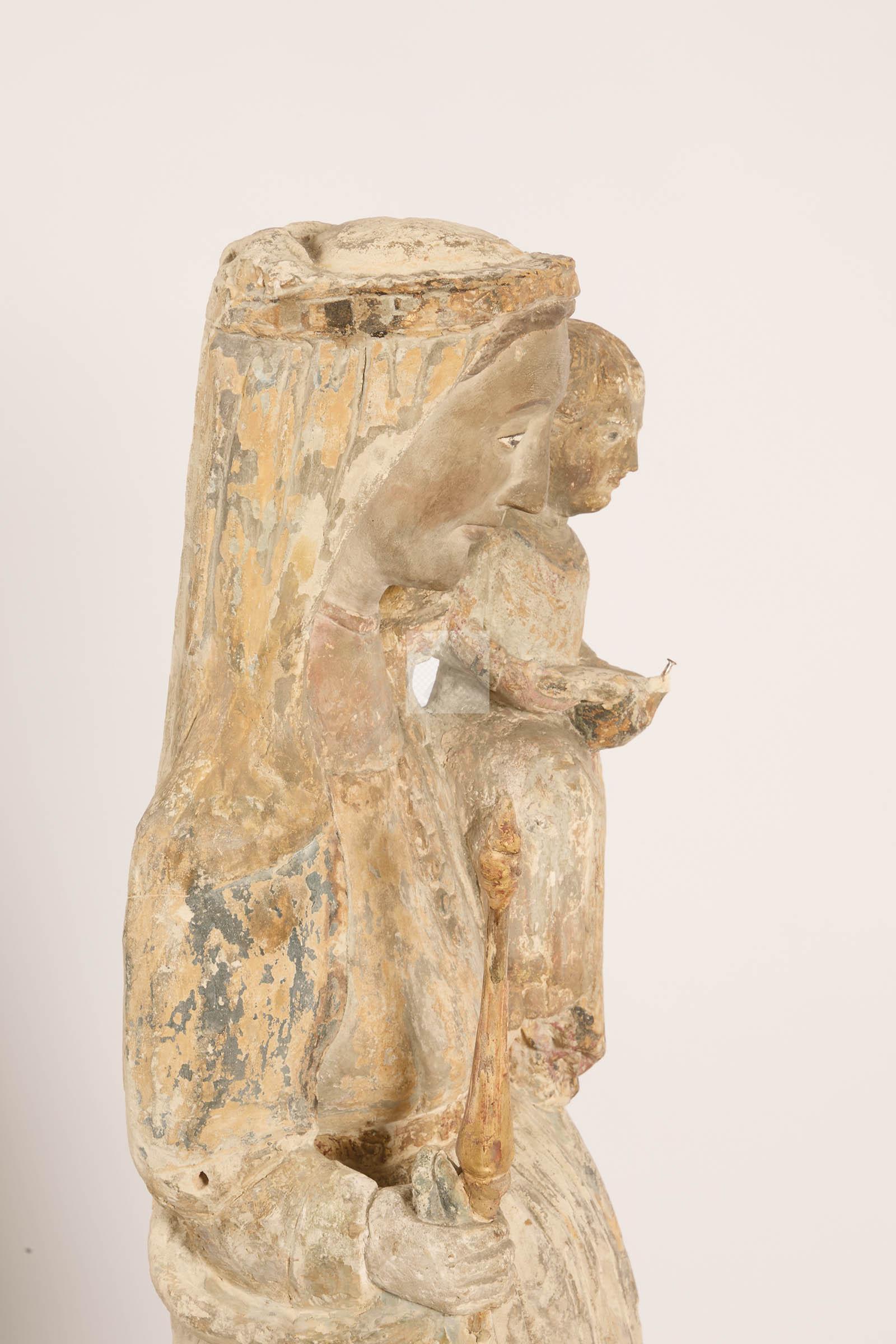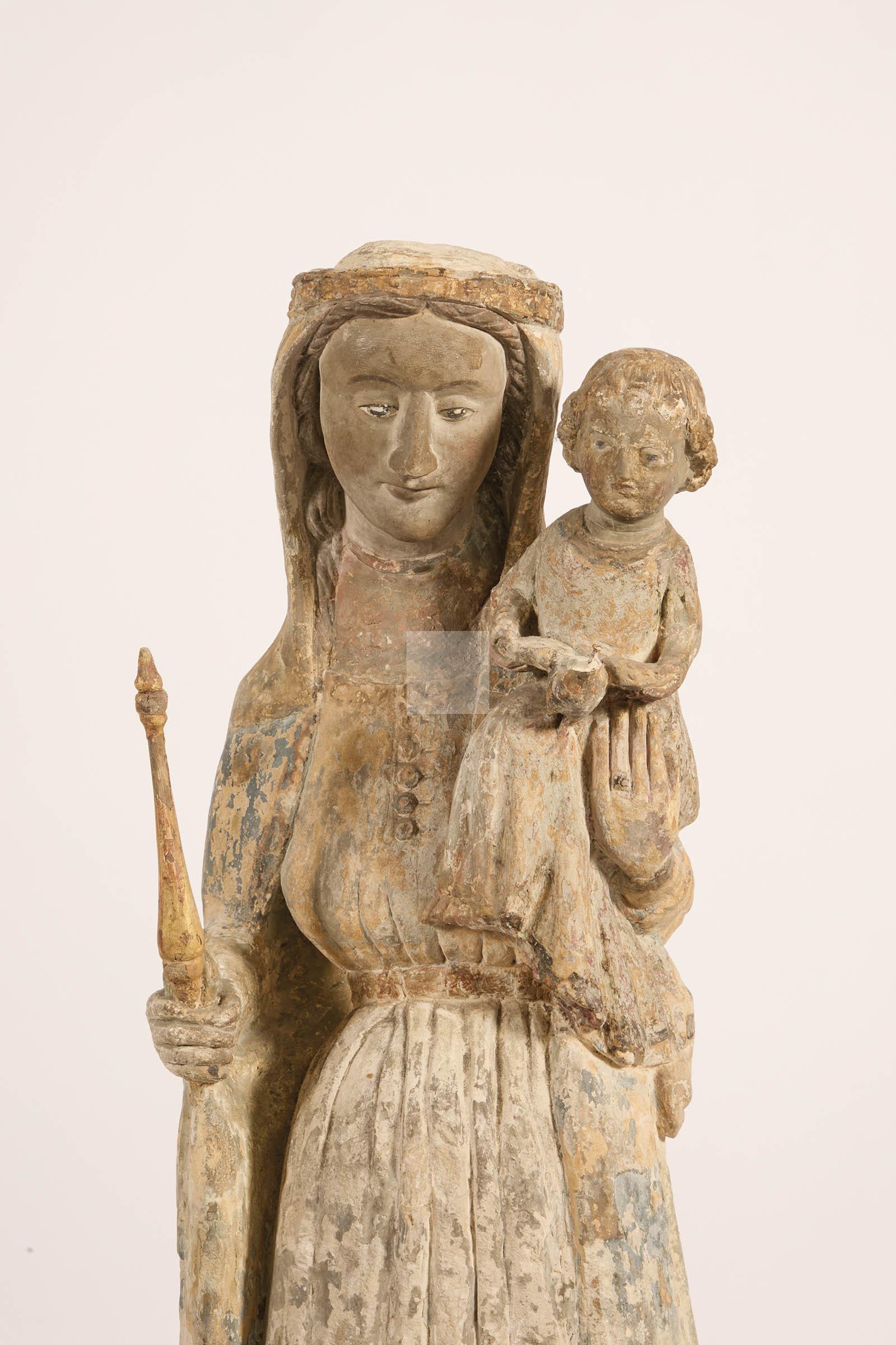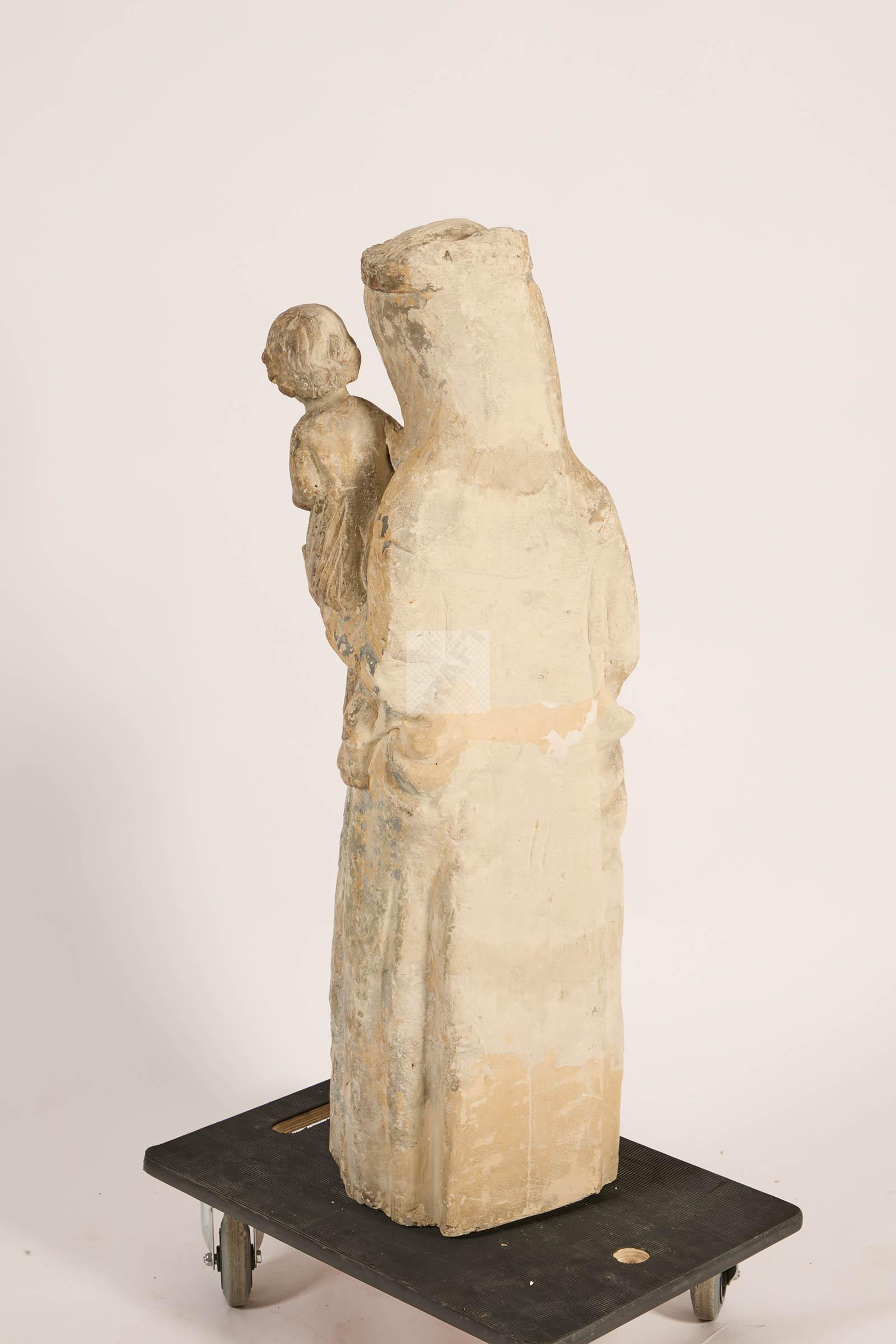 Lot n°150 - 150 Vierge à l’Enfant en pierre calcaire sculptée avec restes de polychromie. De