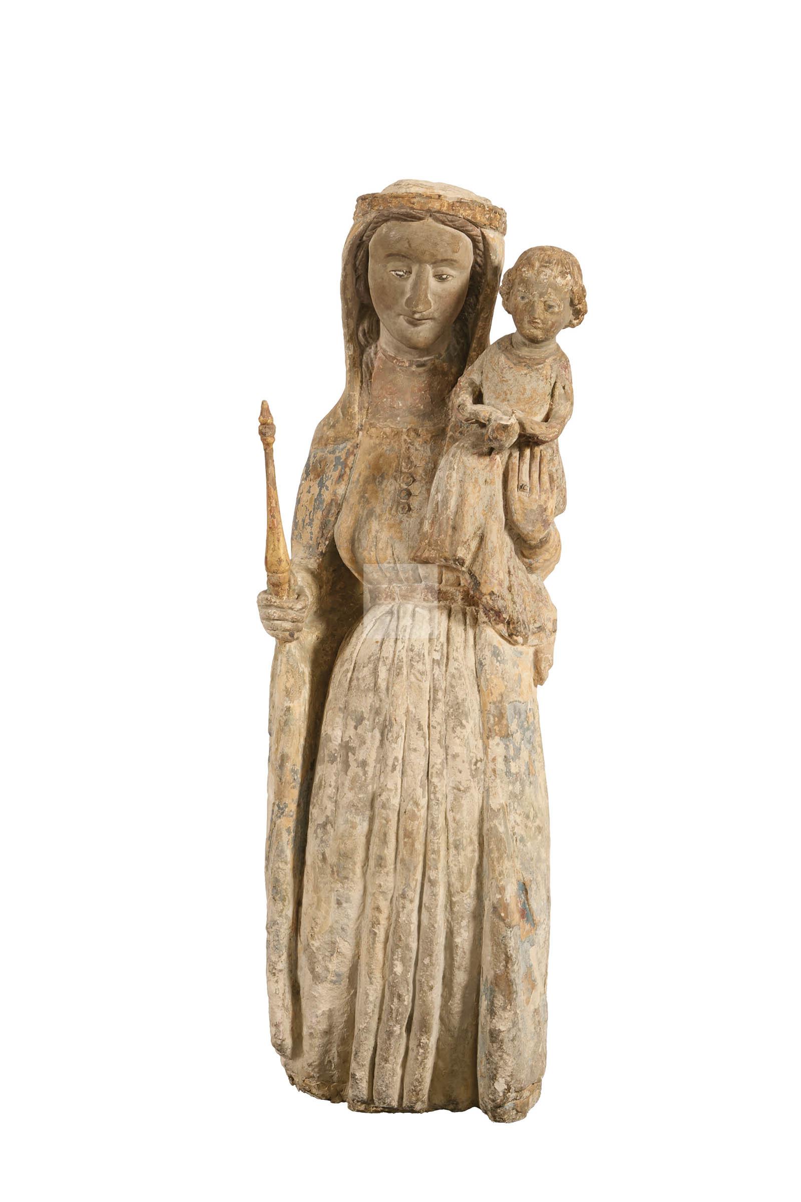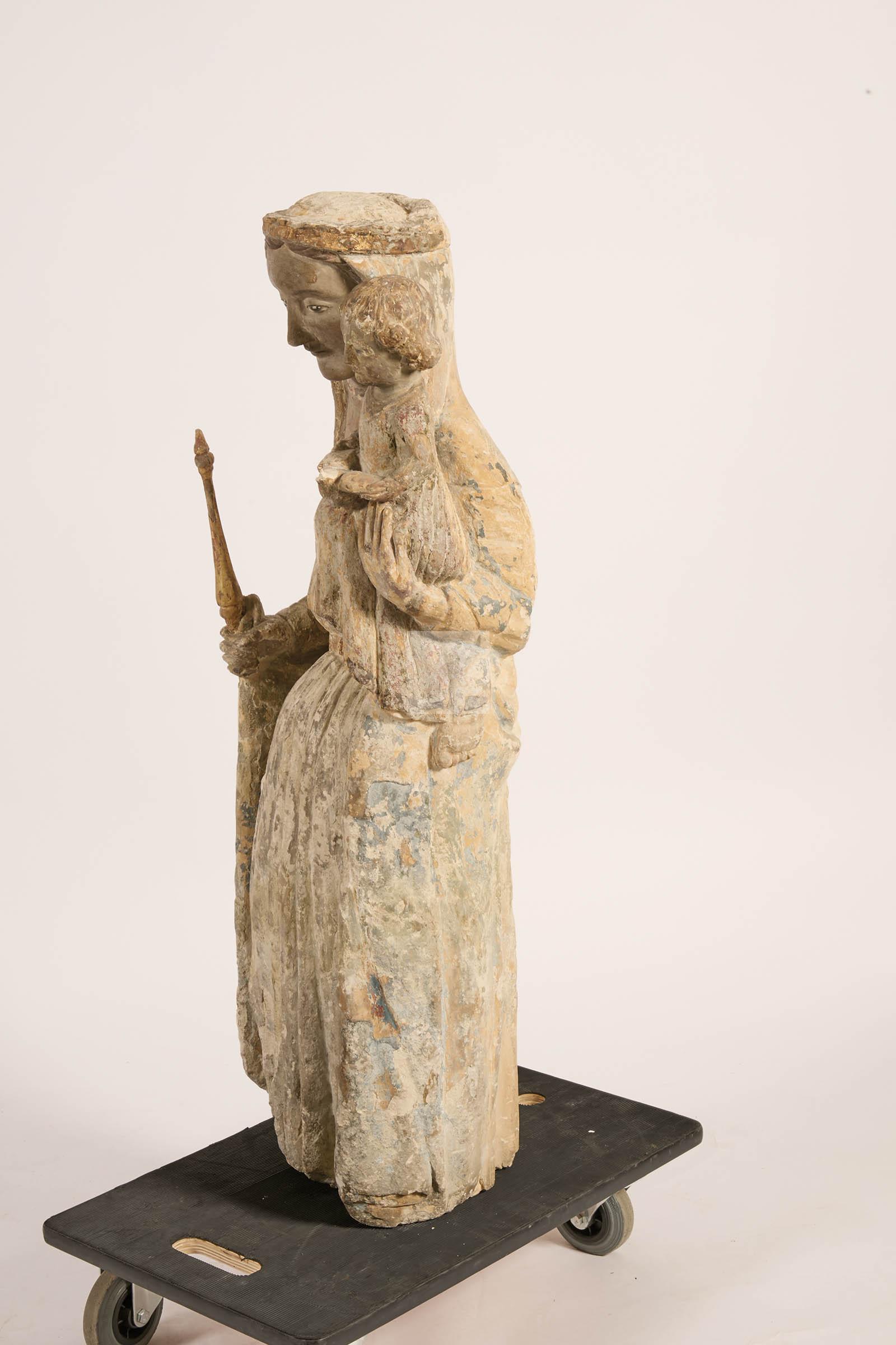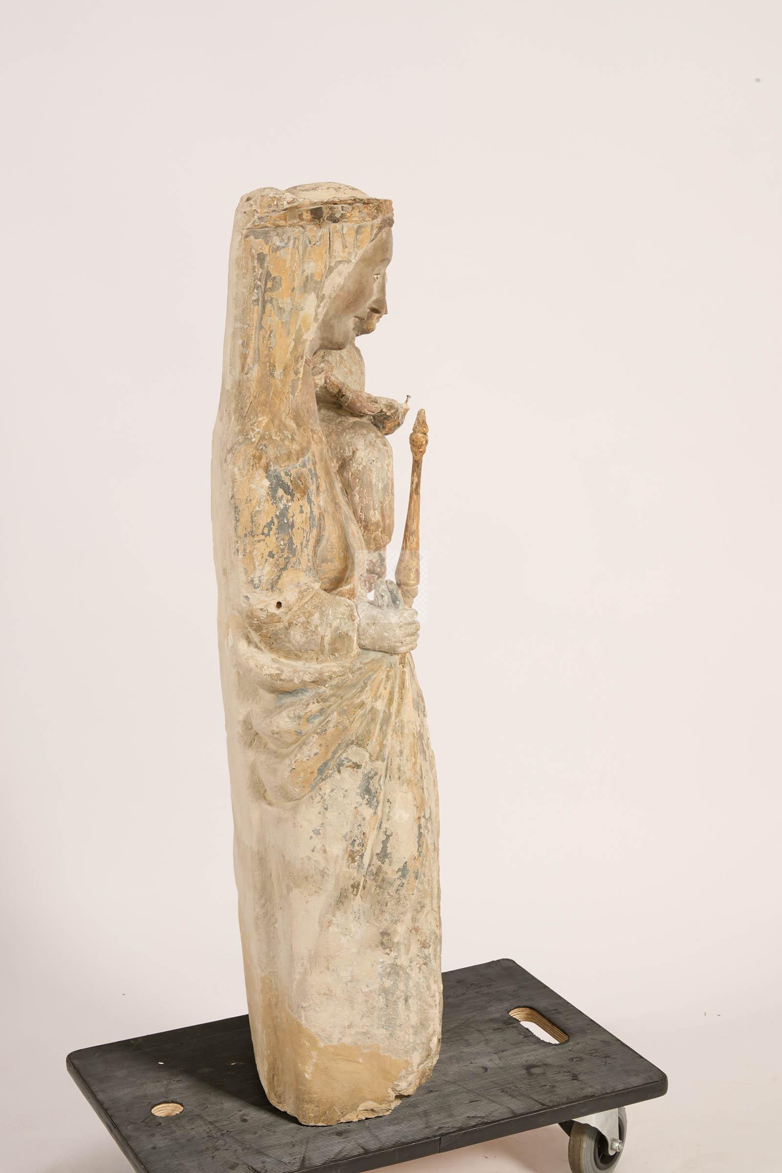 Lot n°150 - 150 Vierge à l’Enfant en pierre calcaire sculptée avec restes de polychromie. De